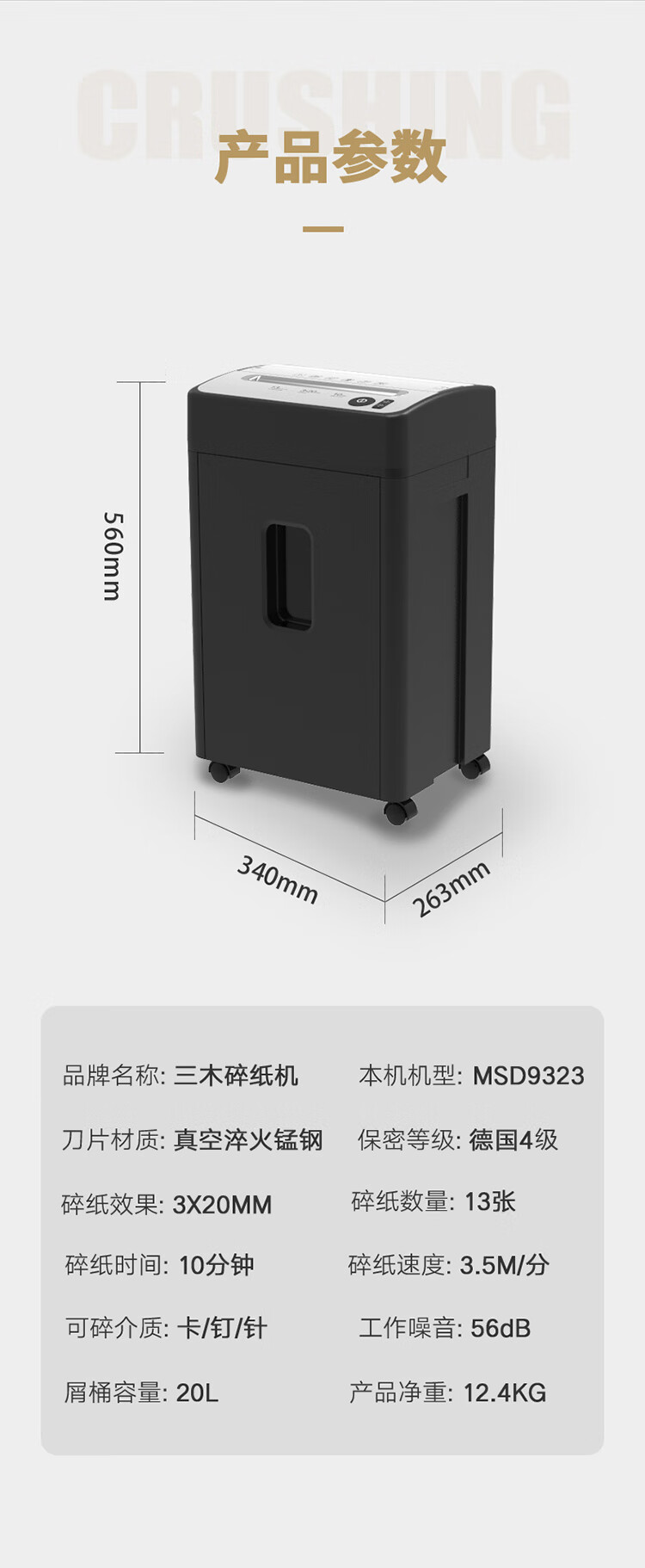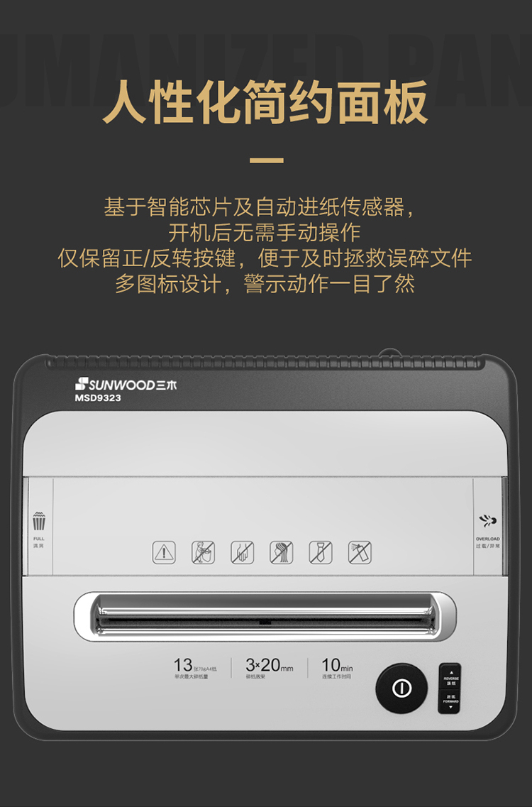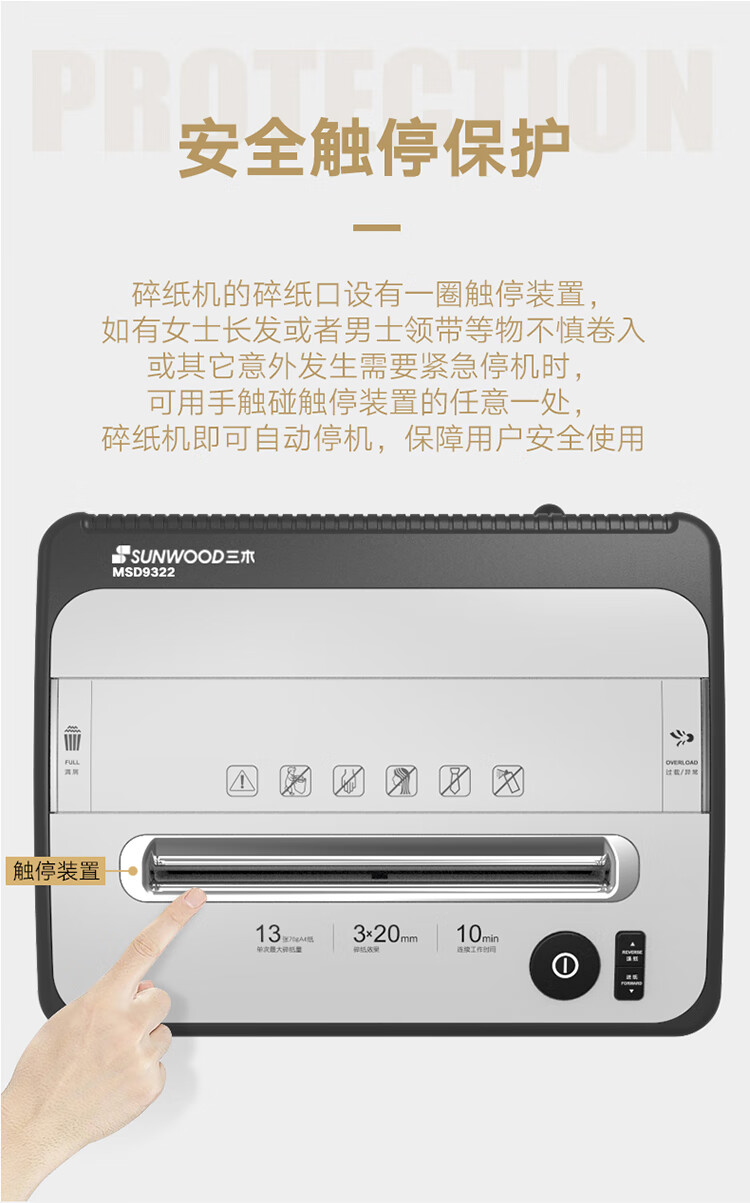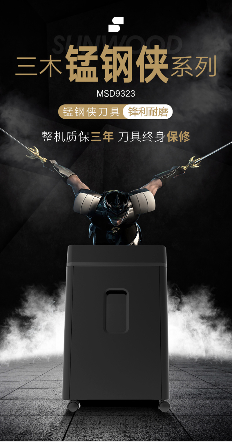 三木(SUNWOOD)锰钢侠系列碎纸机 4级保密(单次13张 持续10分钟 20L 可碎纸,卡,针)MSD9323 厂家直发