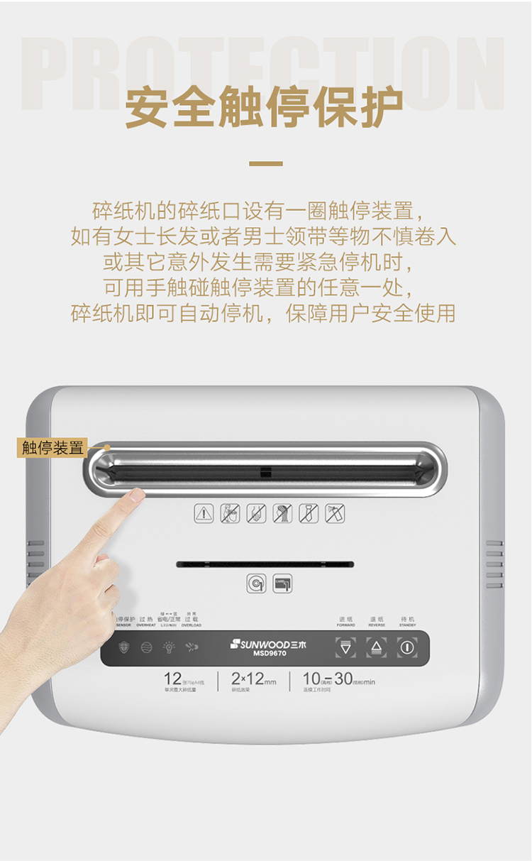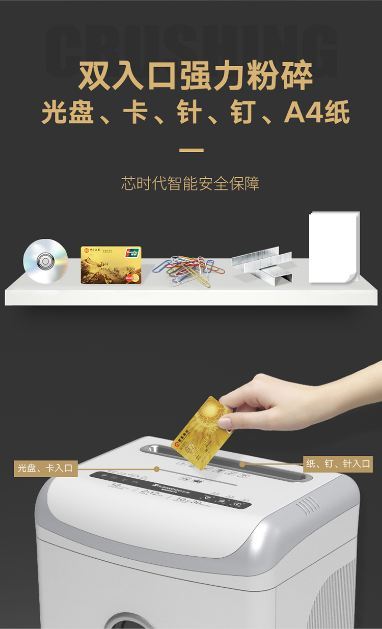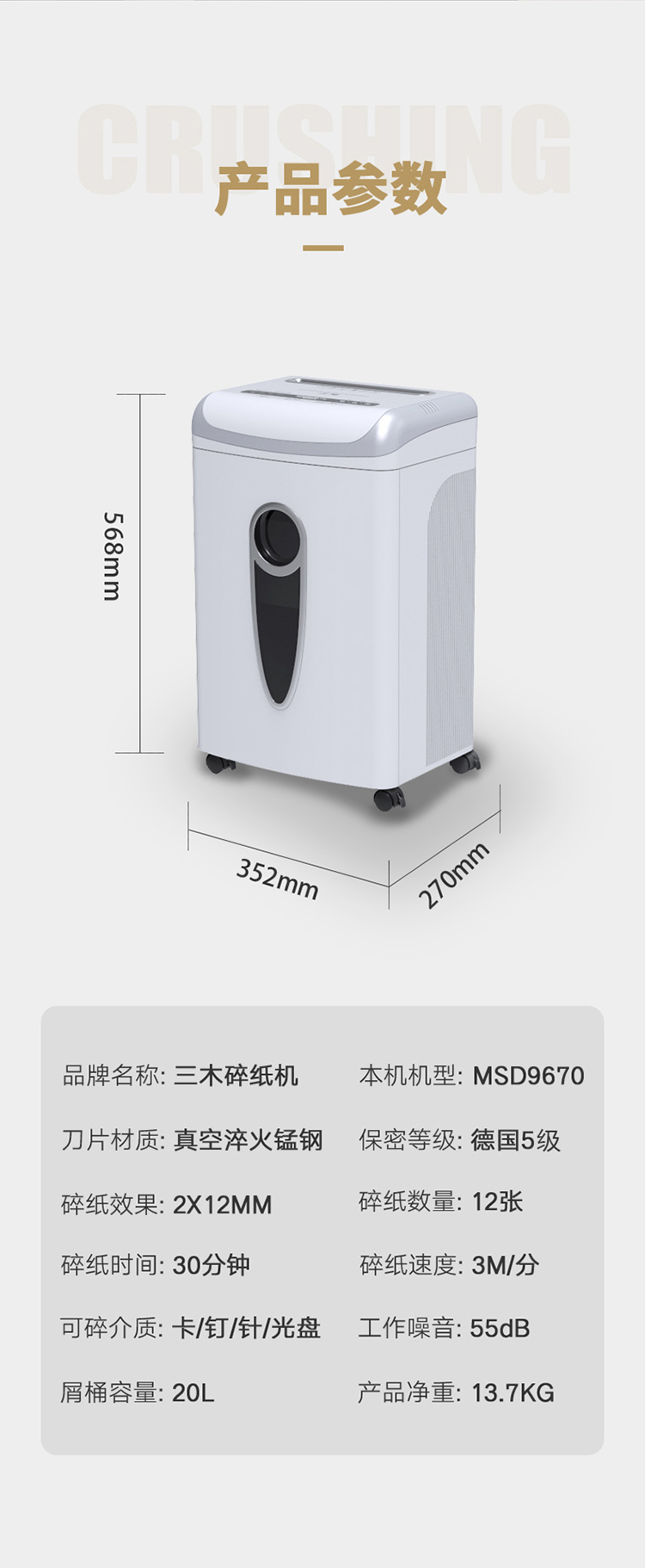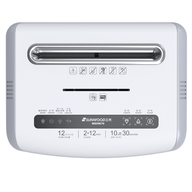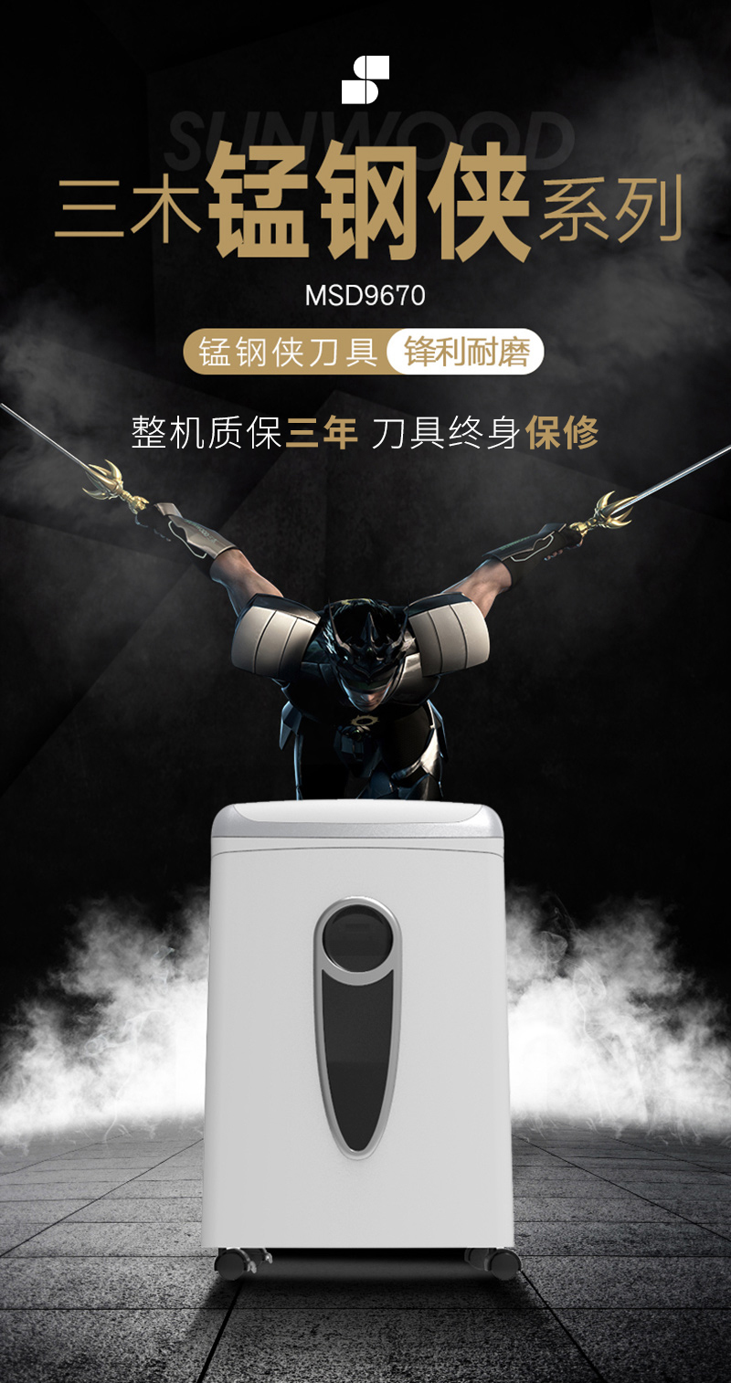三木(SUNWOOD)锰钢侠系列碎纸机 5级保密 双入口(单次12张 30分钟 20L 可碎纸,光盘,卡,针)MSD9670 厂家直发