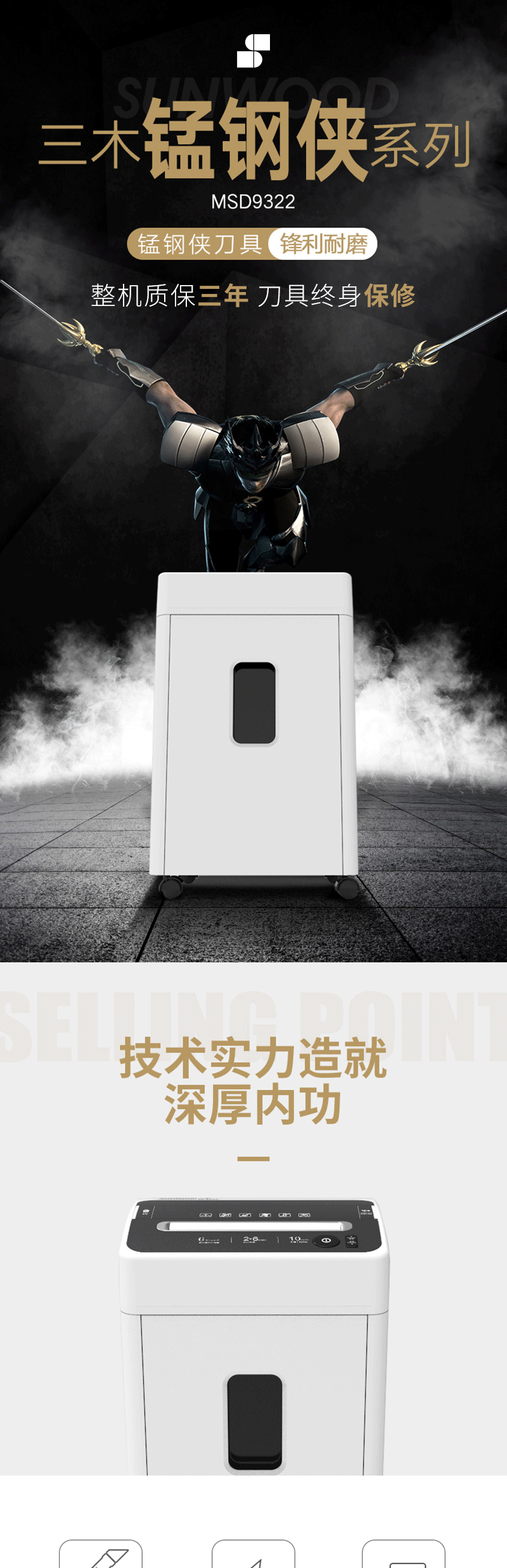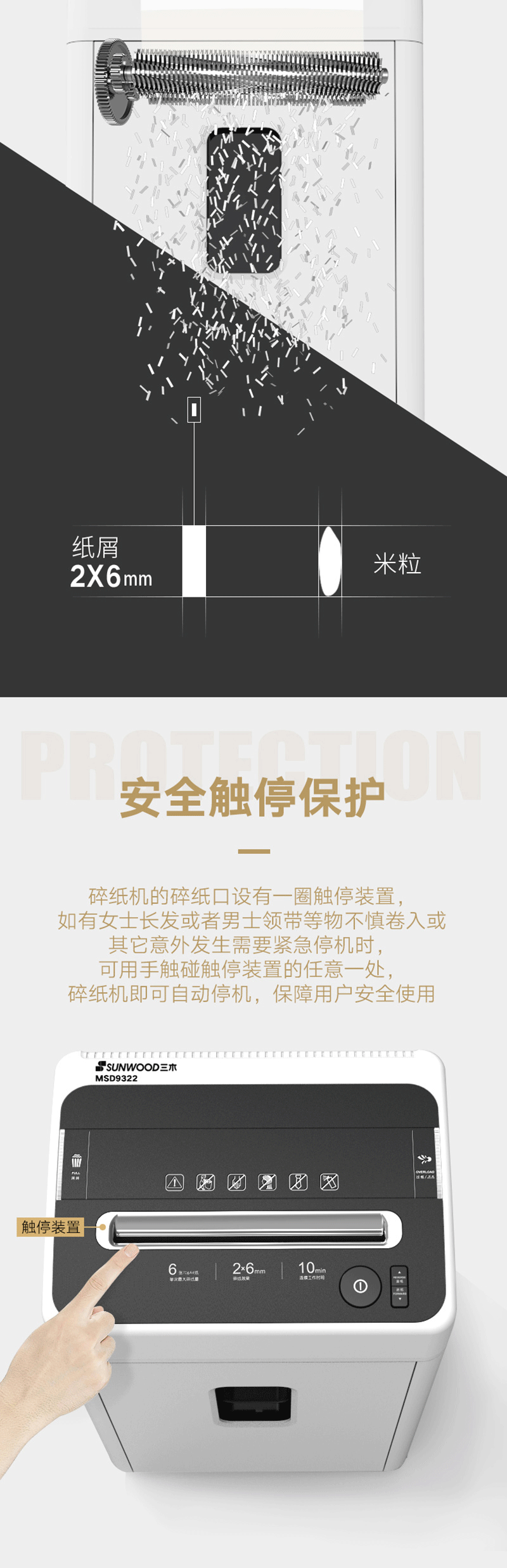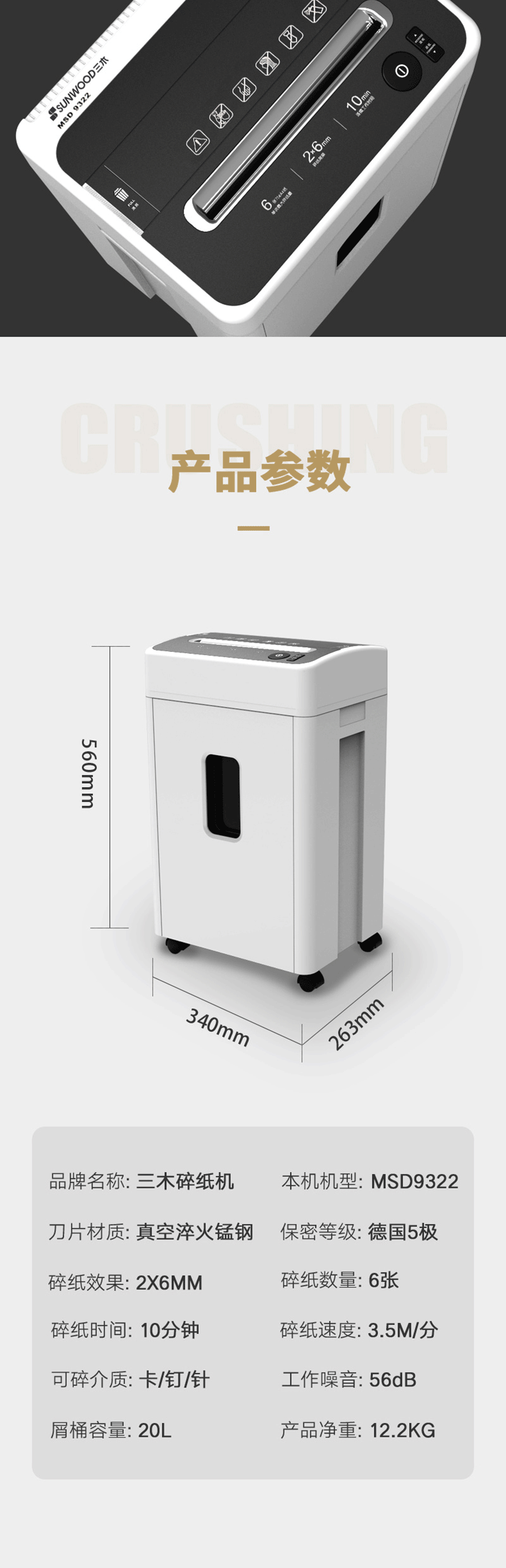 三木(SUNWOOD)锰钢侠系列碎纸机 5级保密(单次6张 持续10分钟 20L 可碎纸,卡,针)MSD9322 厂家直发