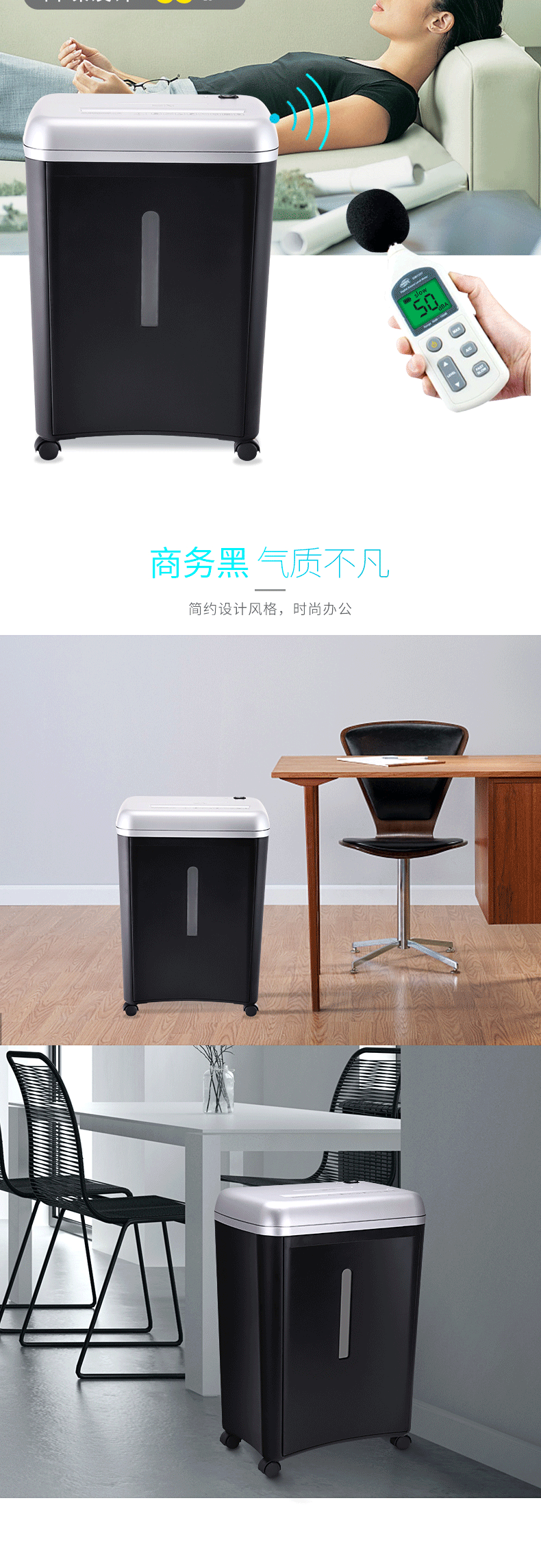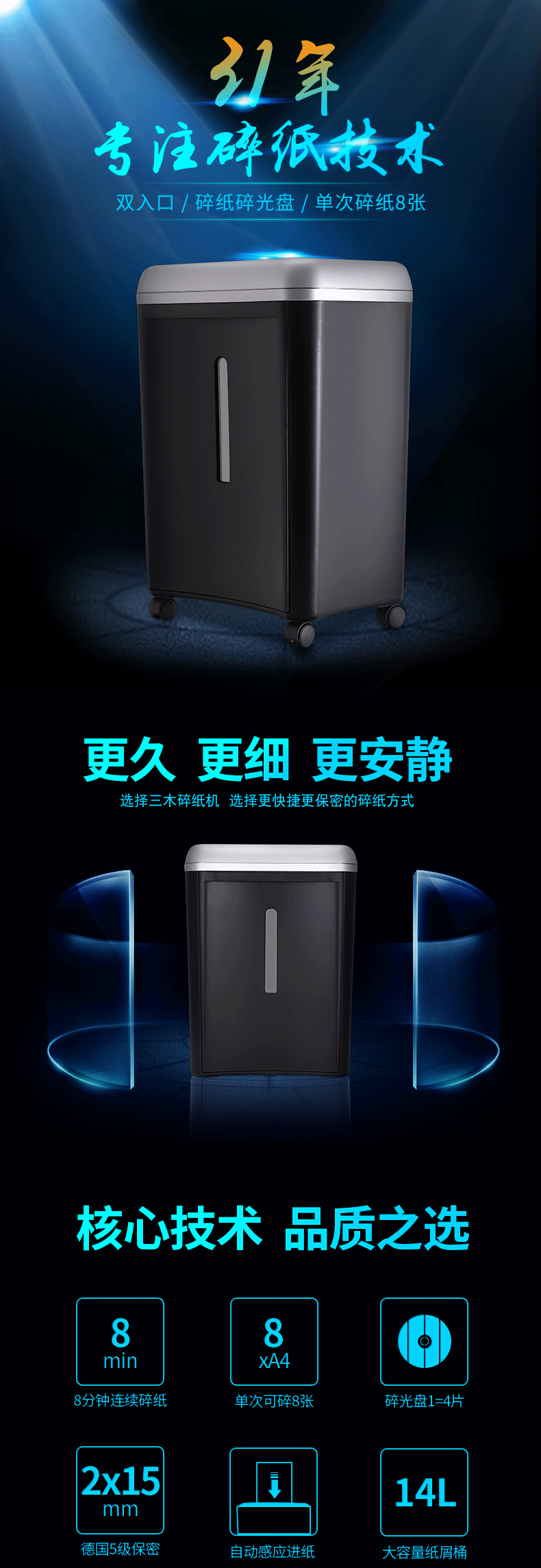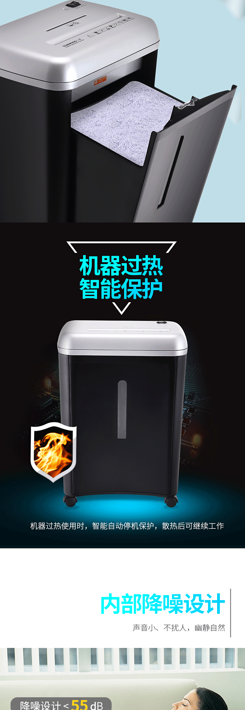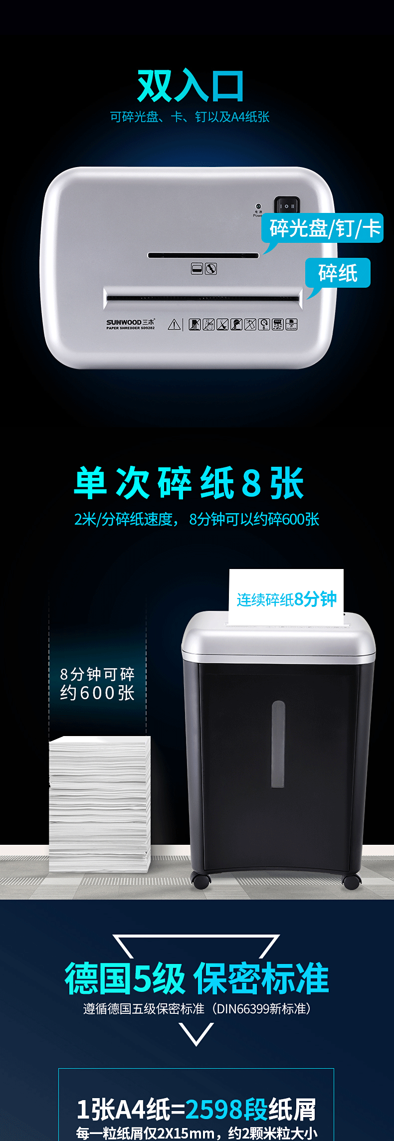 三木(SUNWOOD)5级保密办公家用碎纸机 (单次8张 持续8分钟 14L 可碎纸,光盘,卡,订书针) SD9282