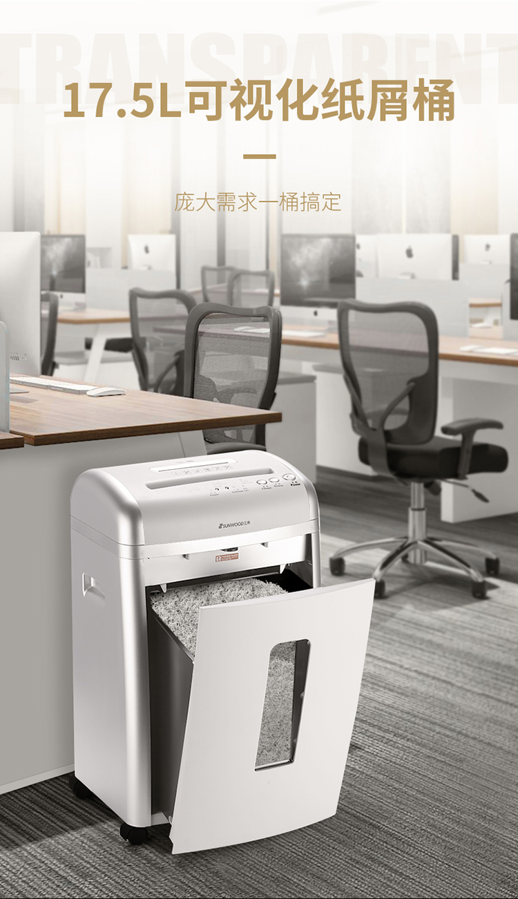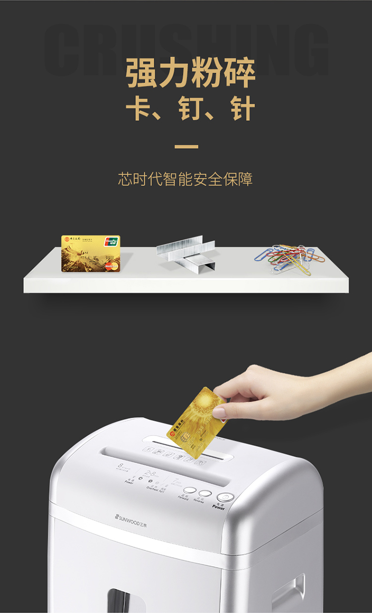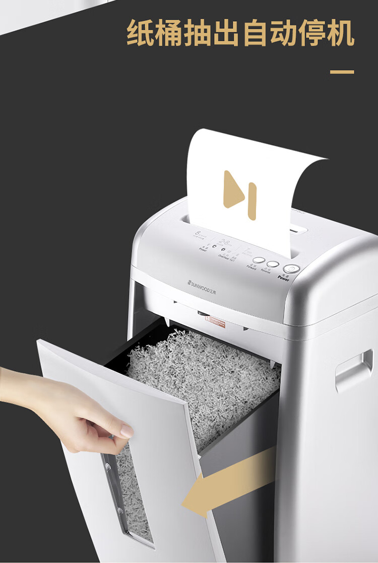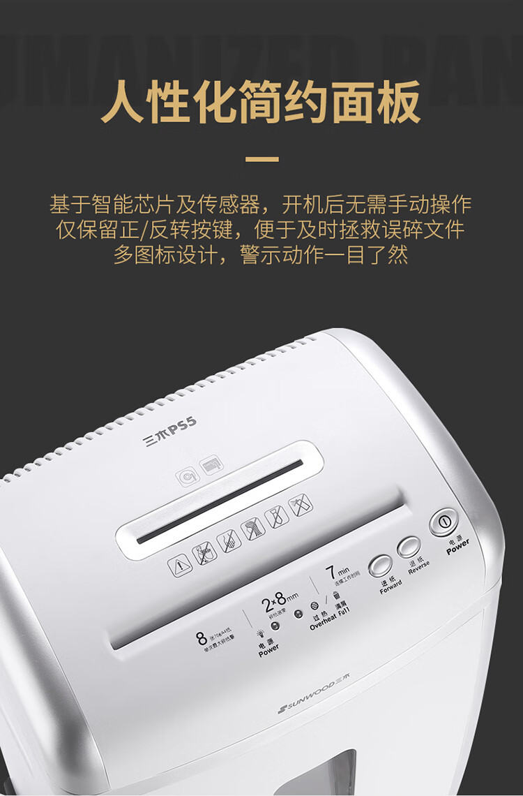 三木(SUNWOOD)效率王系列碎纸机 5级保密 双入口(单次8张 持续7分钟 17.5L 可碎卡,光盘,纸,针)PS5 厂家直发