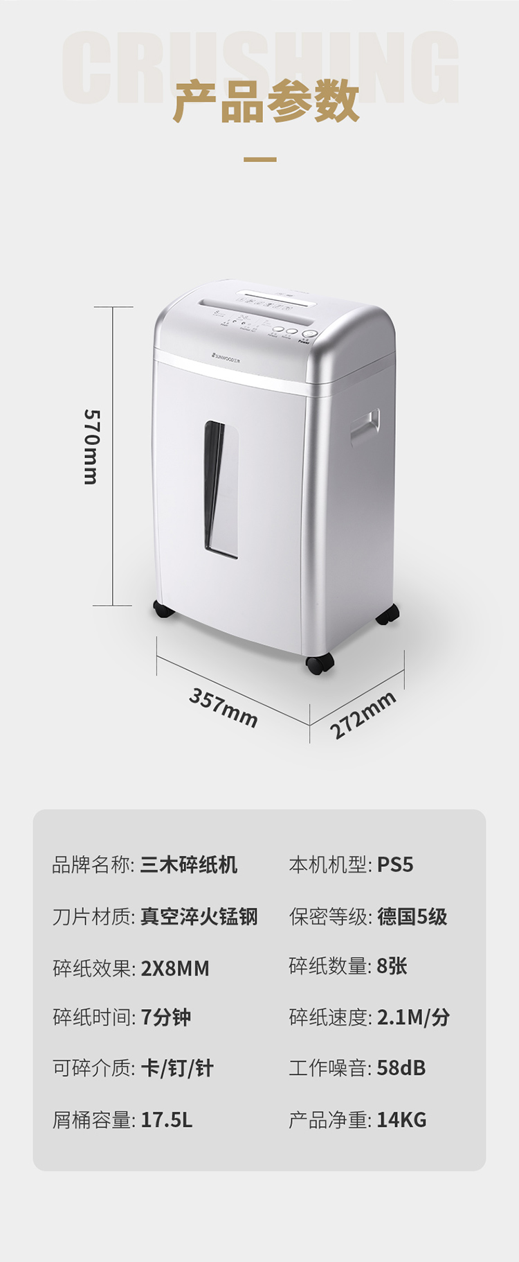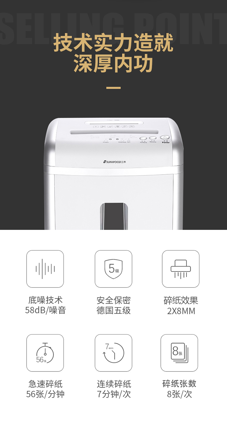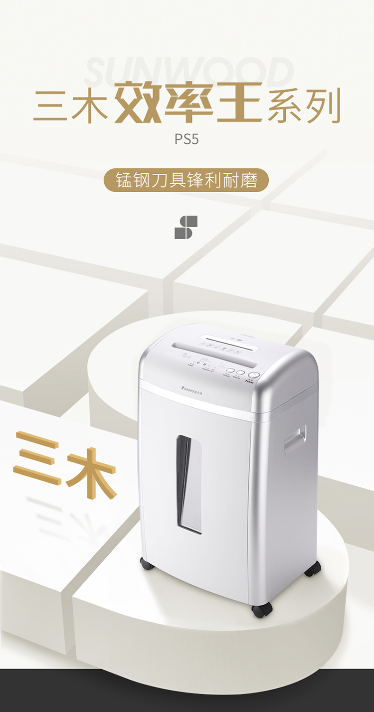 三木(SUNWOOD)效率王系列碎纸机 5级保密 双入口(单次8张 持续7分钟 17.5L 可碎卡,光盘,纸,针)PS5 厂家直发