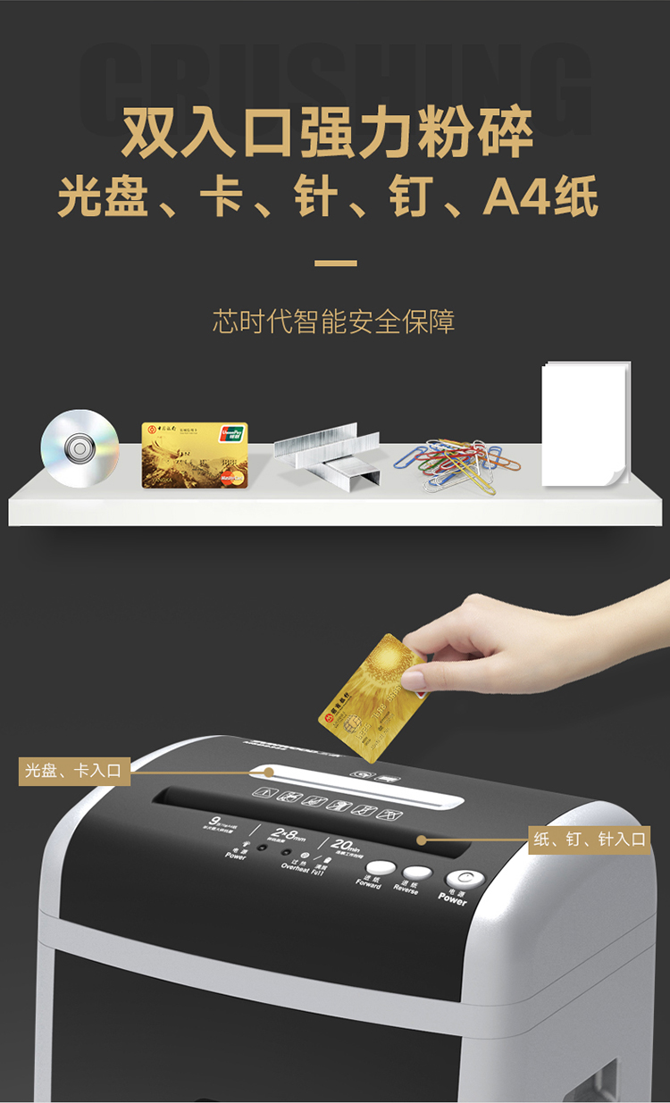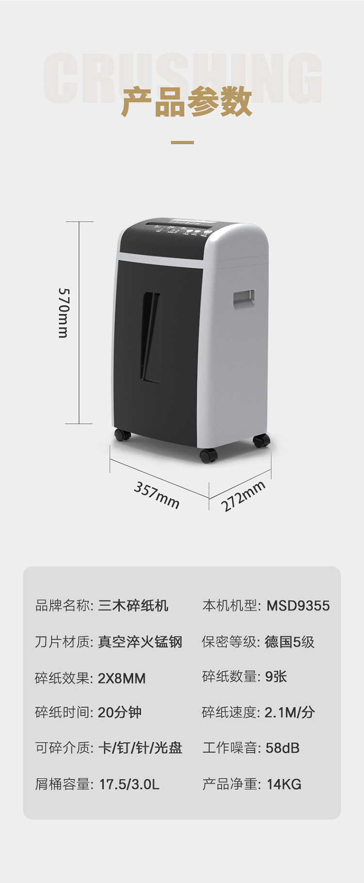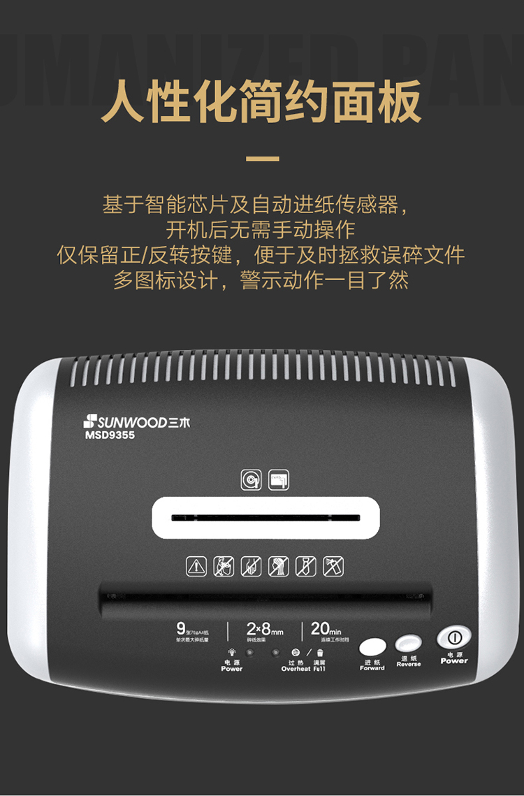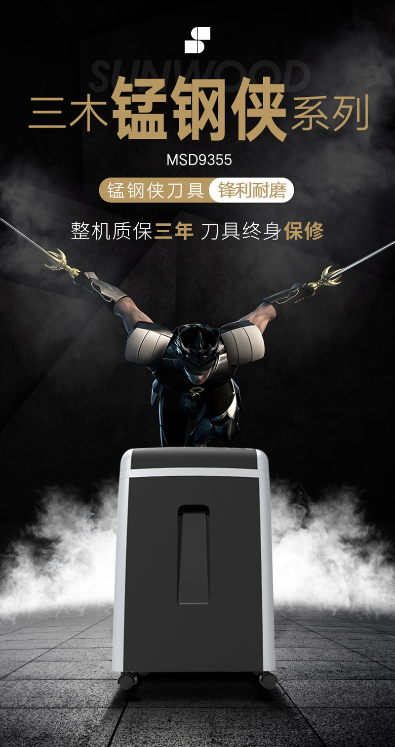 三木(SUNWOOD)锰钢侠系列碎纸机 5级保密 双入口(单次9张 20分钟 17.5L 可碎纸,光盘,卡,针)MSD9355 厂家直发