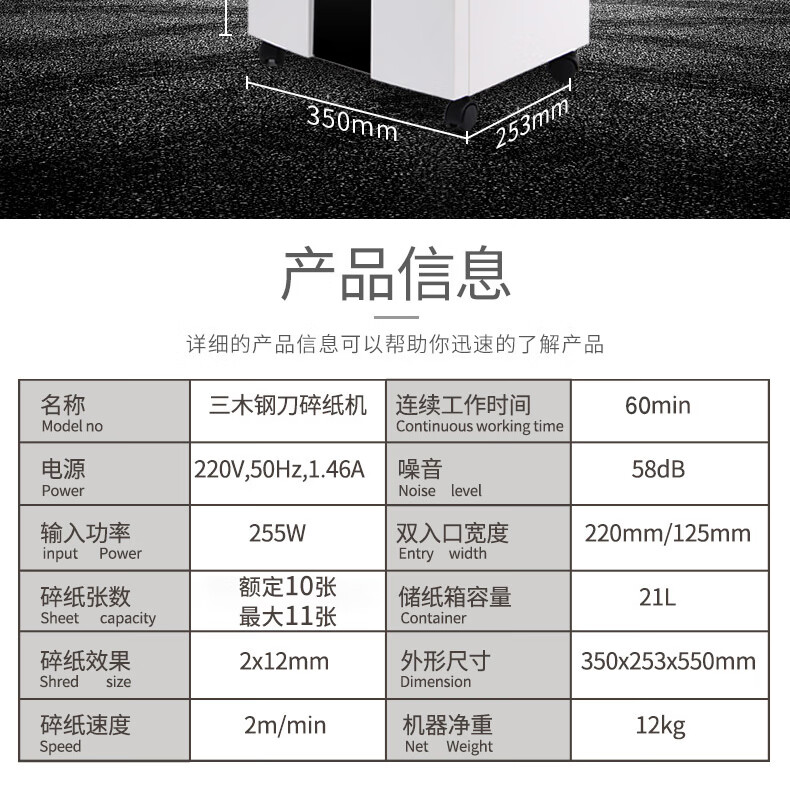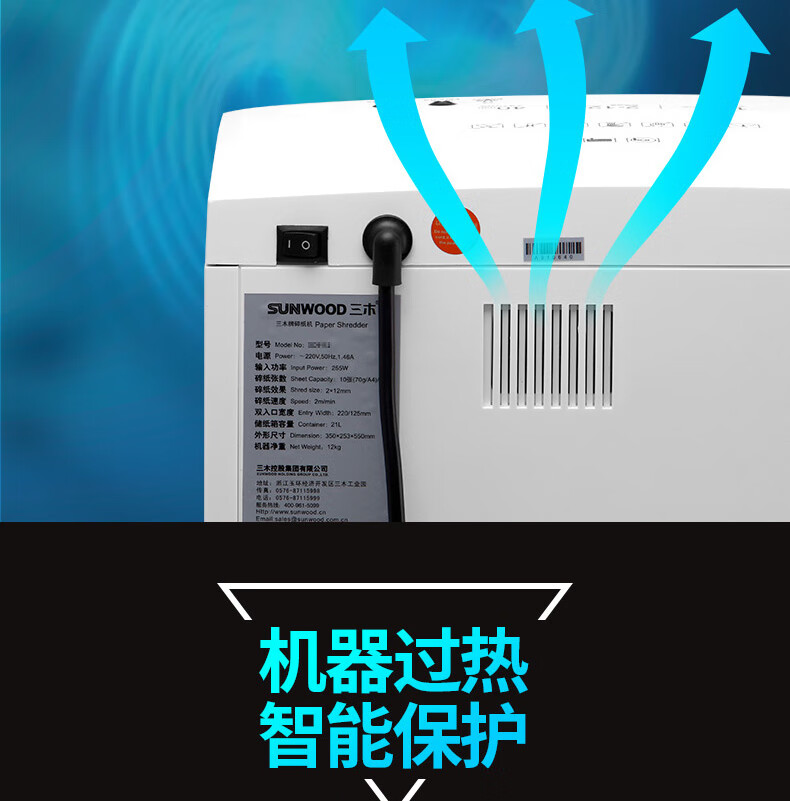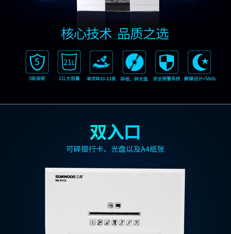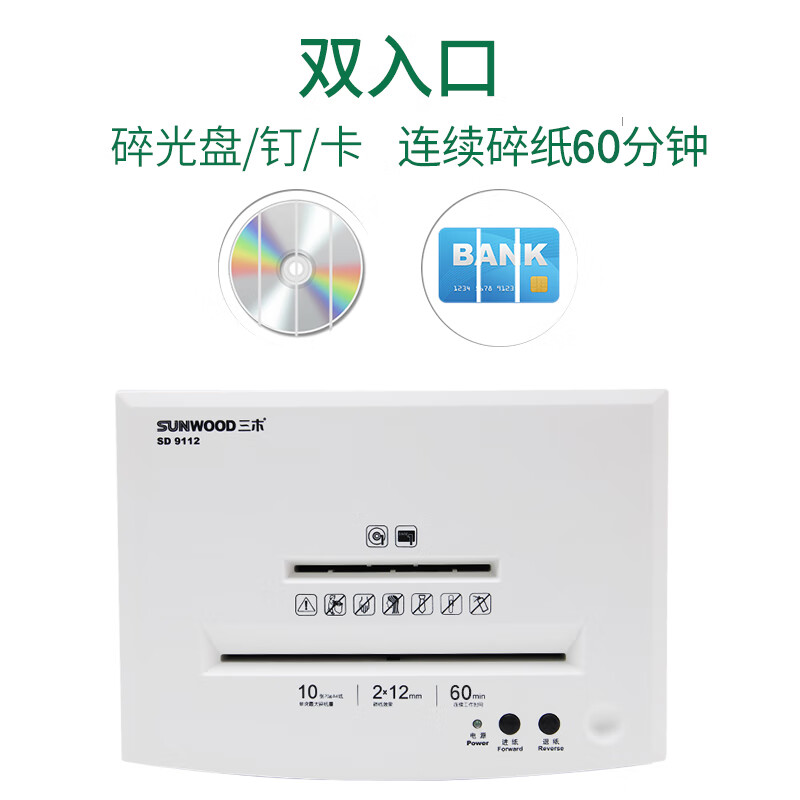 三木(SUNWOOD)5级保密办公碎纸机(单次10张 持续60分钟 21L 可碎纸,光盘,卡,针) SD9112 厂家直发