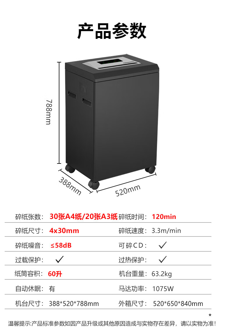 震旦AURORA 4级保密办公商用碎纸机A3/A4入纸口(单次30张 持续120分钟 60L 可碎卡、光盘) AS3060CD