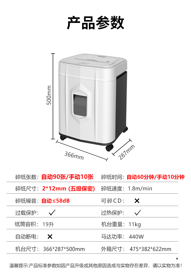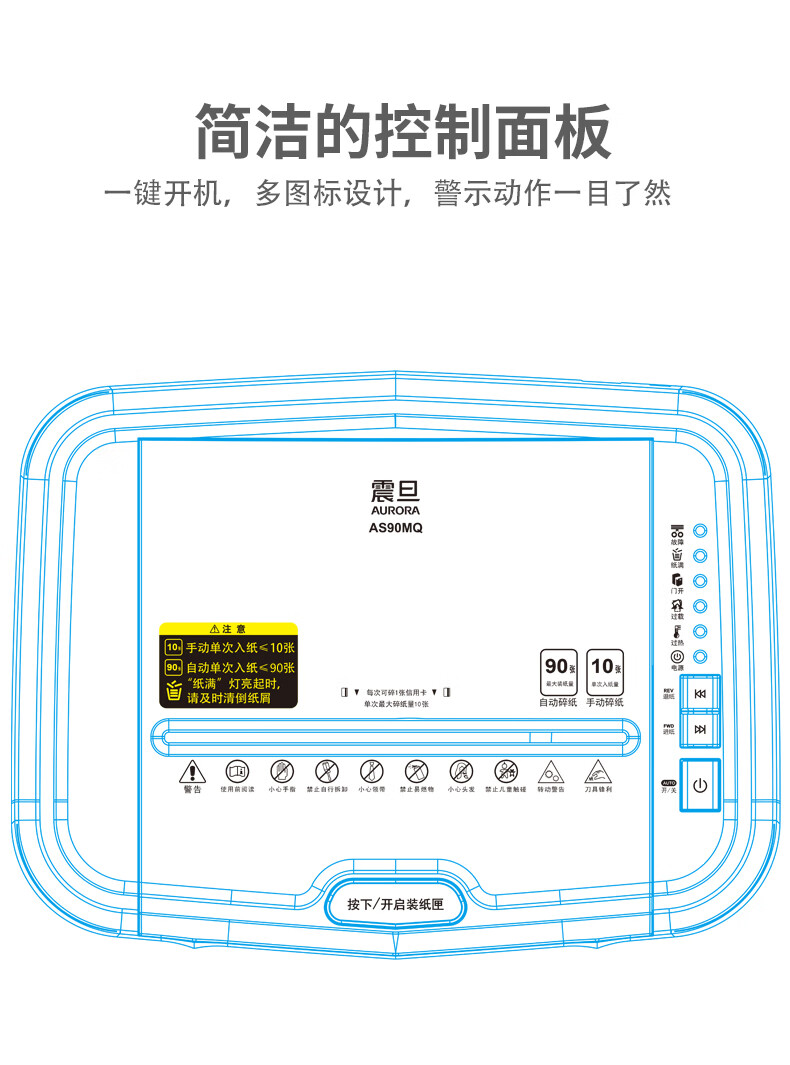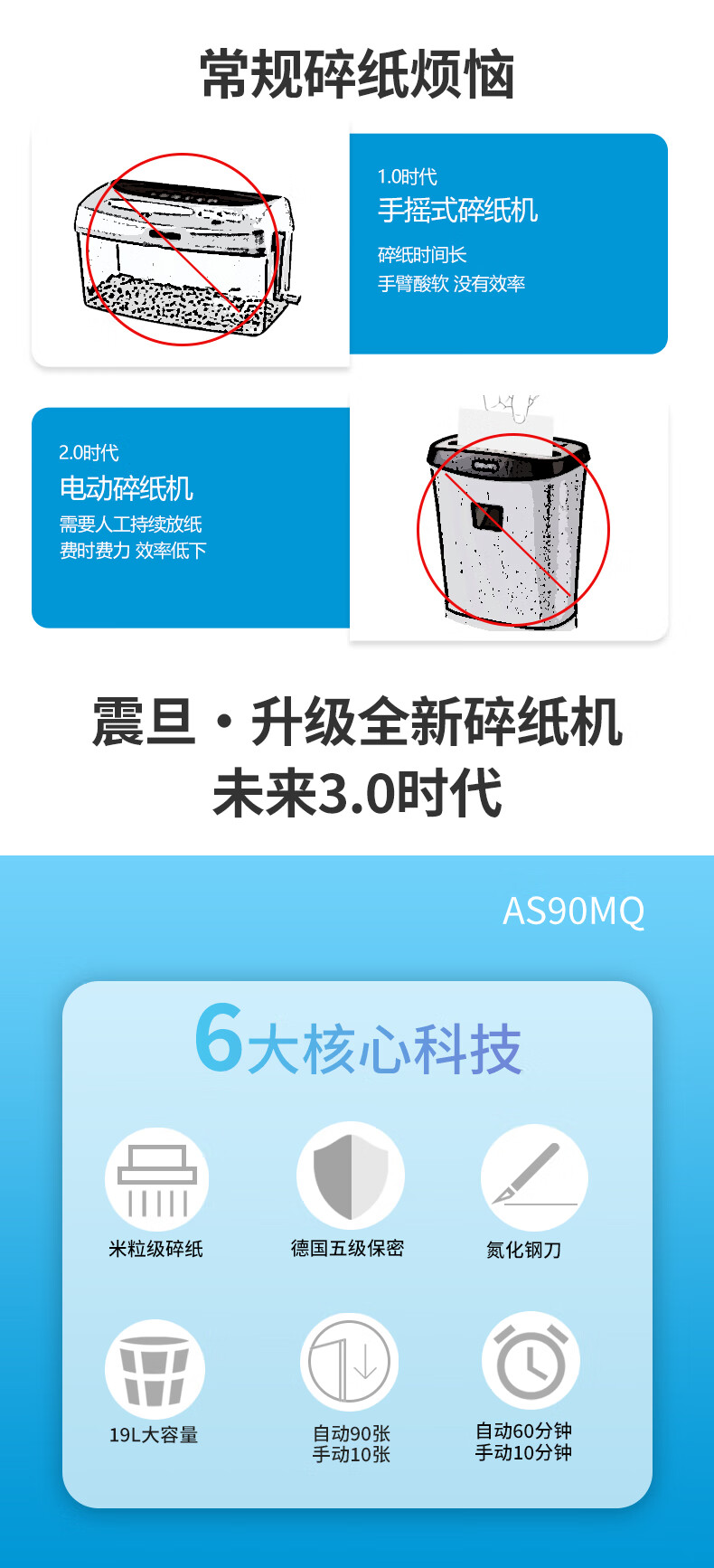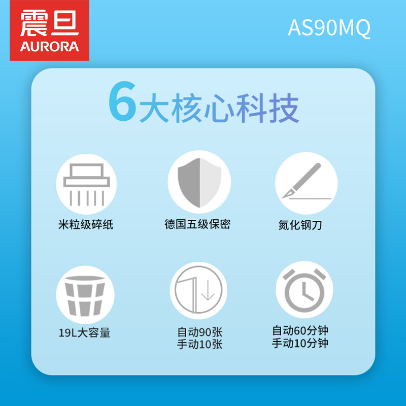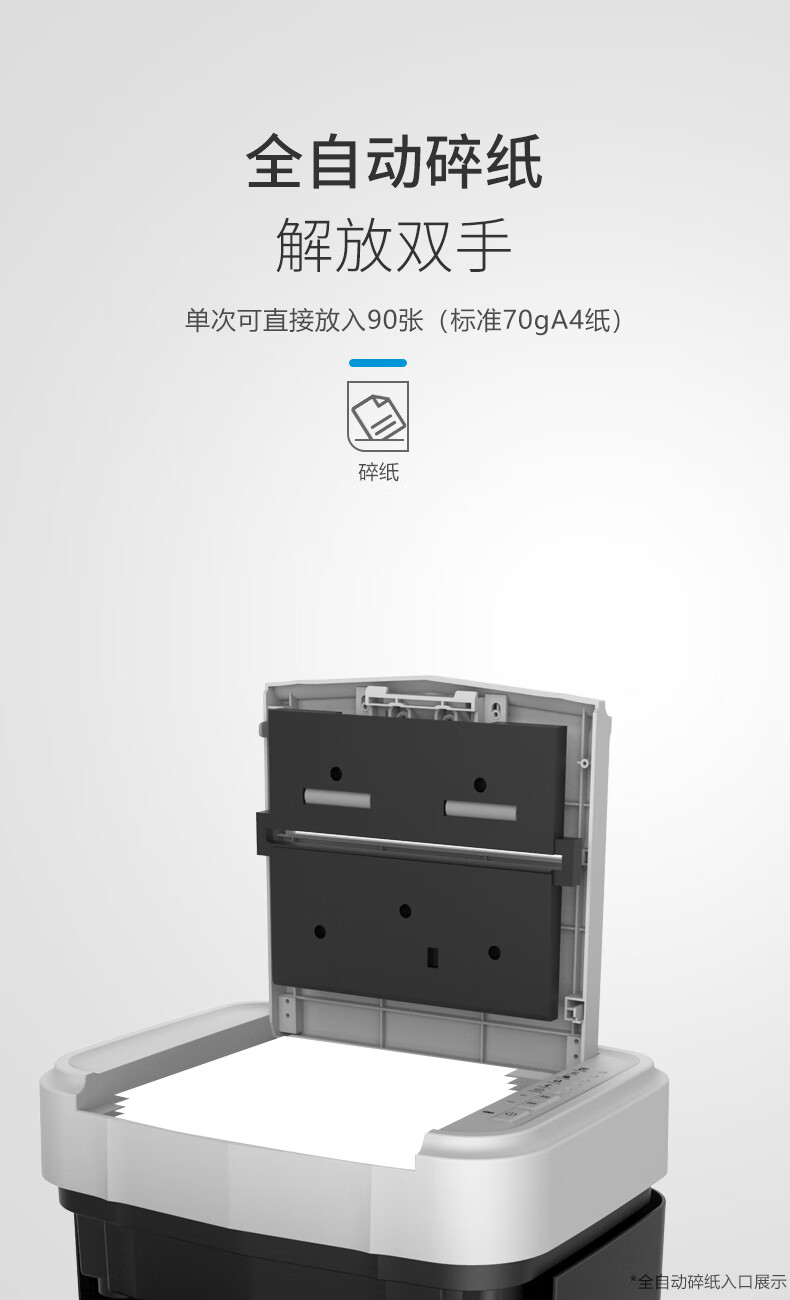 震旦AURORA 5级保密办公商用全自动碎纸机解放双手 无需值守(自动90张 持续60分钟 19L 可碎卡) AS90MQ