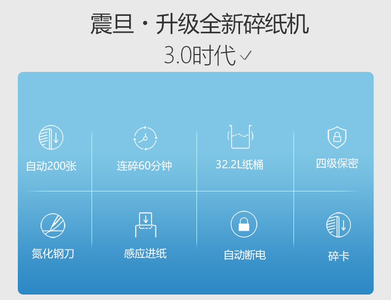 震旦AURORA 4级保密办公商用全自动碎纸机(自动200张 持续60分钟 32.2L 可碎卡、光盘) AS200CM