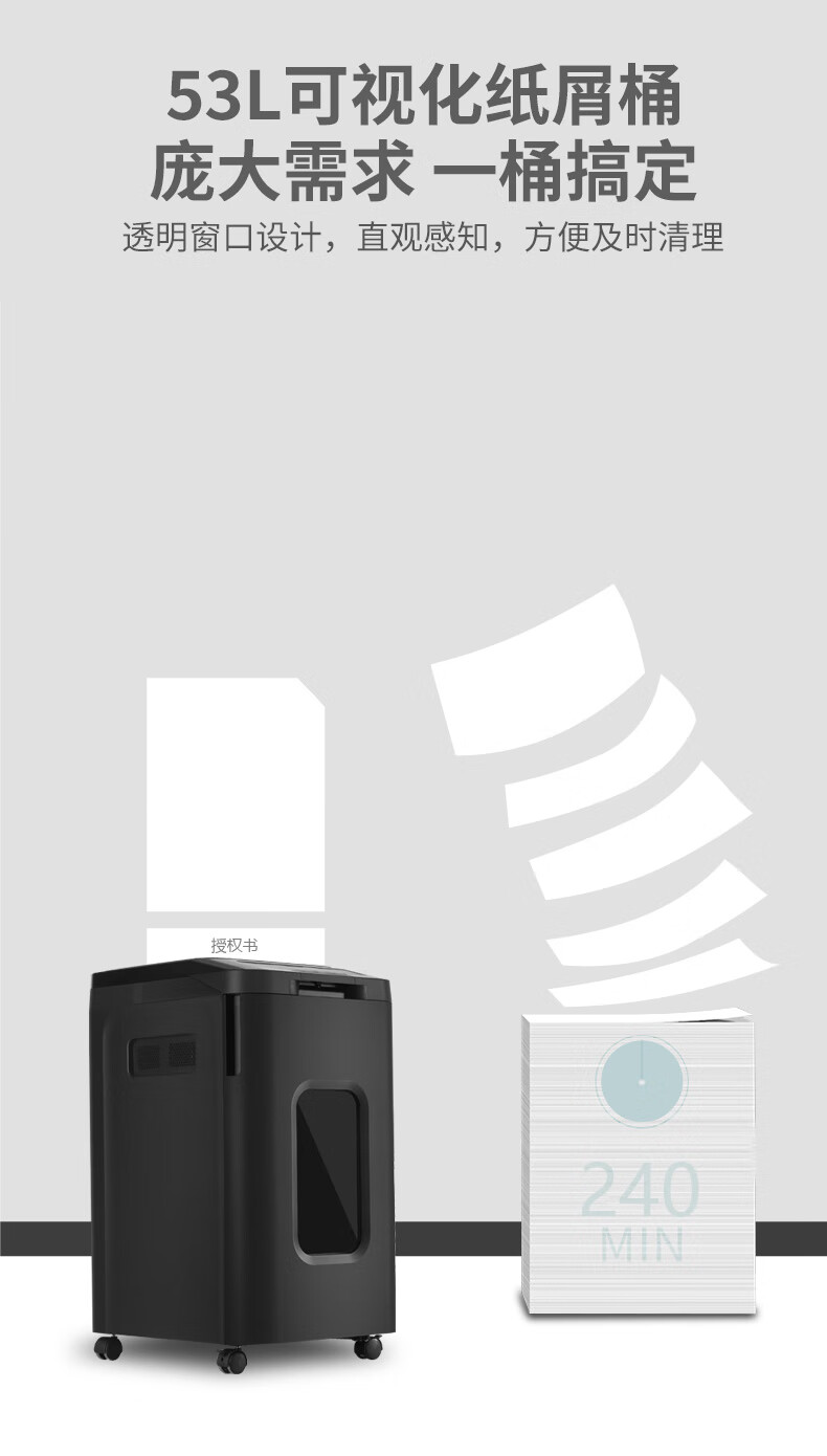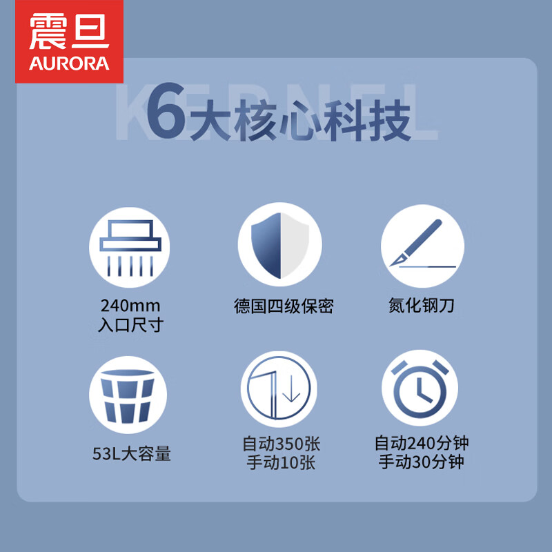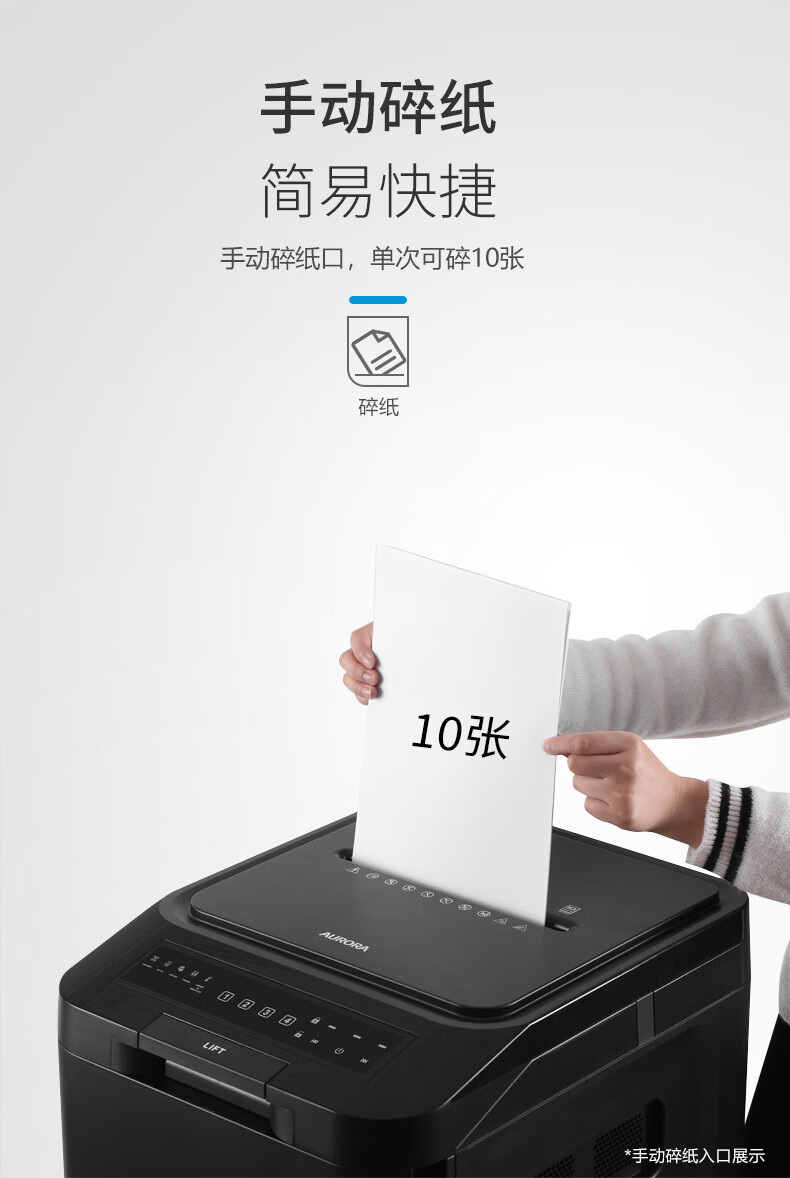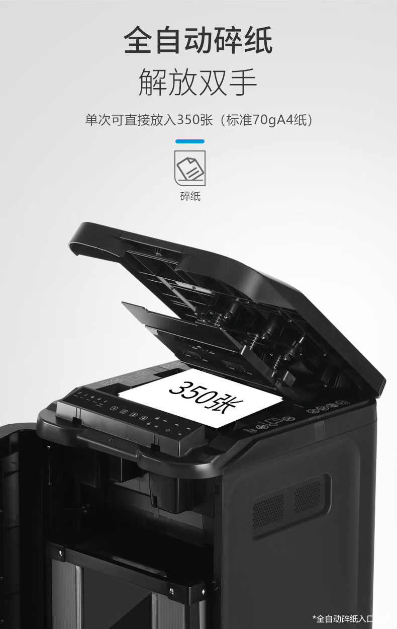 震旦AURORA 4级保密办公商用全自动碎纸机 解放双手(自动350张 持续240分钟 53L 可碎卡、光盘) AS350CD