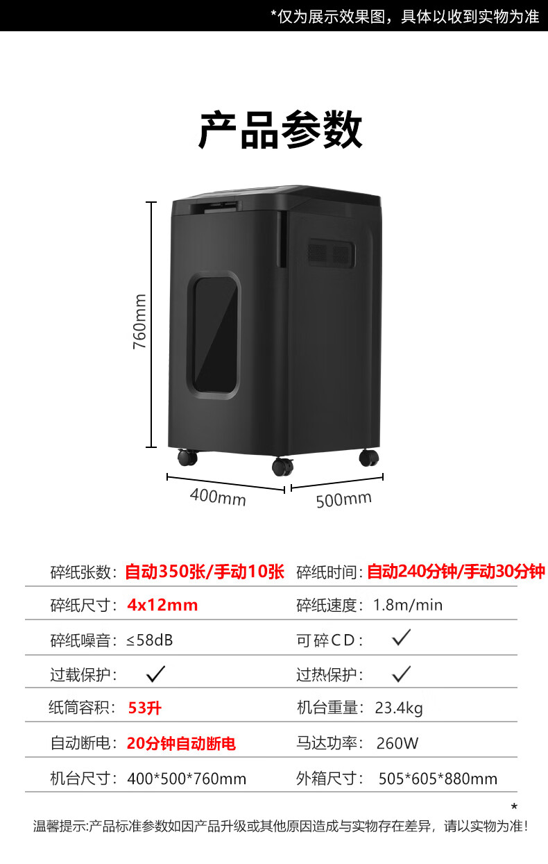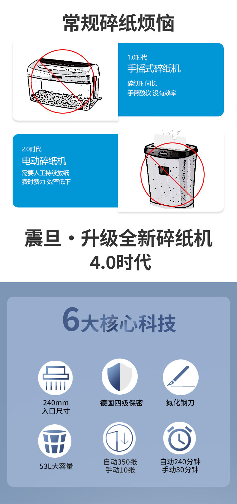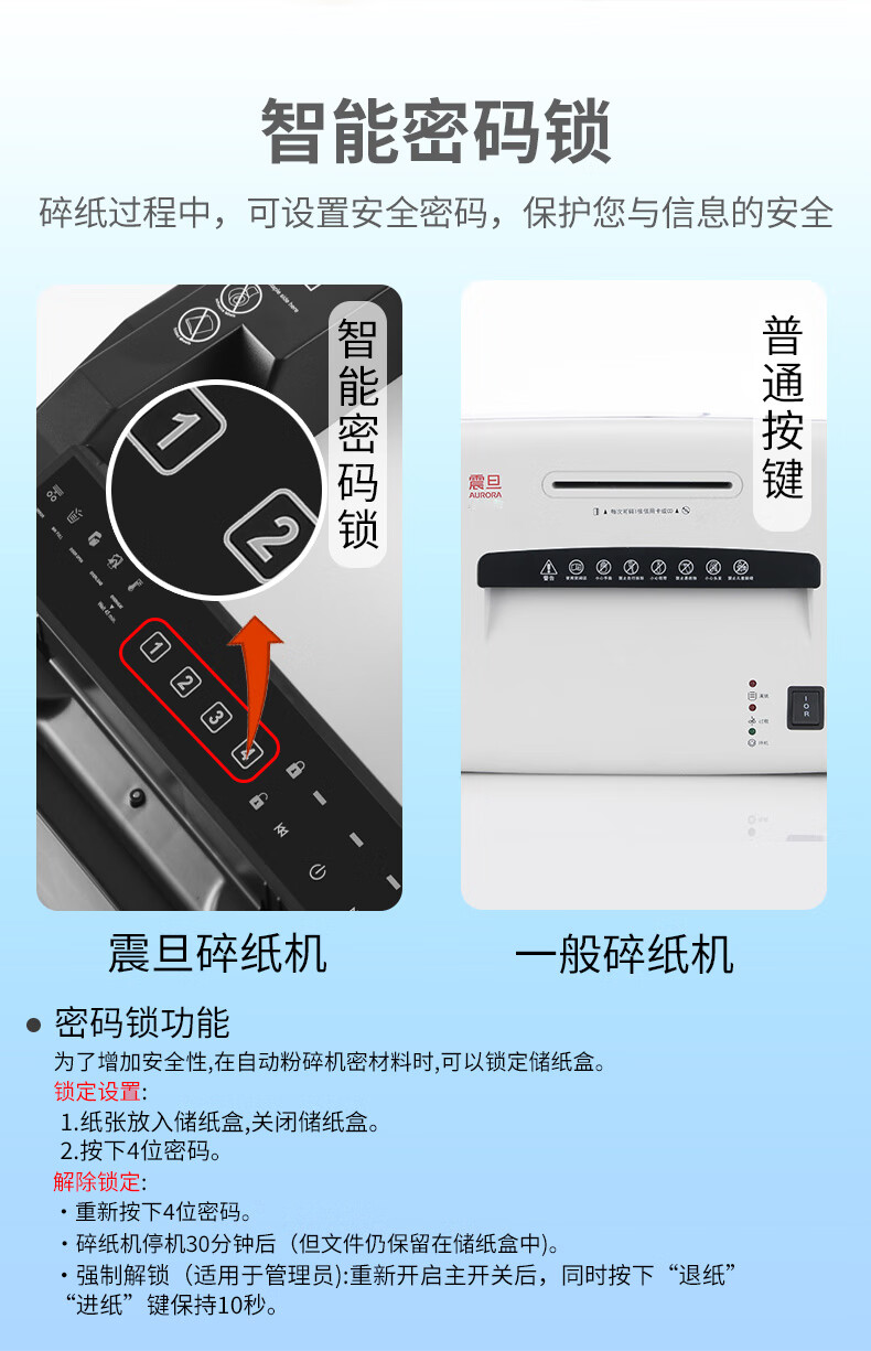 震旦AURORA 4级保密办公商用全自动碎纸机 解放双手(自动350张 持续240分钟 53L 可碎卡、光盘) AS350CD