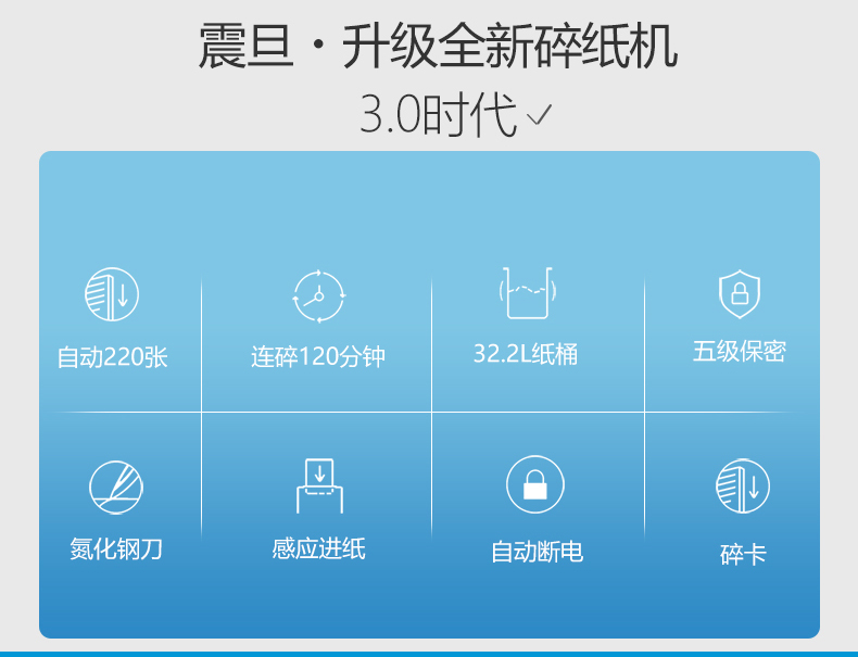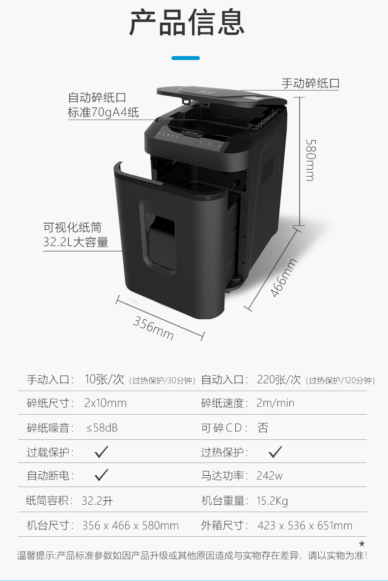 震旦AURORA 5级保密办公商用全自动碎纸机(自动220张 持续120分钟 32.2L 可碎卡) AS220MQ