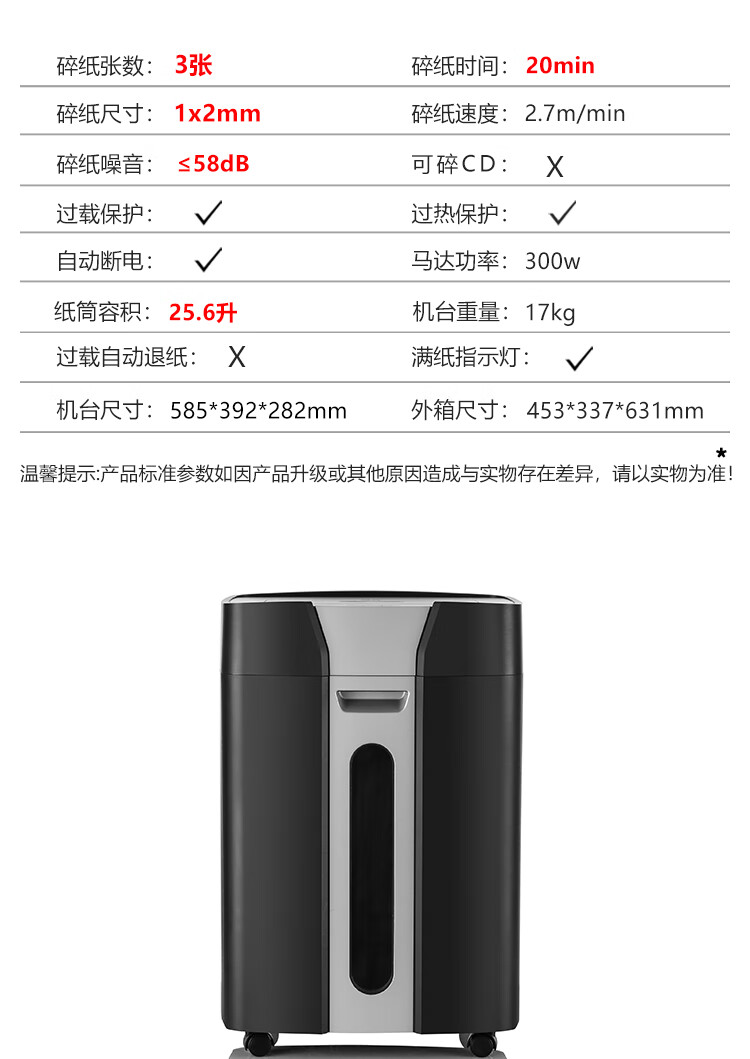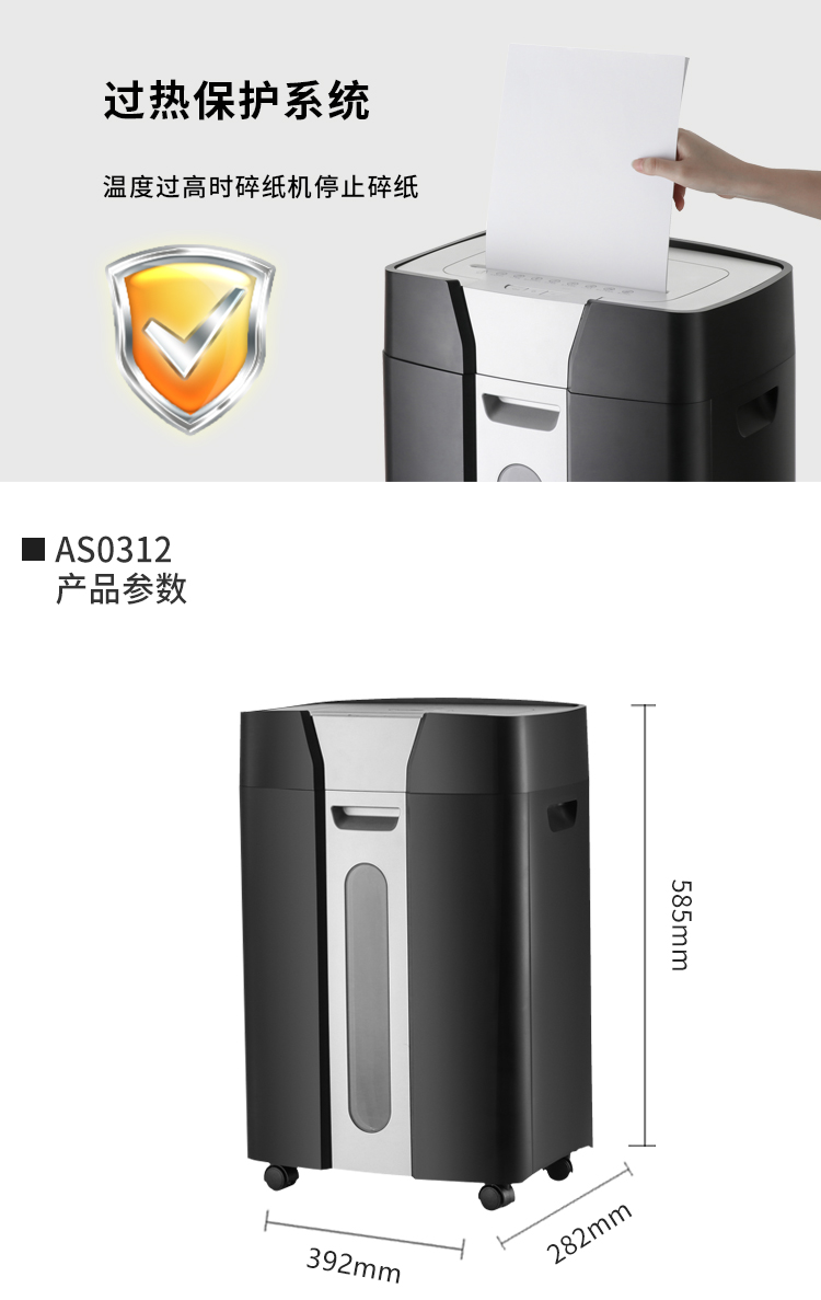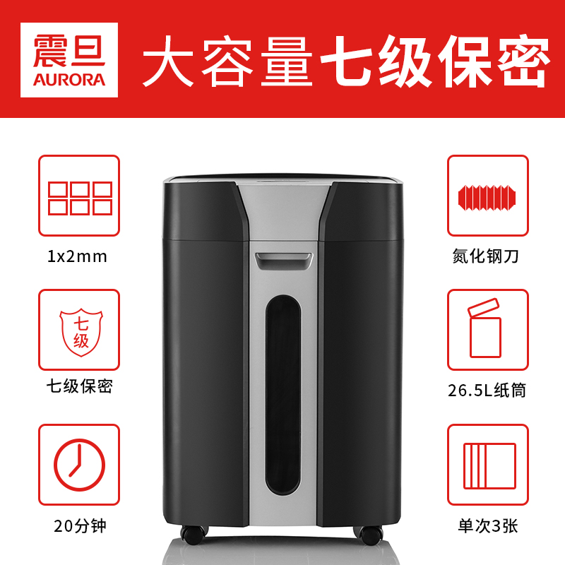 震旦AURORA 7级保密办公商用碎纸机(单次3张 持续20分钟 26.5L 可碎卡) AS0312