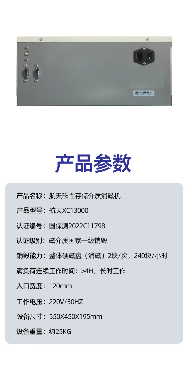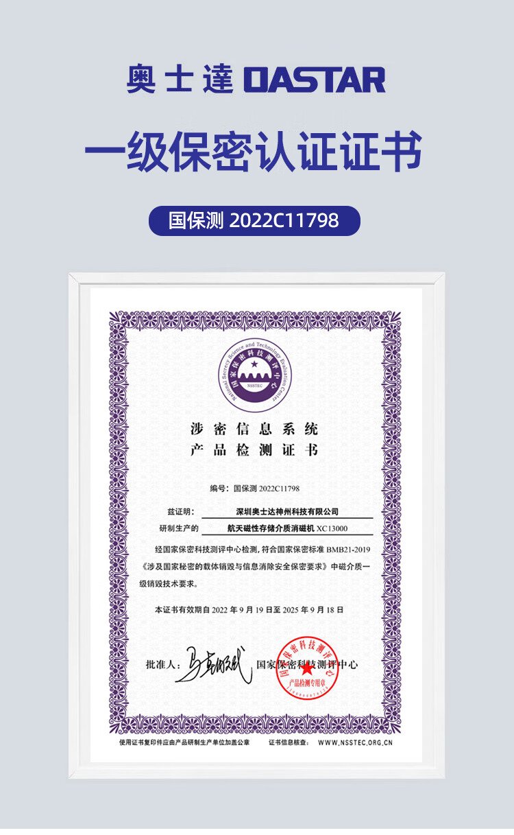 奥士达(OASTAR)硬盘消磁机 一级消磁保密认证磁性存储介质消磁机XC13000
