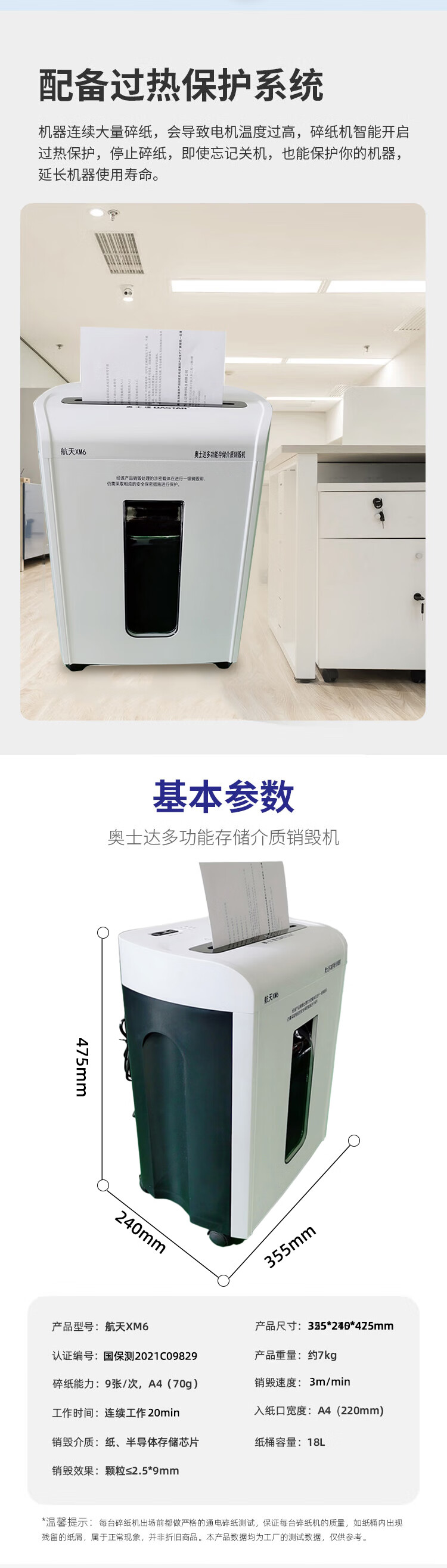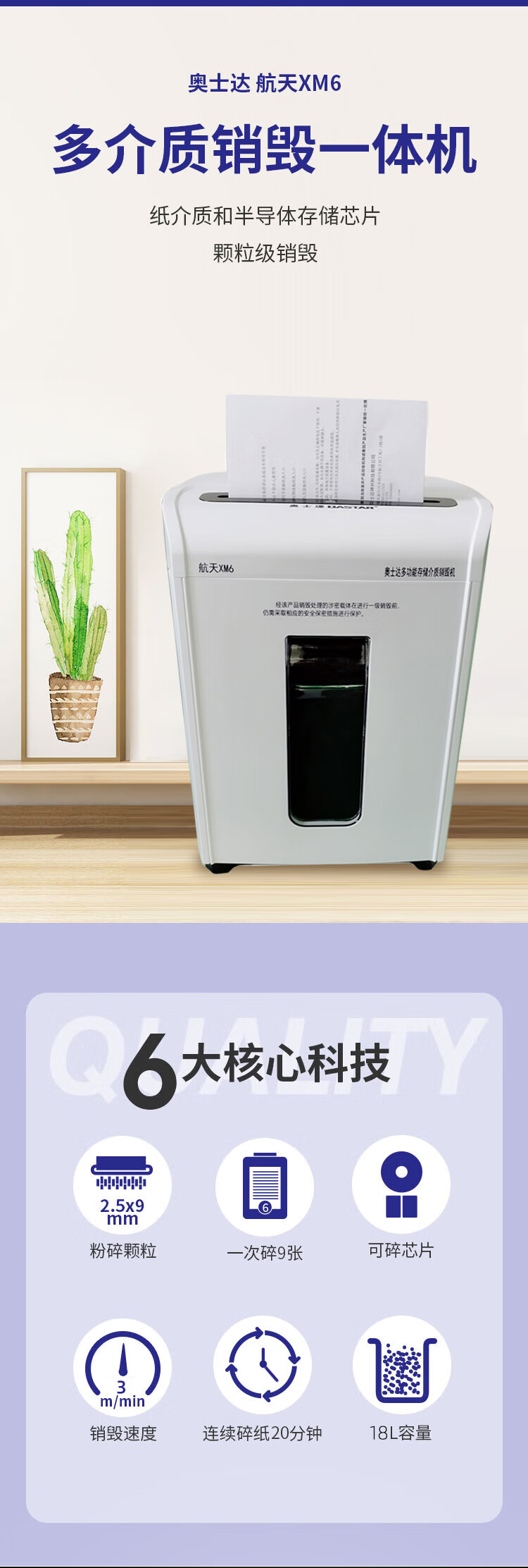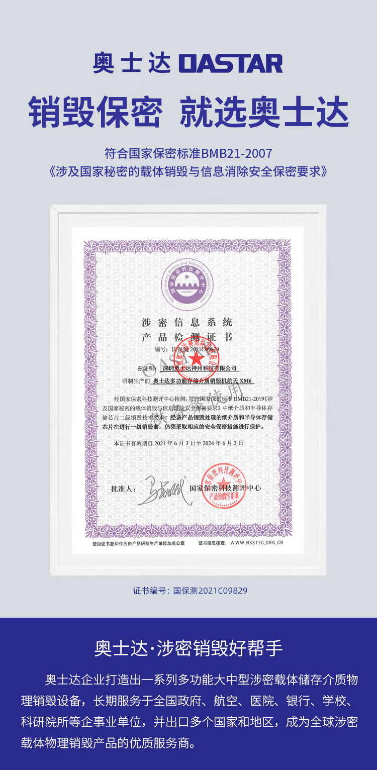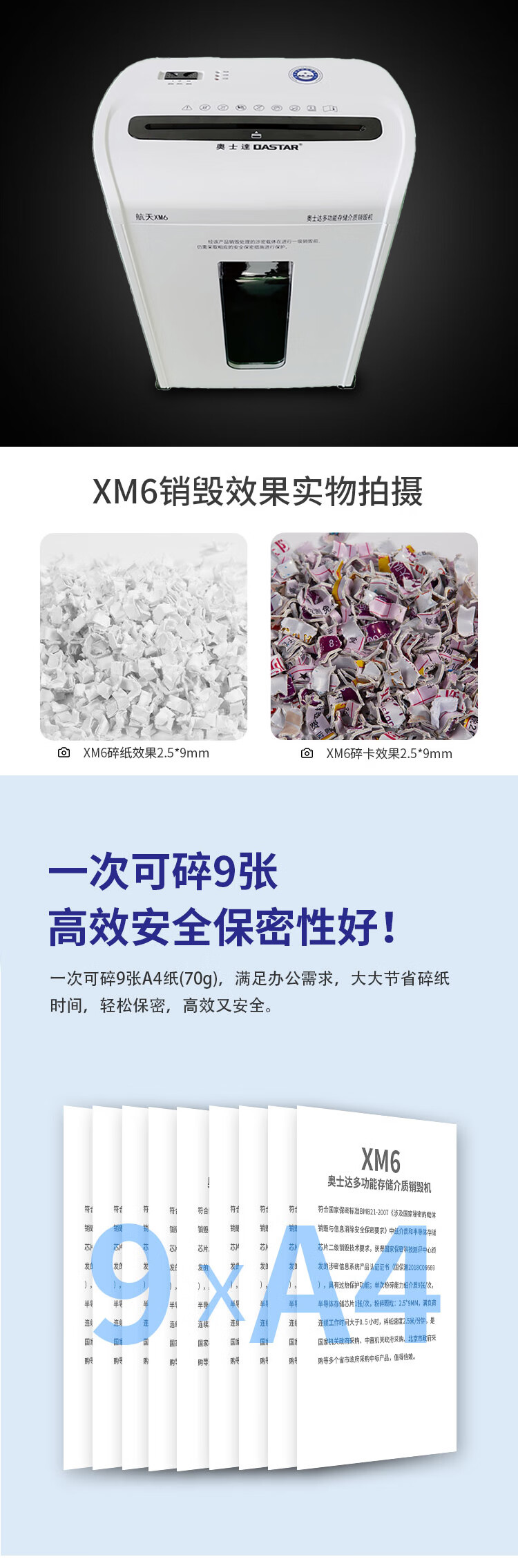 奥士达(OASTAR)航天XM6多功能碎纸机 纸介质/半导体芯片二级保密认证销毁机