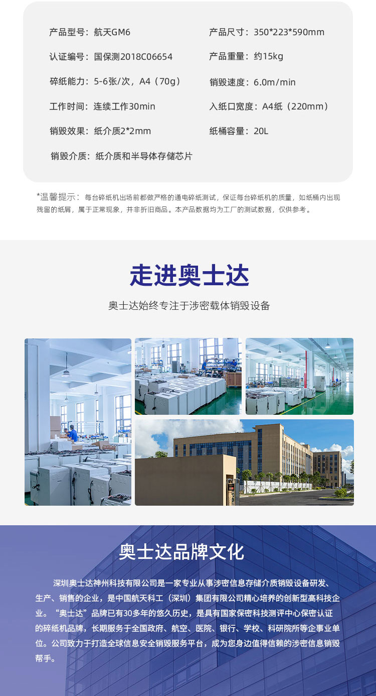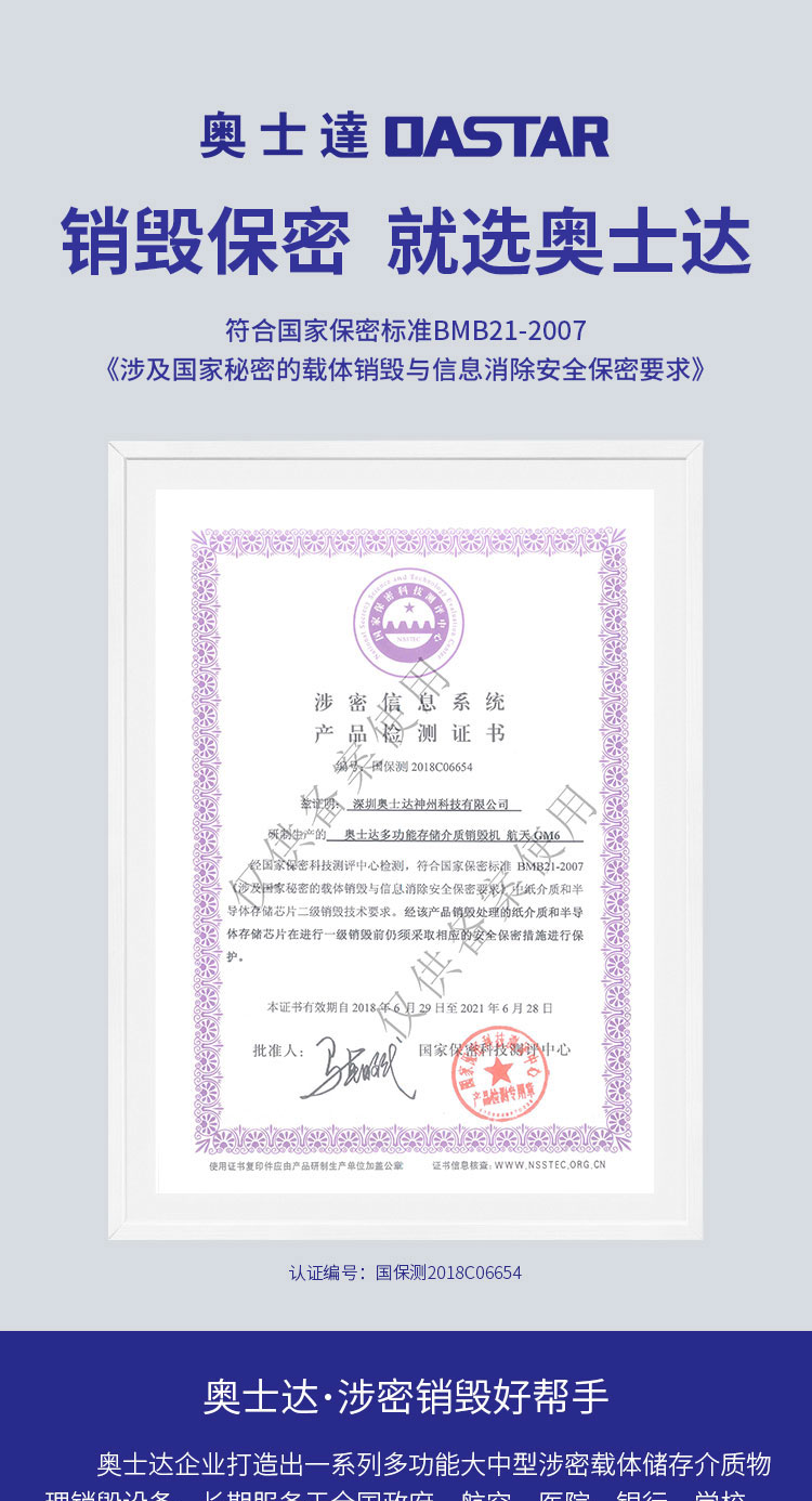 奥士达(OASTAR)航天GM6高保密碎纸机2*2mm二级保密认证纸张粉碎机