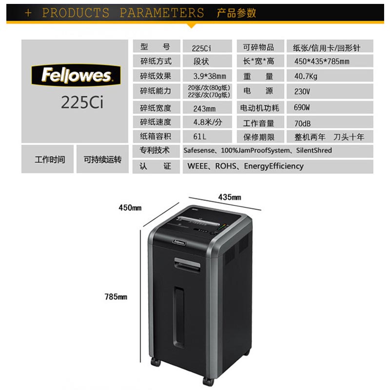 碎纸机参数: