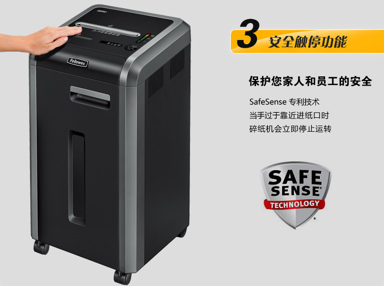 SafeSense技术当手过于靠近时,可停止碎纸运作