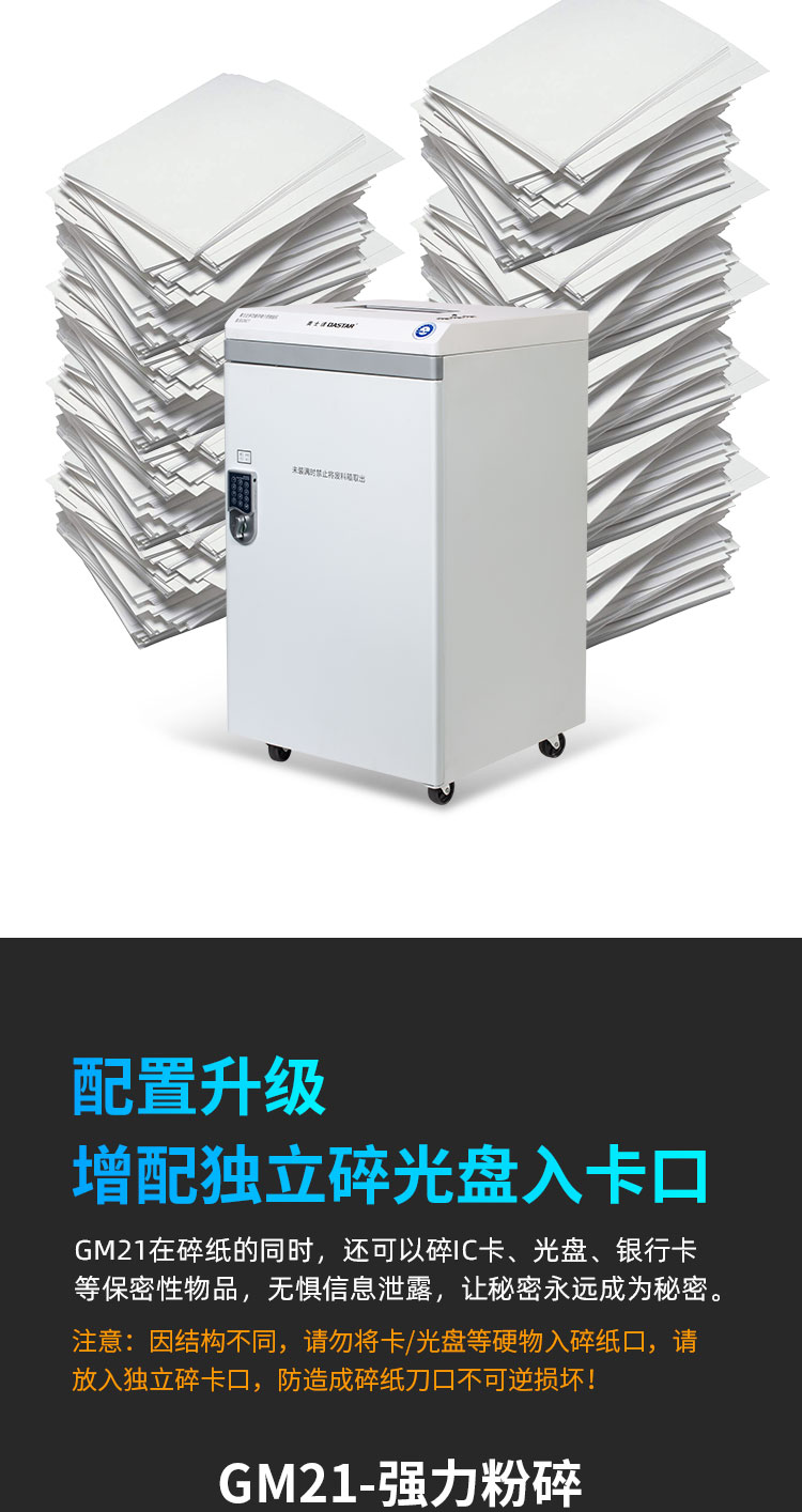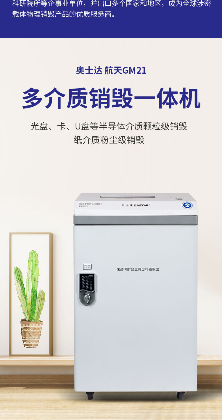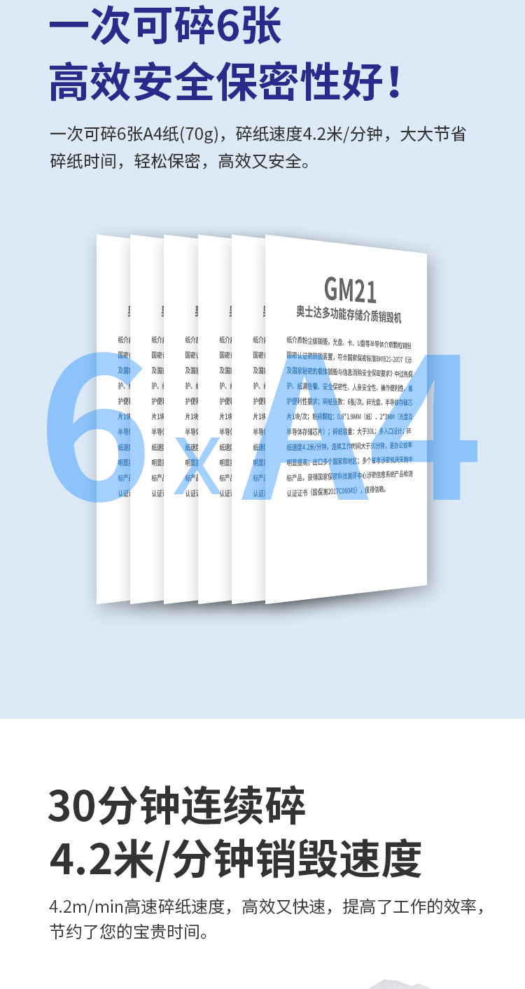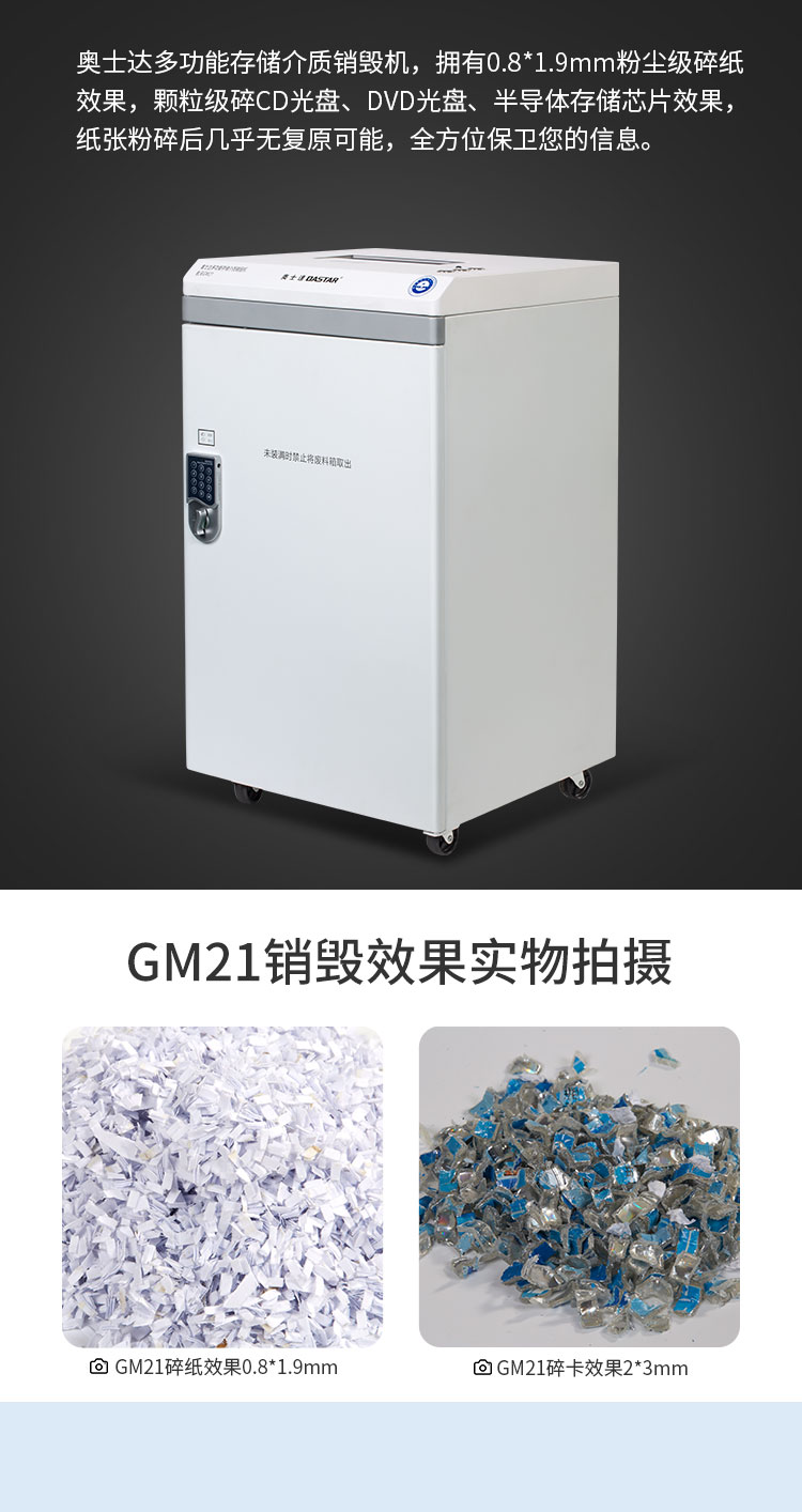 奥士达(OASTAR)航天GM2高保密碎纸机30L单次6张办公文件颗粒级粉碎机(0.8*1.9mm)