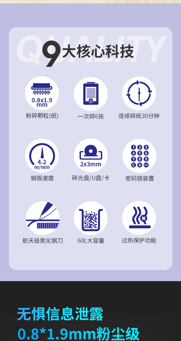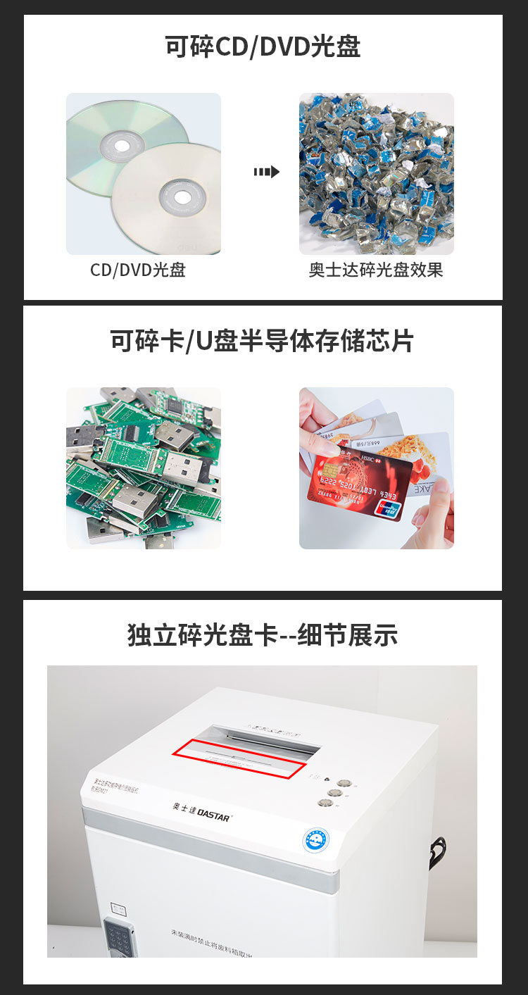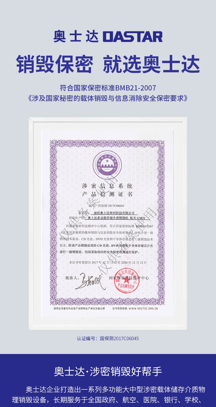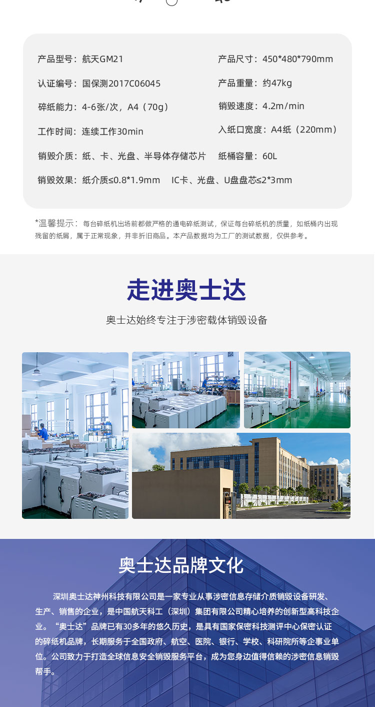 奥士达(OASTAR)航天GM2高保密碎纸机30L单次6张办公文件颗粒级粉碎机(0.8*1.9mm)