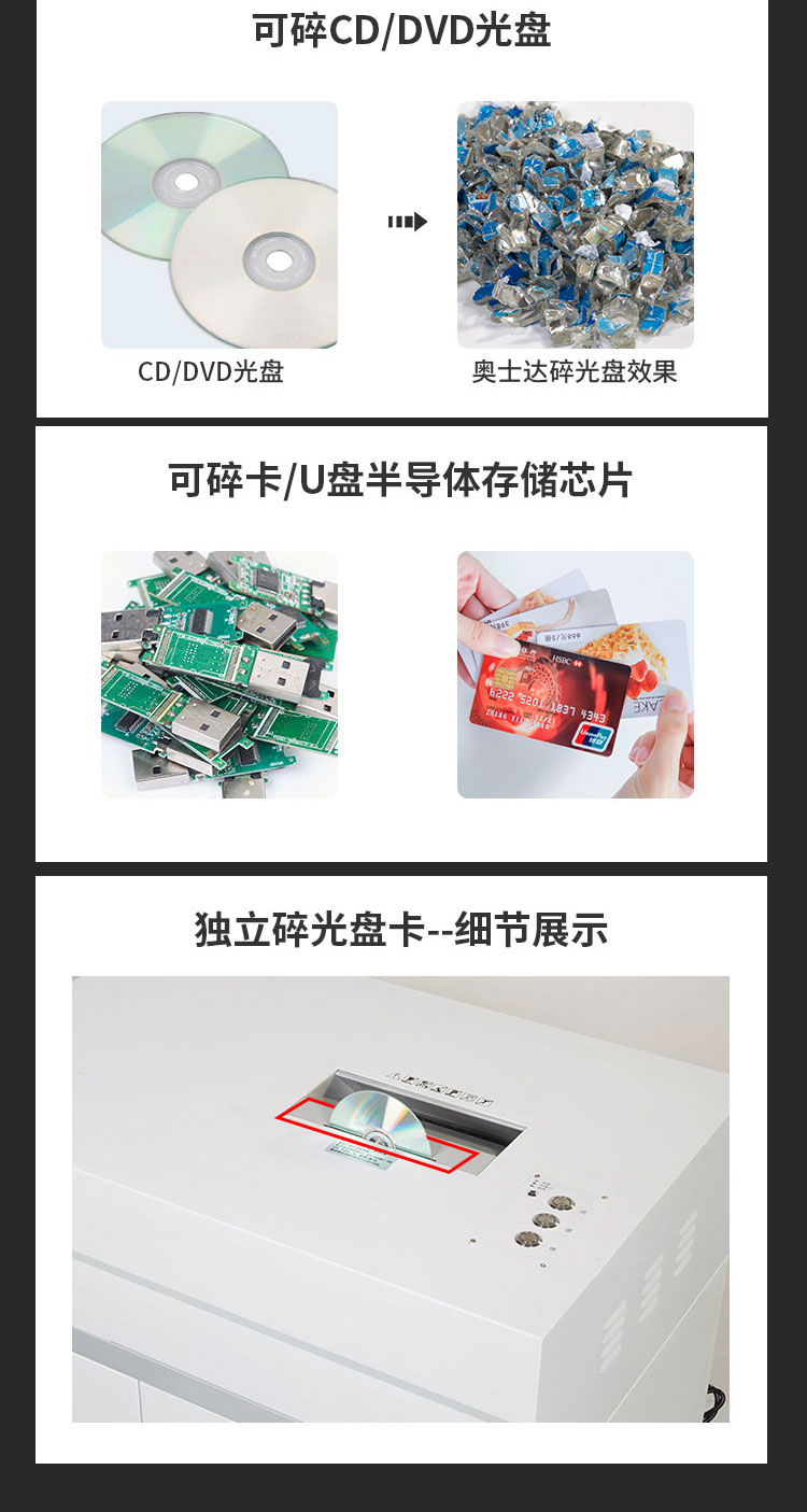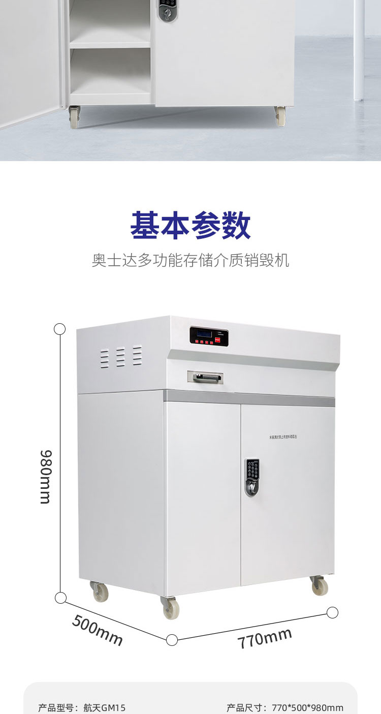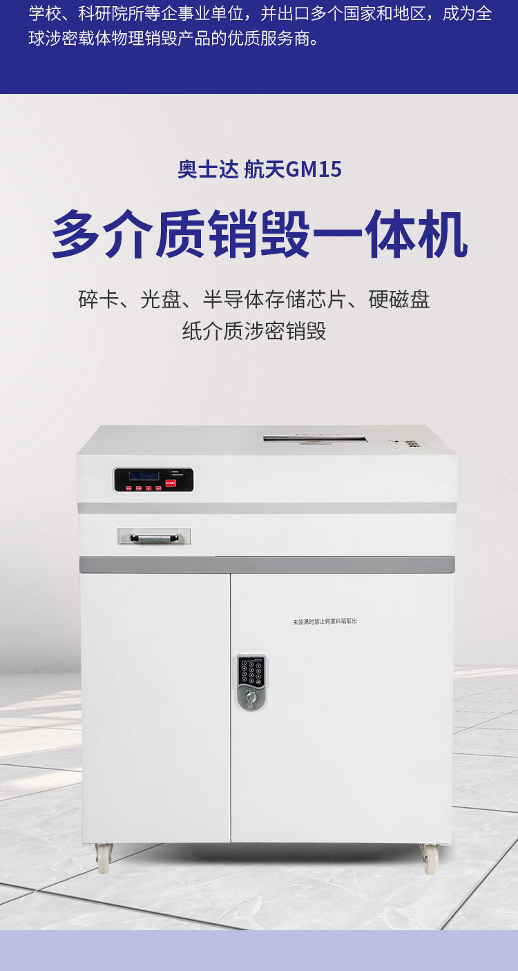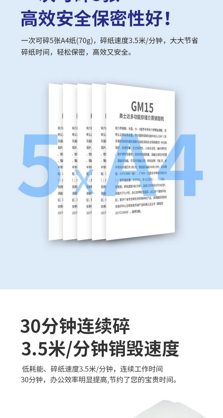 奥士达(OASTAR)0.8*0.8mm高保密碎纸机 磁介质一级多功能消磁粉碎一体机航天GM15