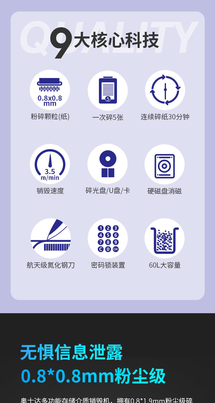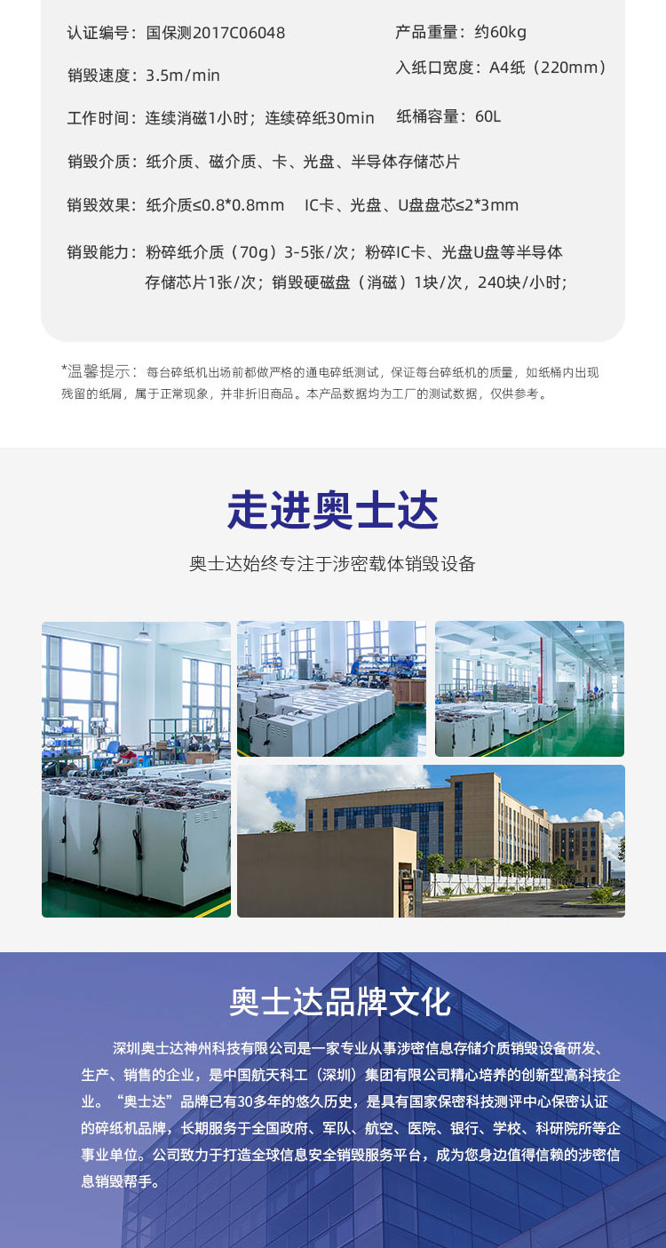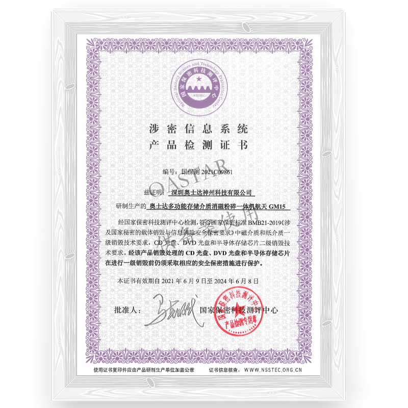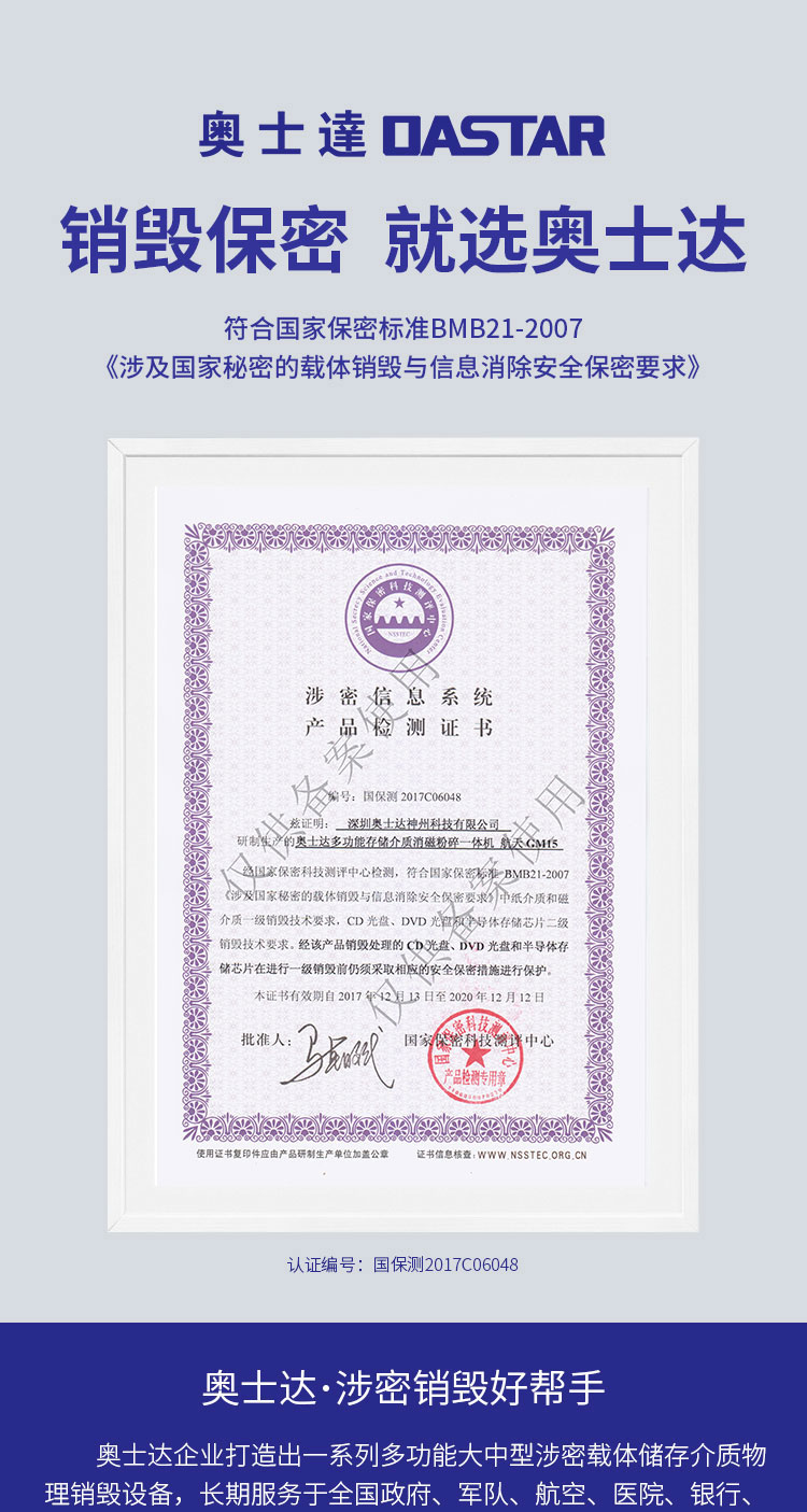 奥士达(OASTAR)0.8*0.8mm高保密碎纸机 磁介质一级多功能消磁粉碎一体机航天GM15