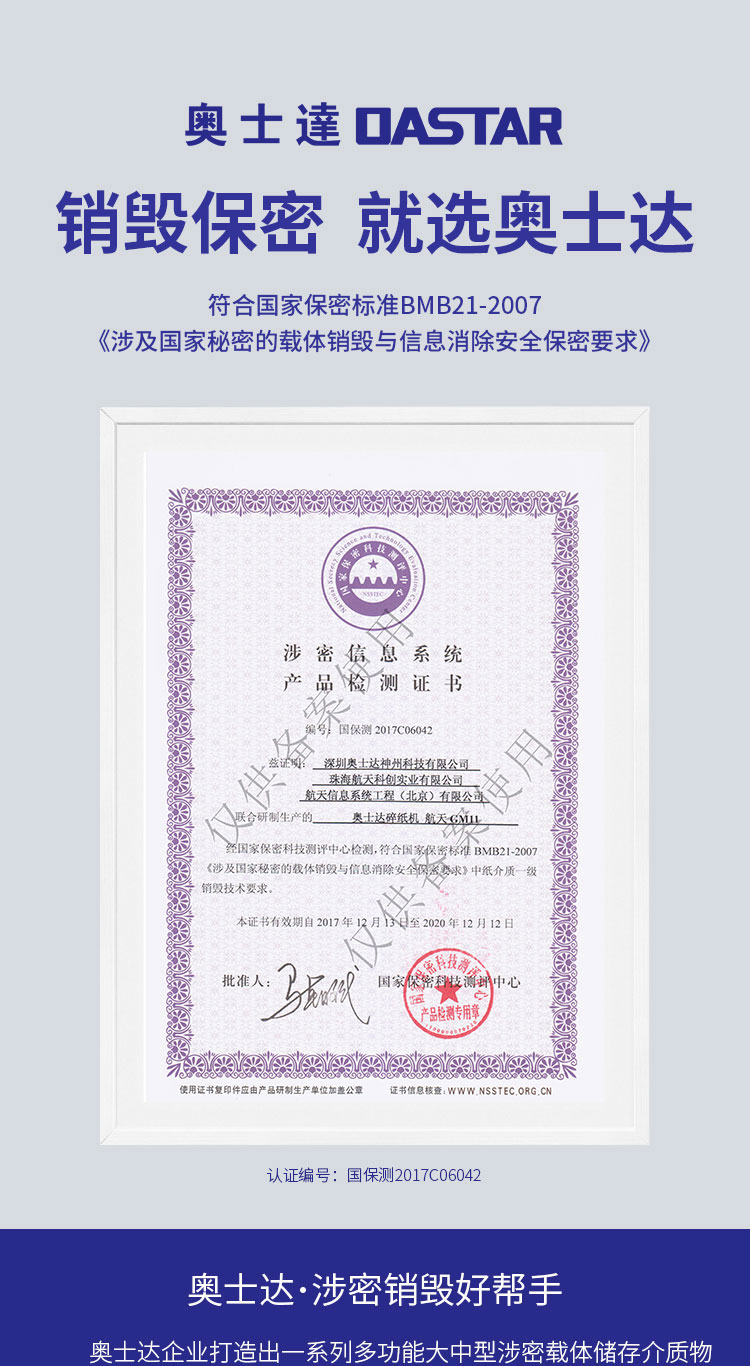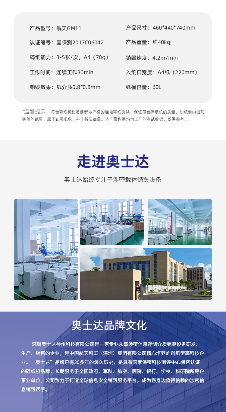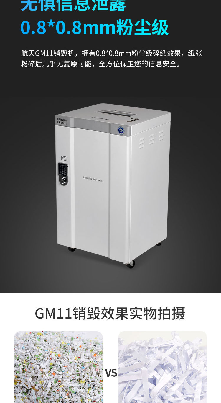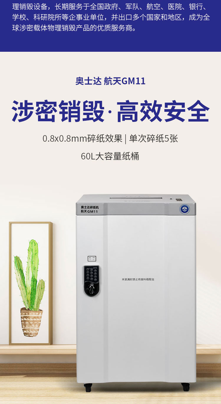 奥士达(OASTAR)航天GM11高保密碎纸机 60升0.8*0.8mm纸介质粉碎机