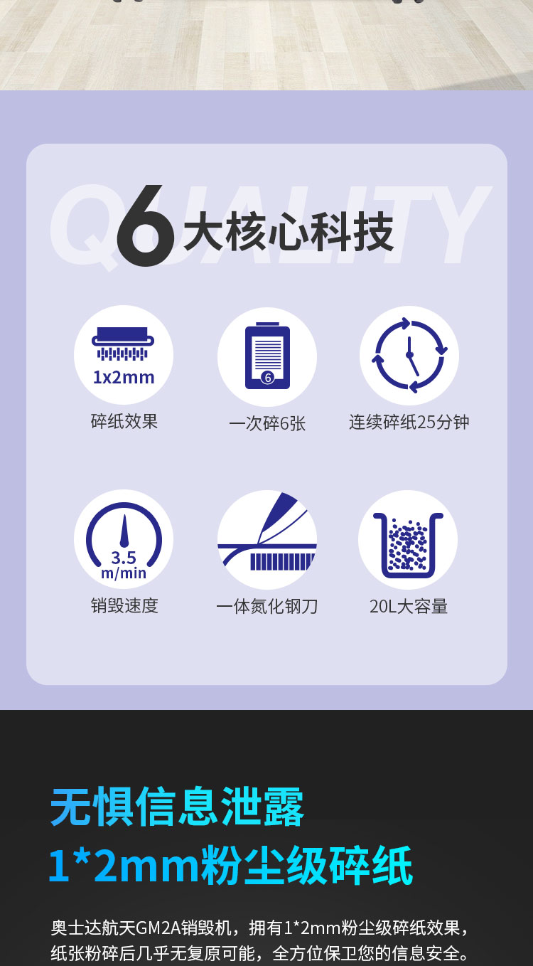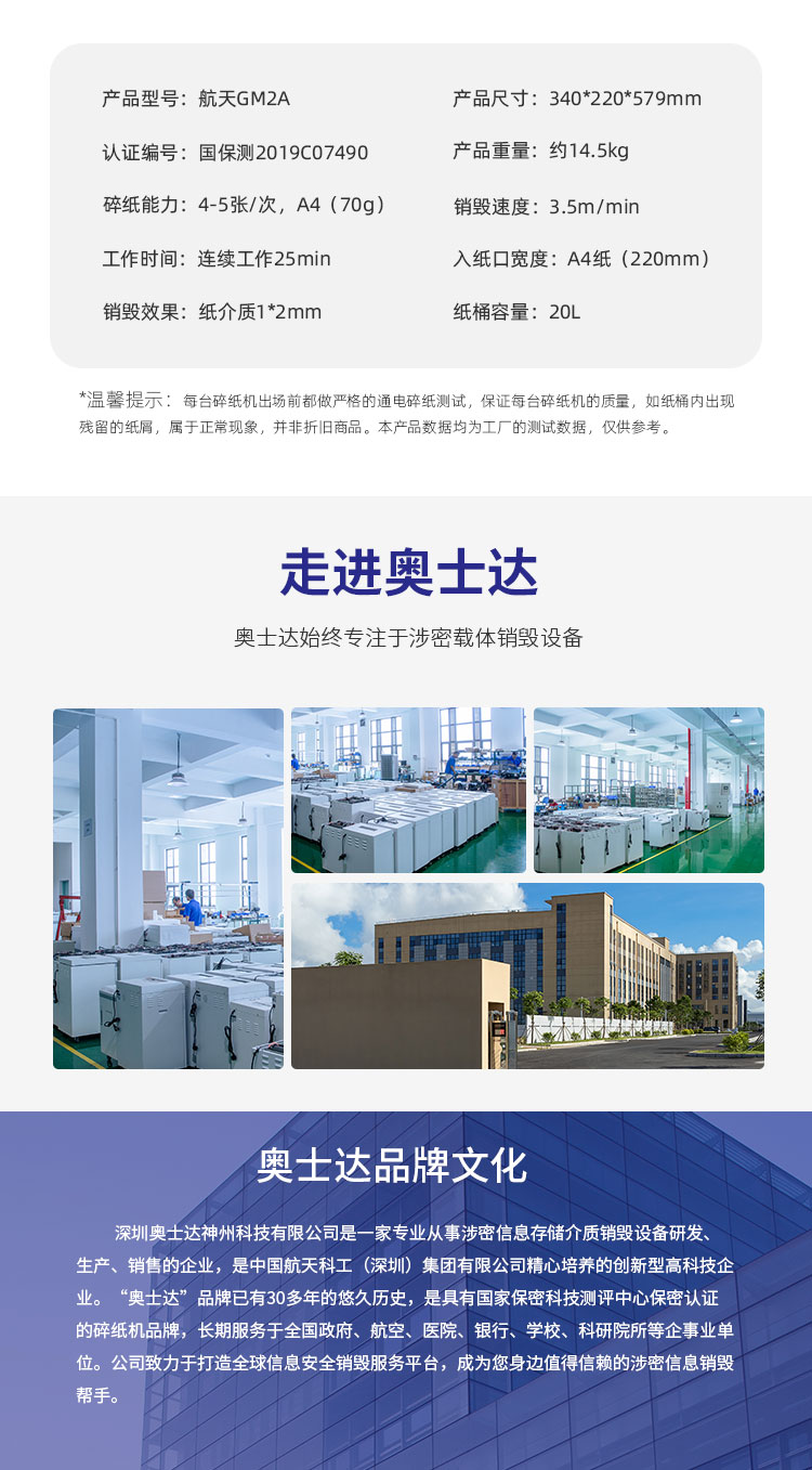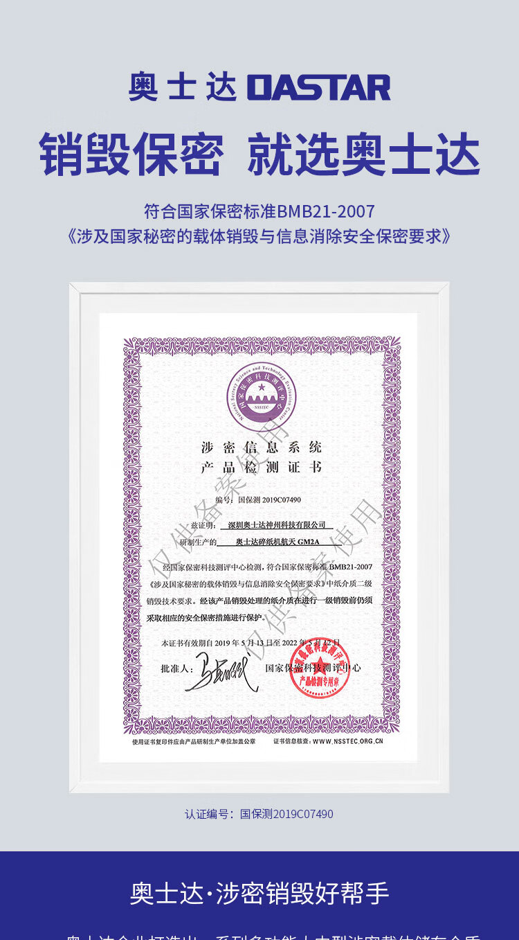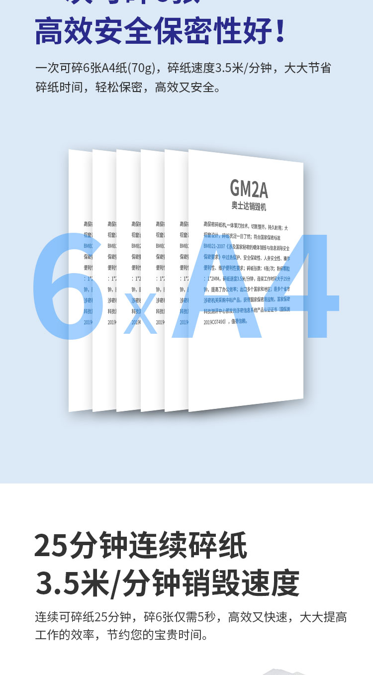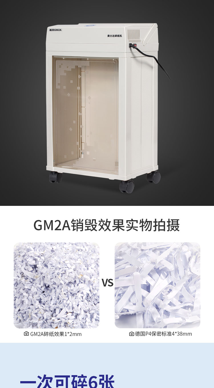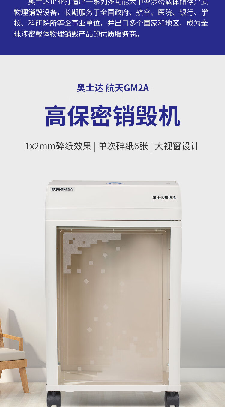奥士达(OASTAR)航天GM2A纸介质高级保密碎纸机 1*2mm办公文件颗粒级粉碎机