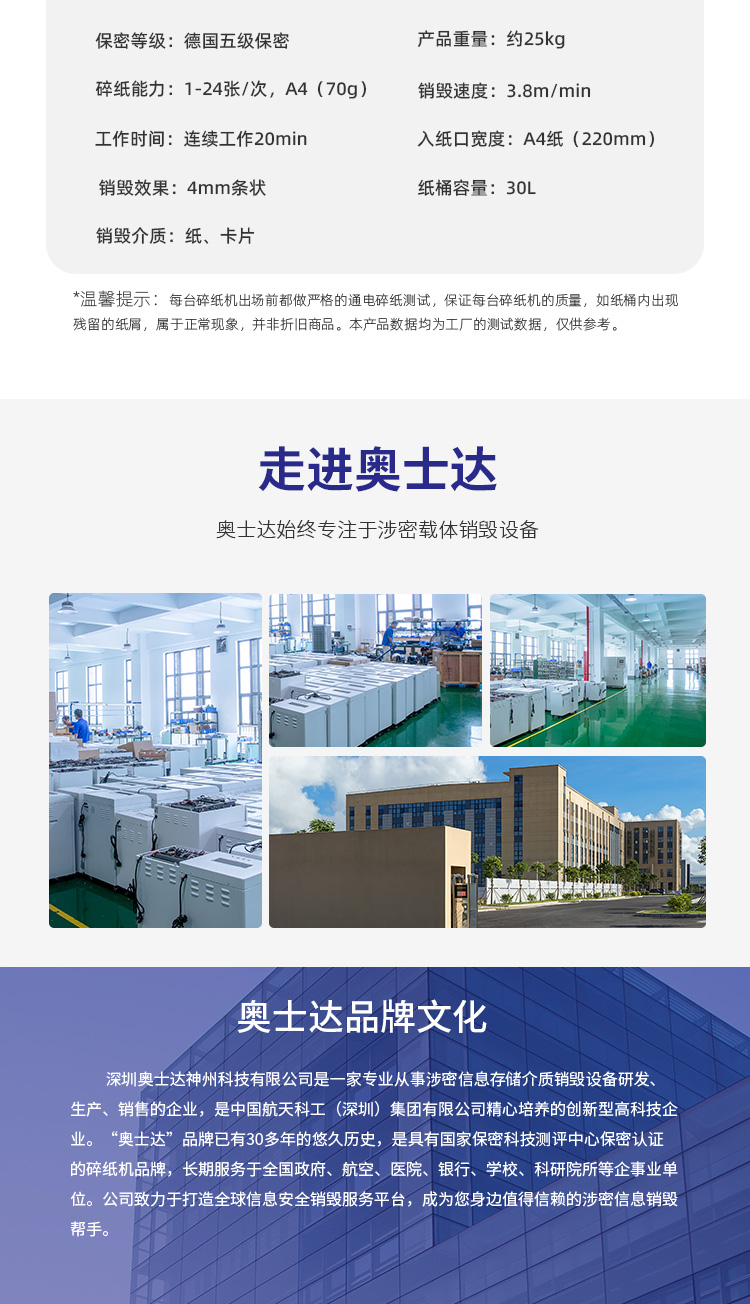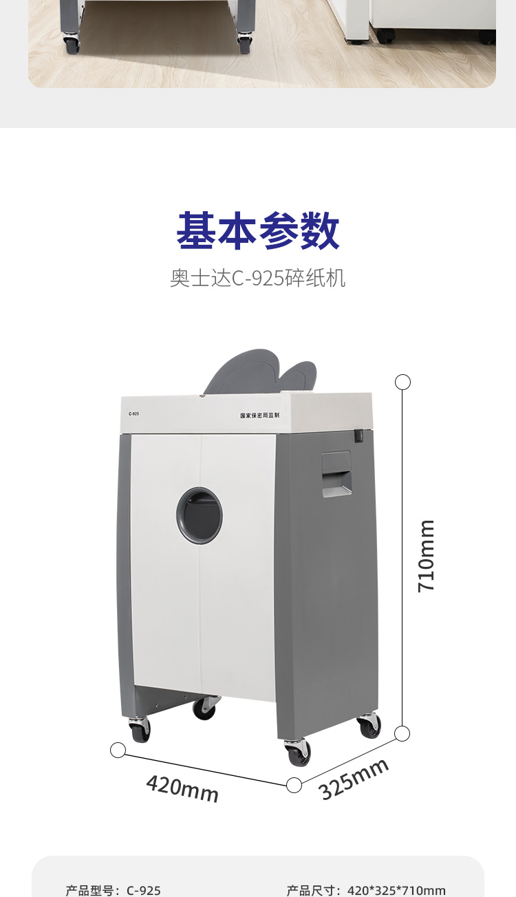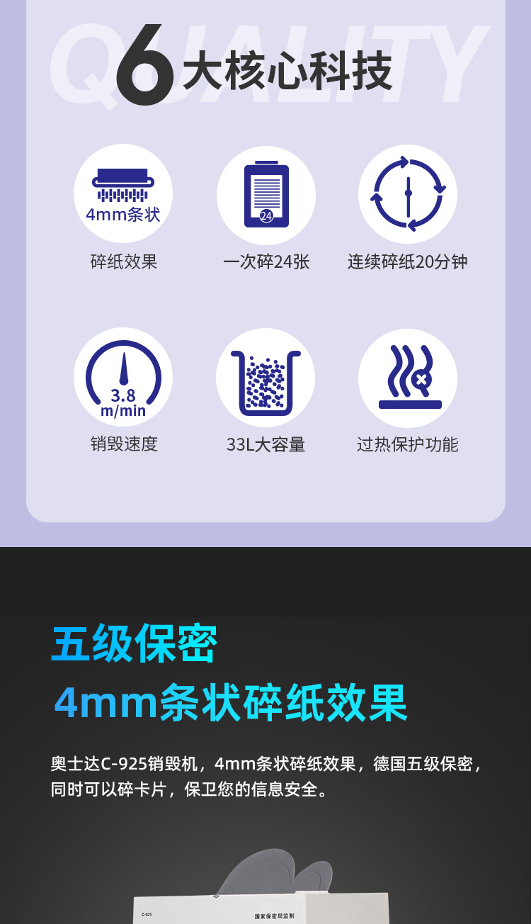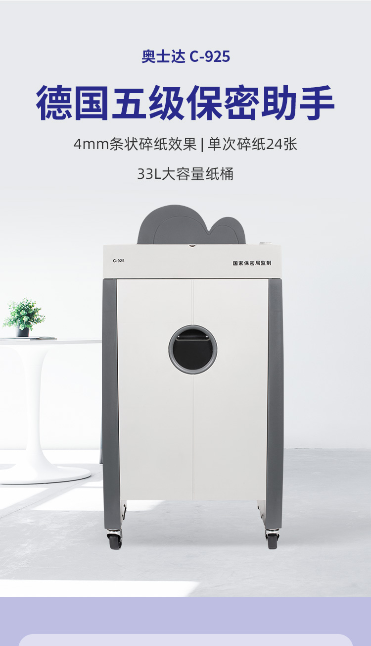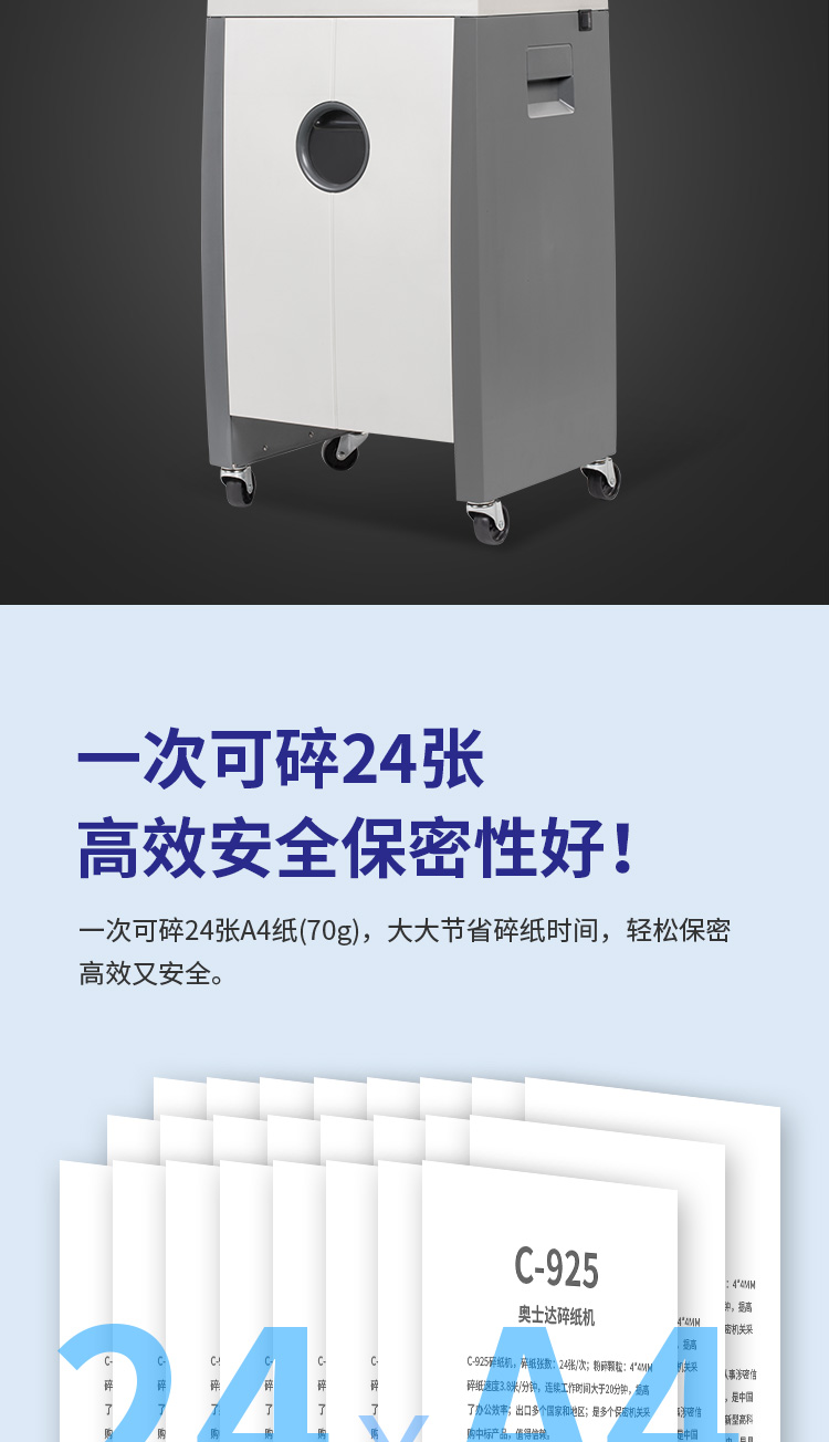 奥士达(OASTAR)C-925德国5级高保密碎纸机单次24张办公商用文件粉碎机