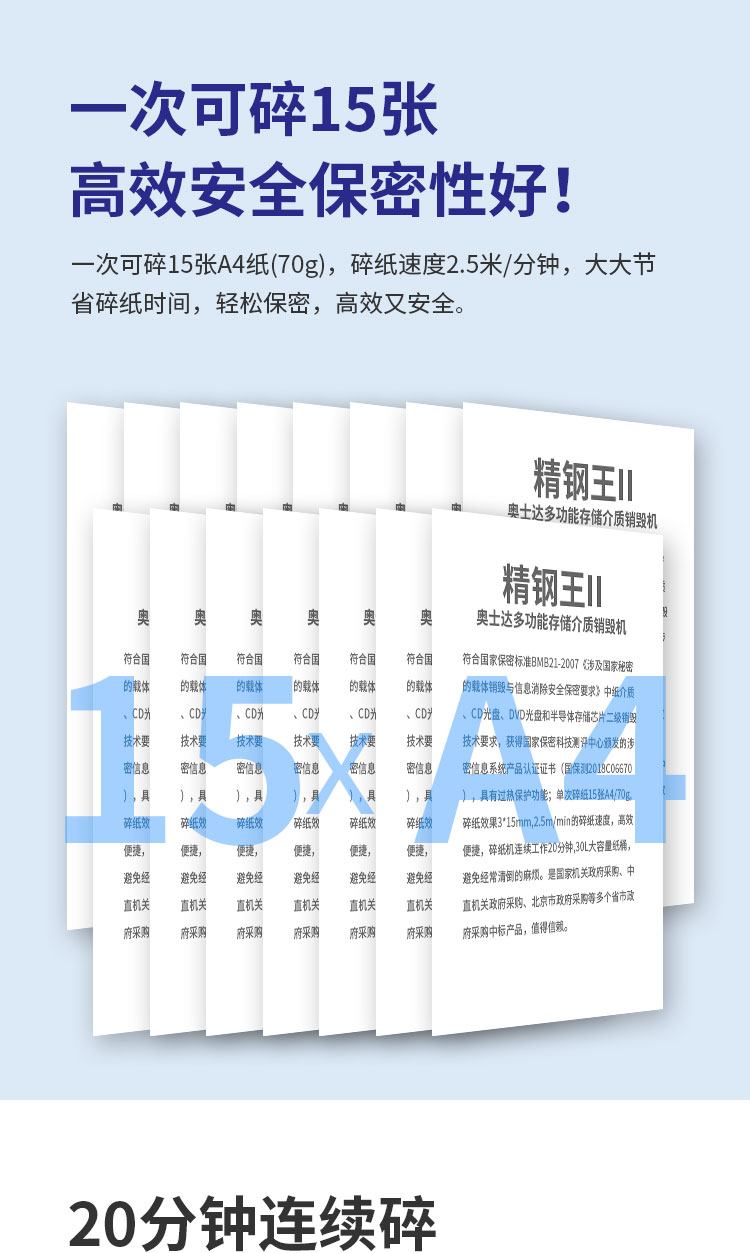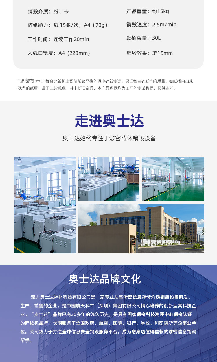 奥士达(OASTAR)精钢王II办公商用碎纸机 30L单次15张办公文件高效粉碎机