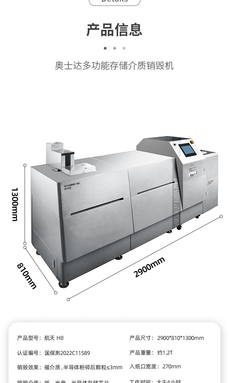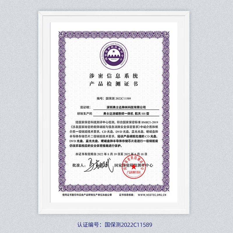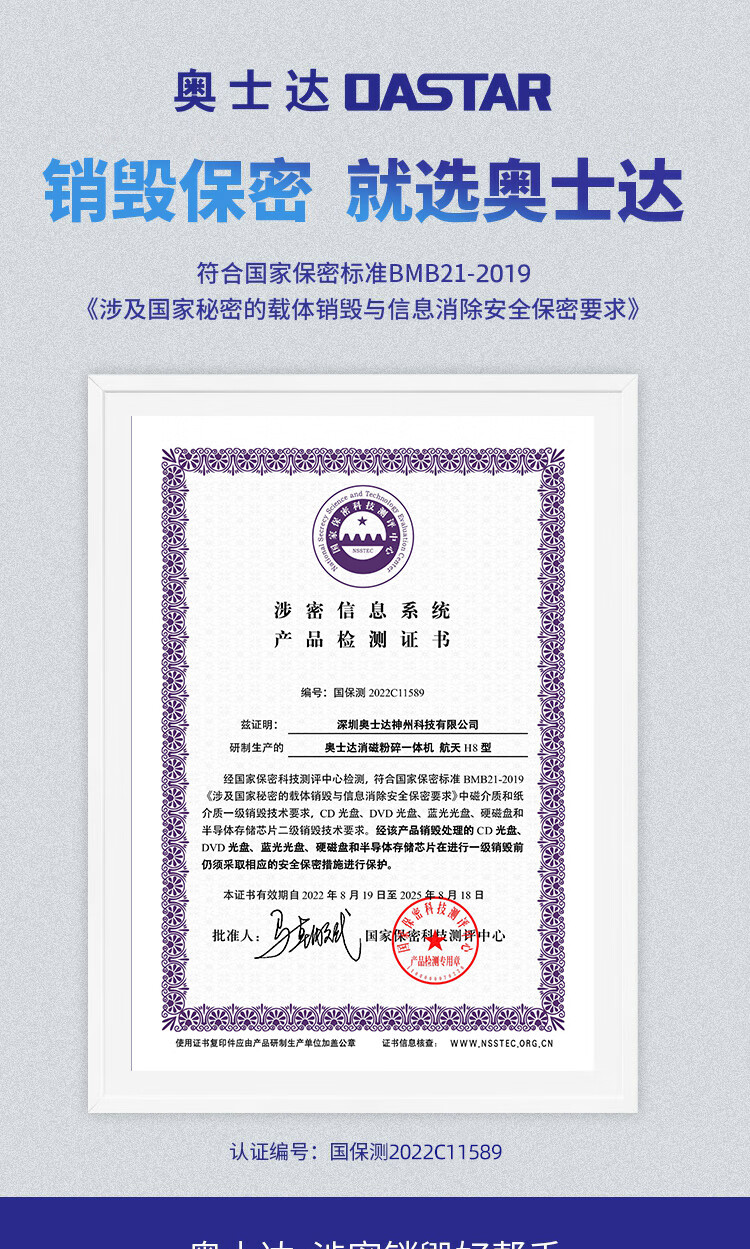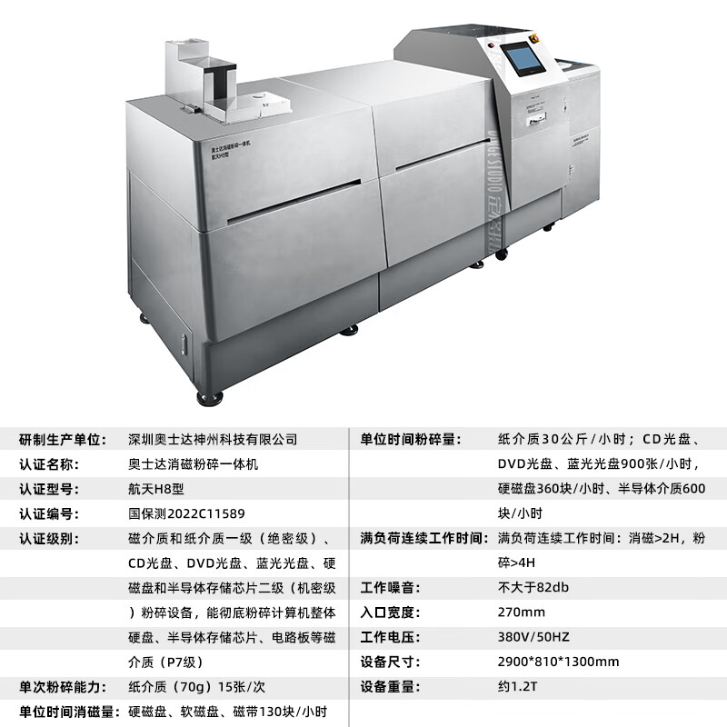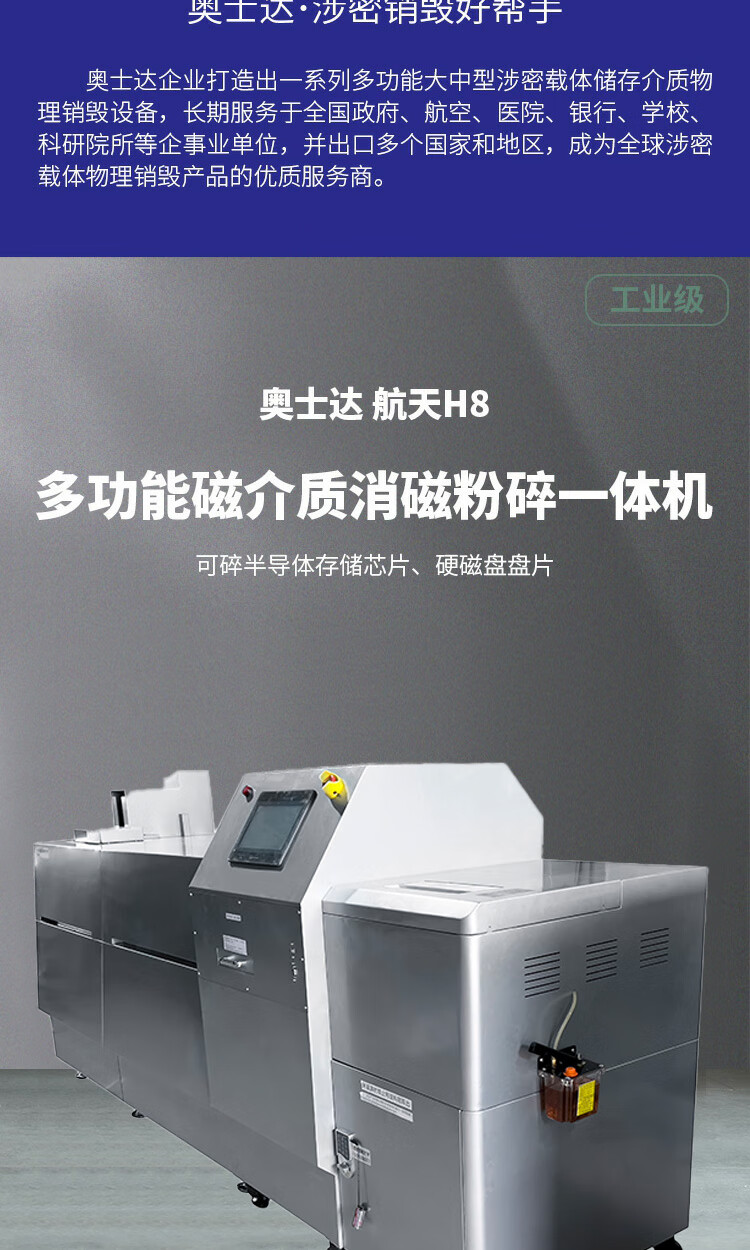 奥士达(OASTAR)航天H8型多功能磁介质消磁粉碎一体机工业硬磁盘销毁机