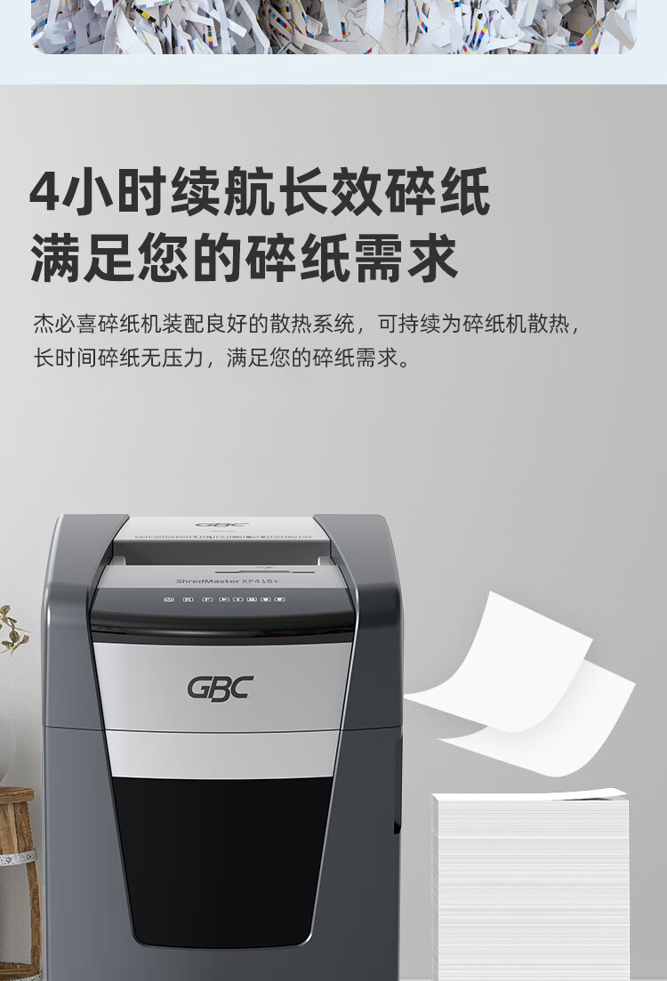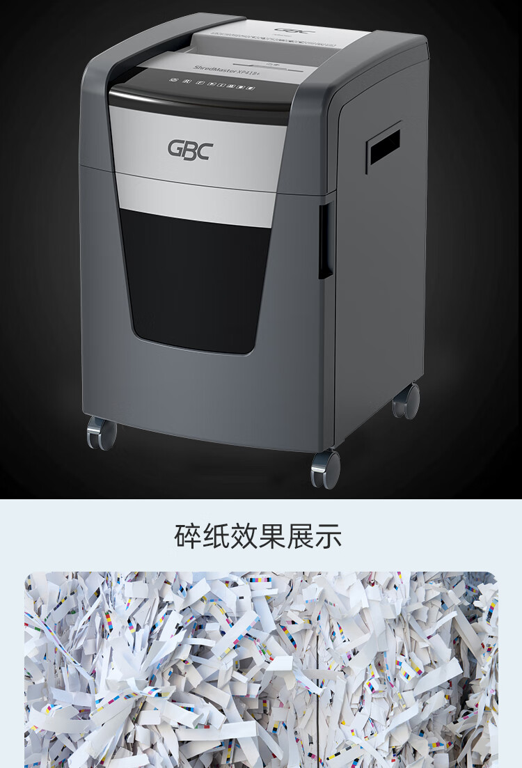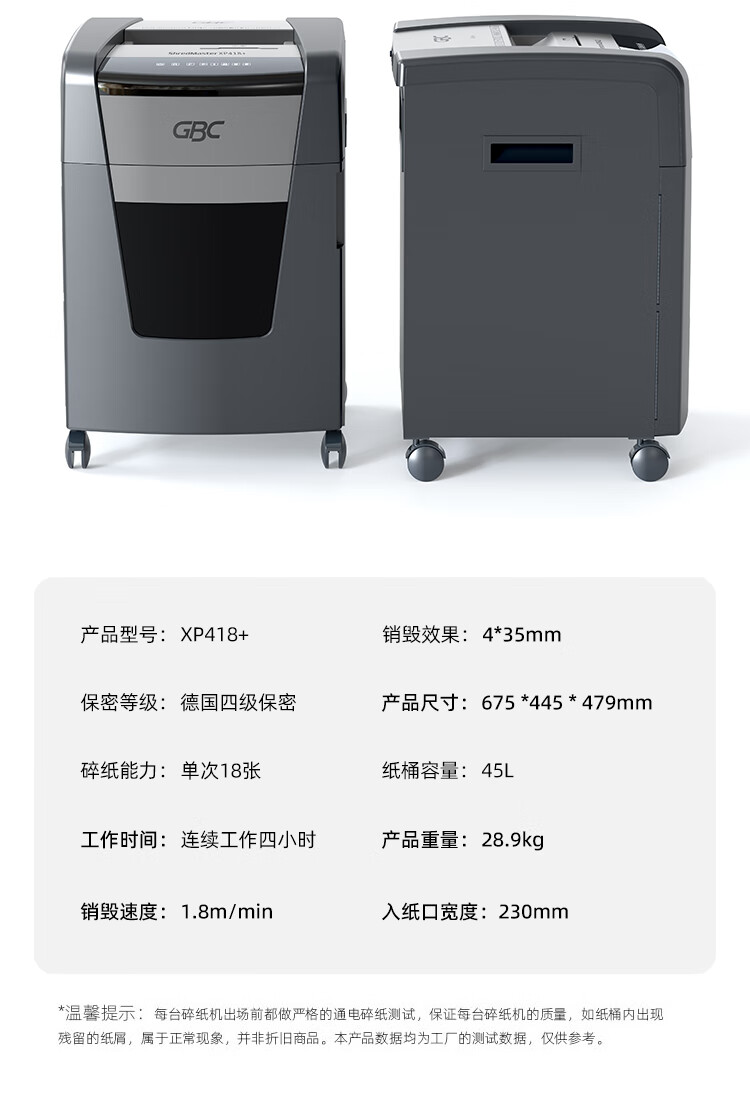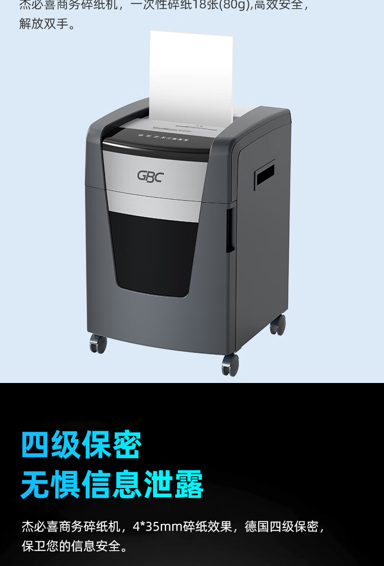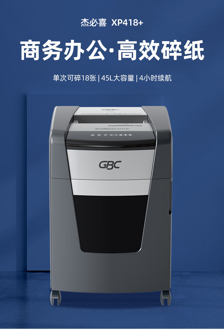 杰必喜(GBC)办公商务碎纸机(单次18张 4级保密 45L 4小时续航 可碎光盘)XP418+