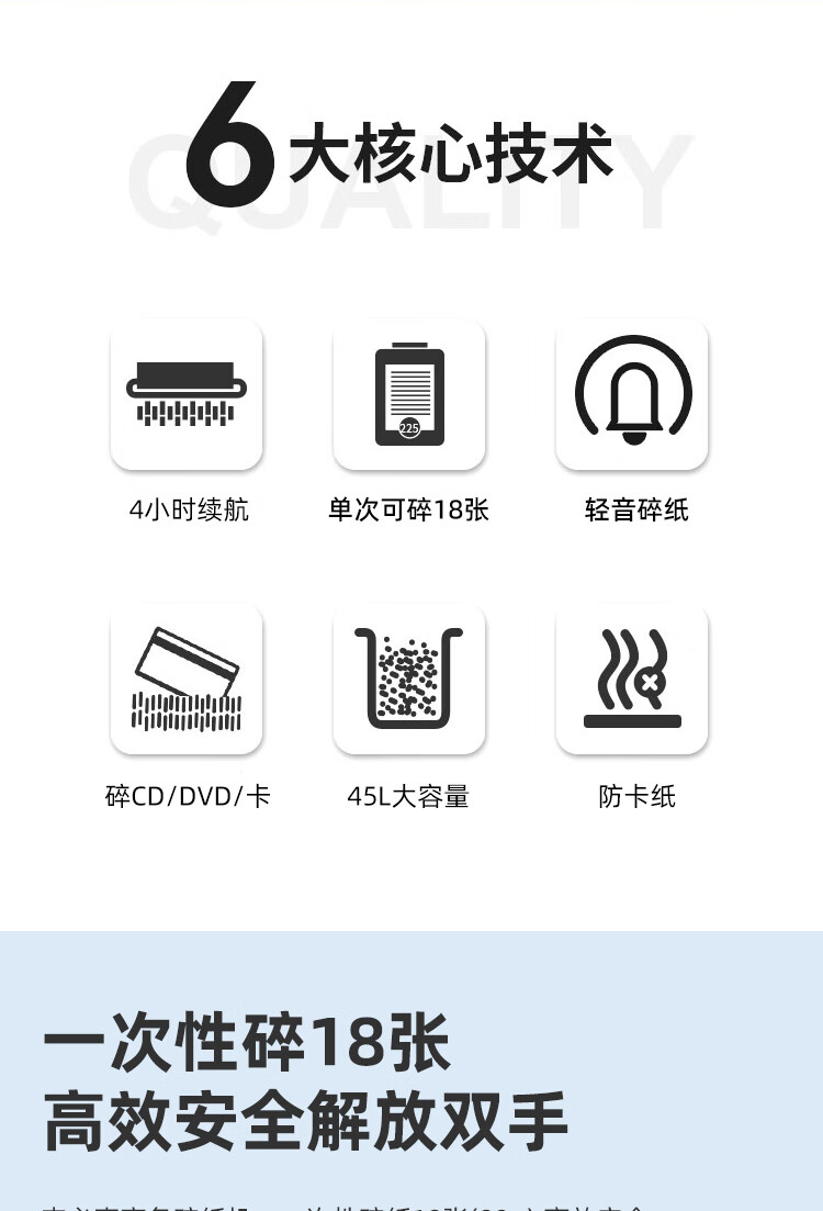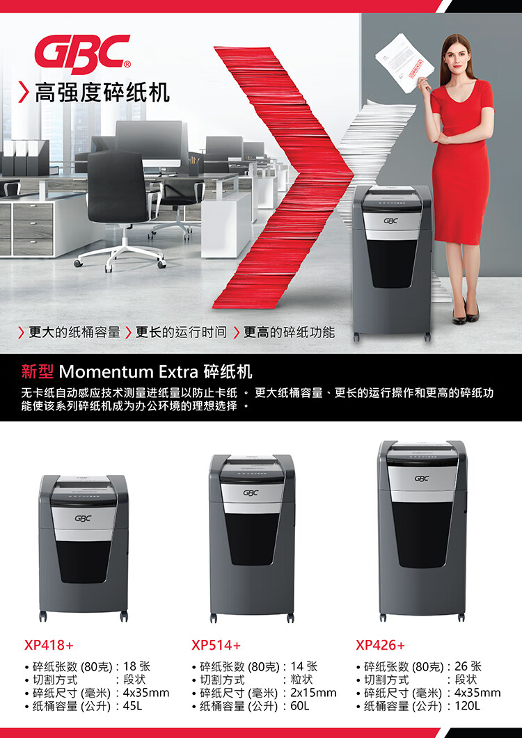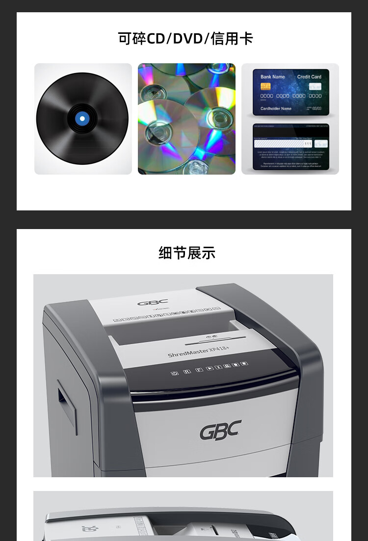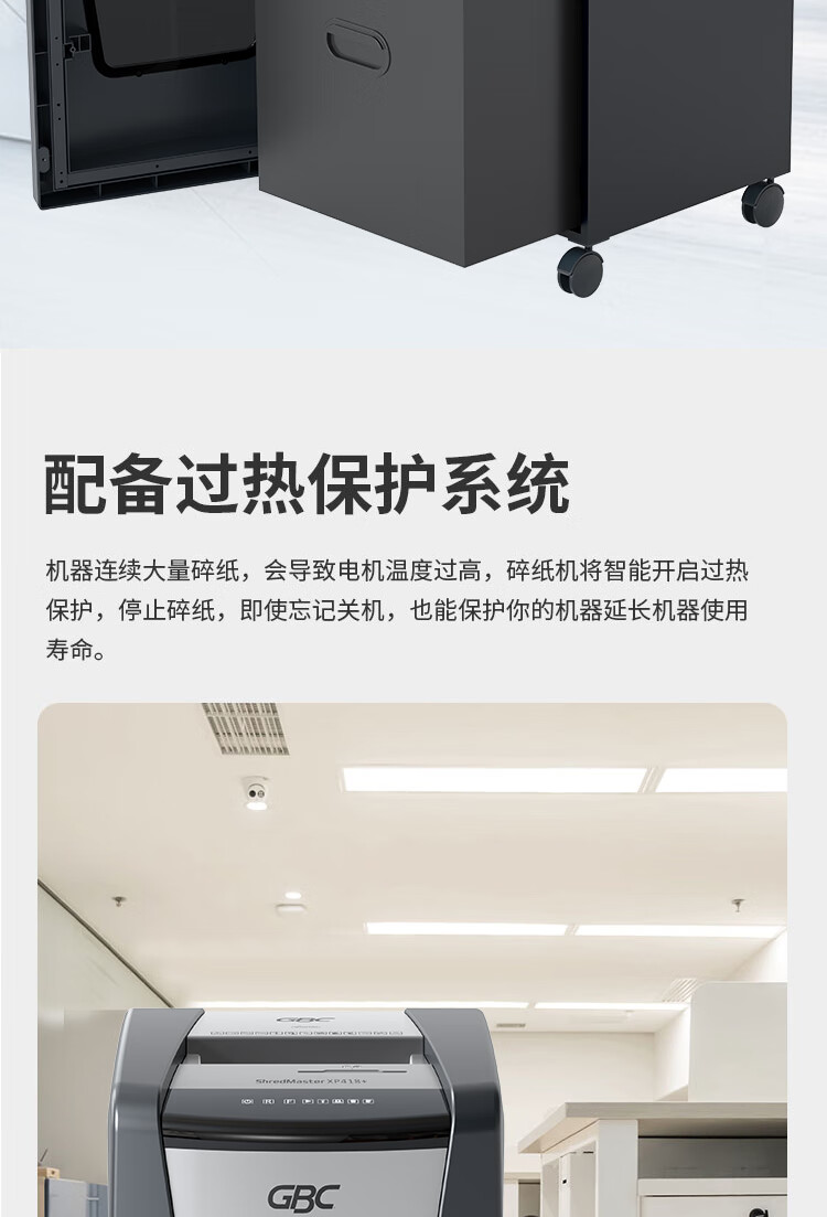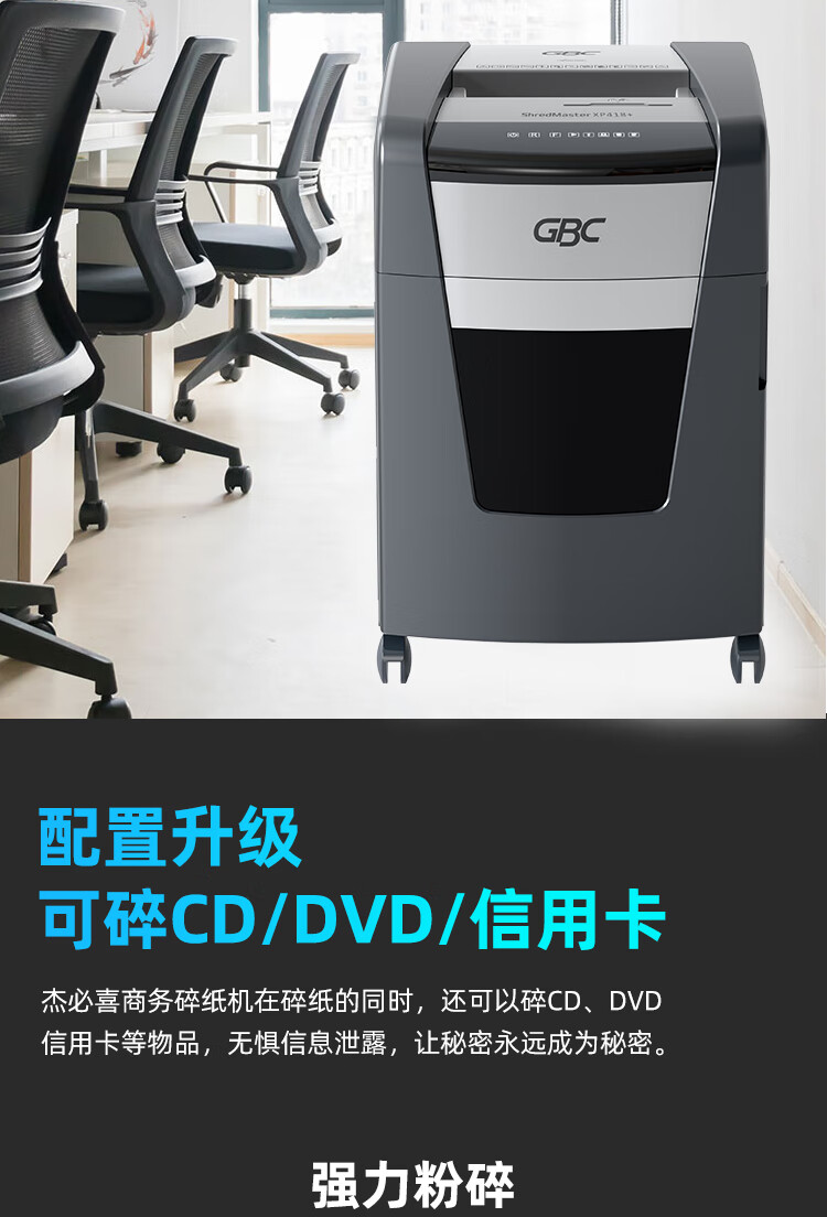 杰必喜(GBC)办公商务碎纸机(单次18张 4级保密 45L 4小时续航 可碎光盘)XP418+