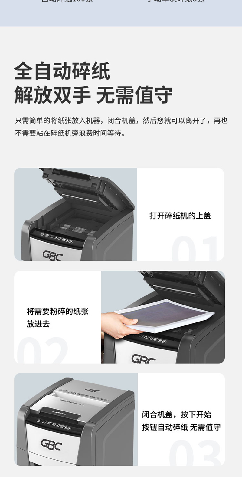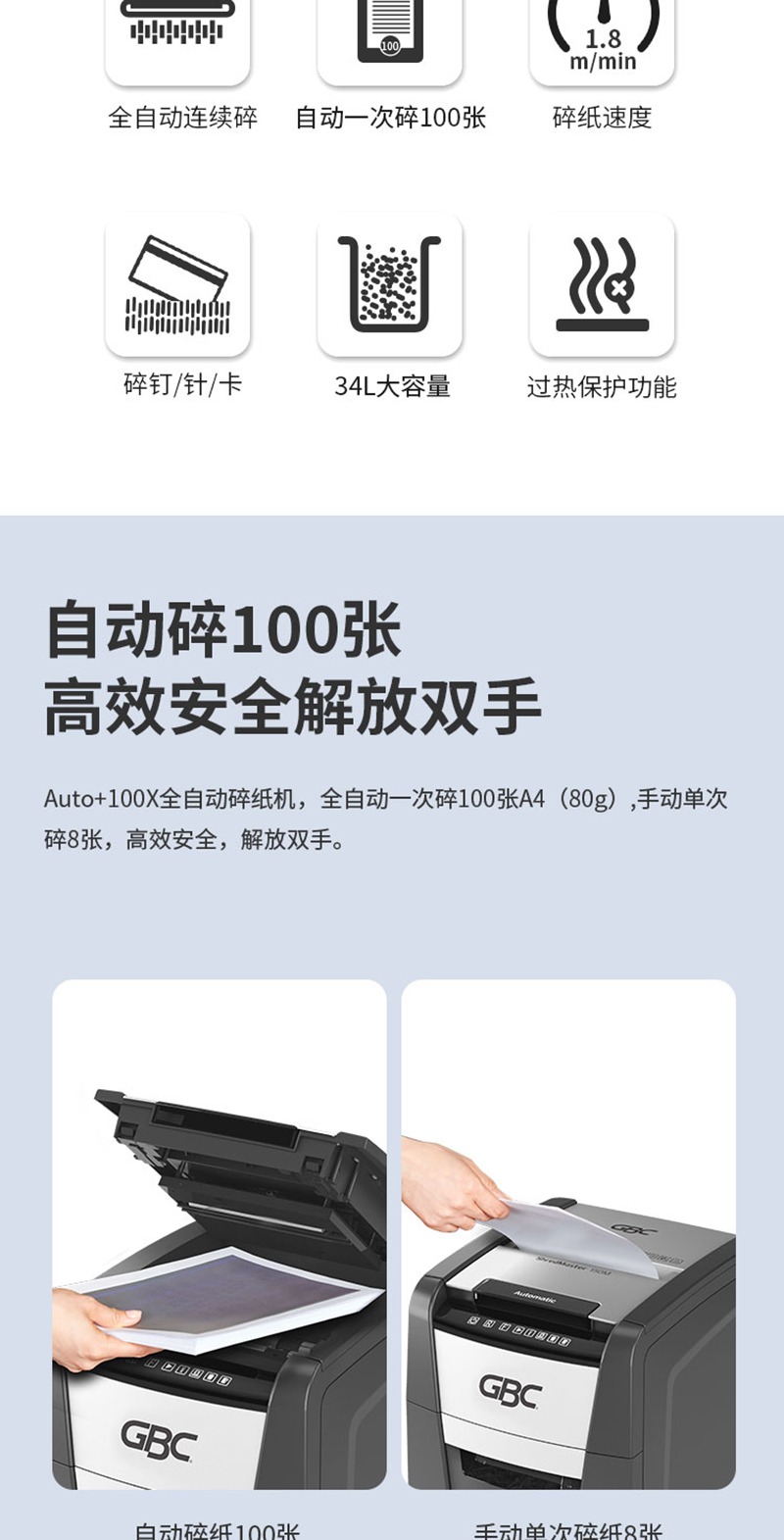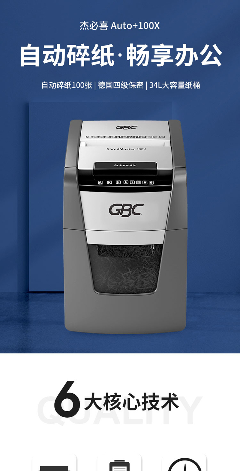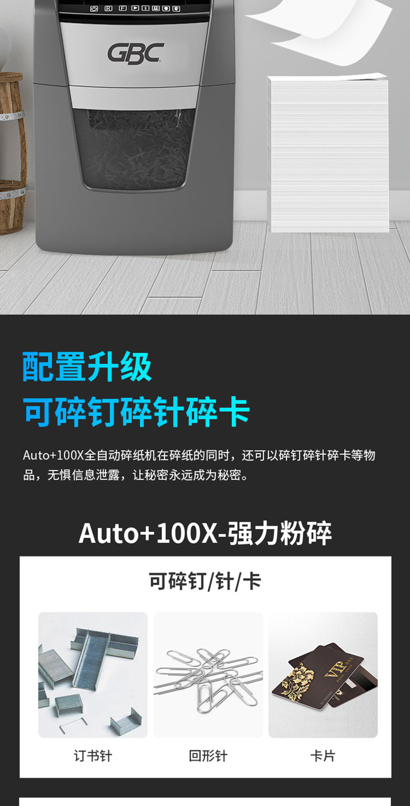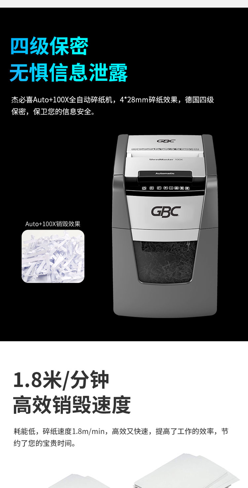 杰必喜(GBC)Auto+100X办公商用全自动碎纸机 4级保密办公文件粉碎机 100张全自动碎纸