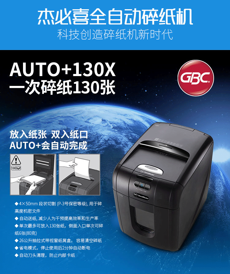杰必喜(GBC)AUTO+130X全自动碎纸机 自动碎纸130张