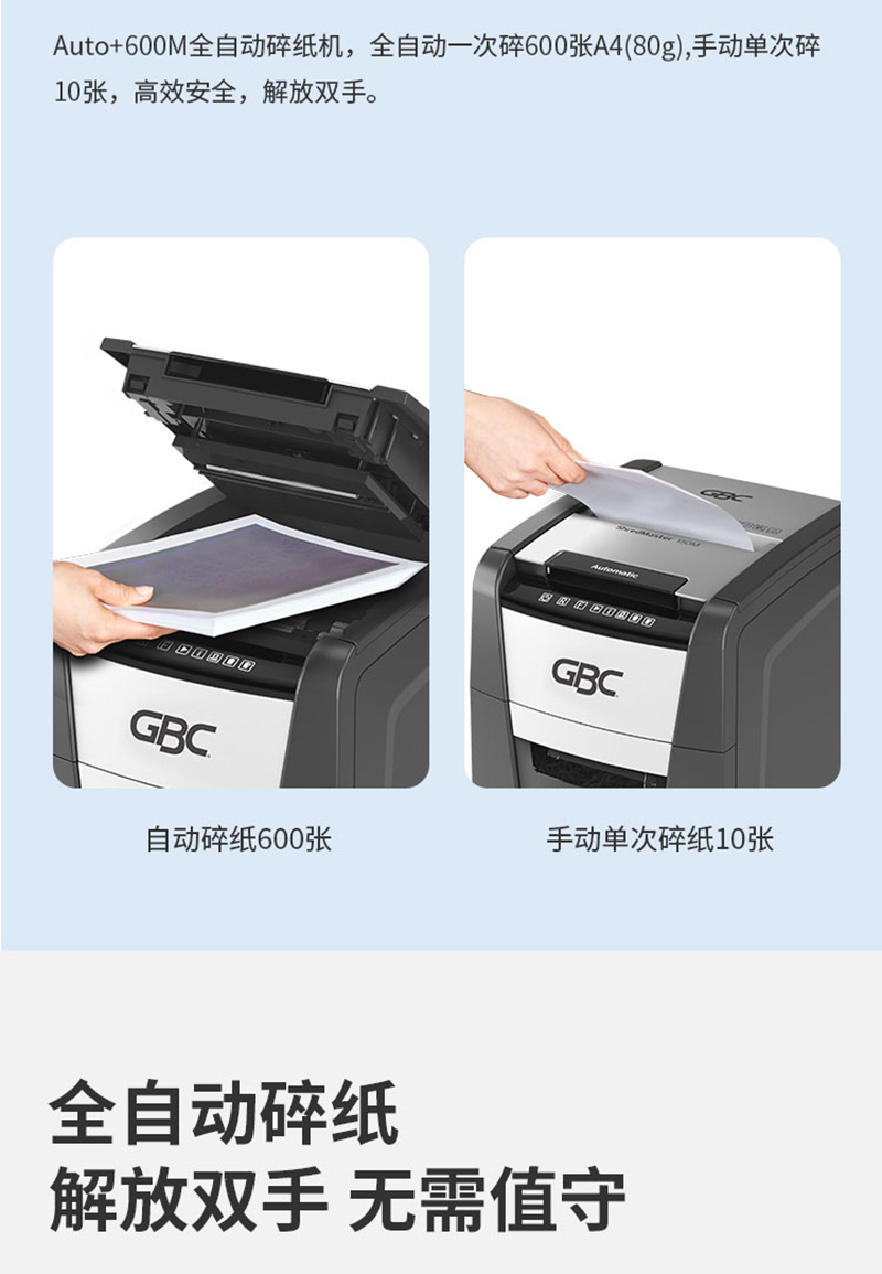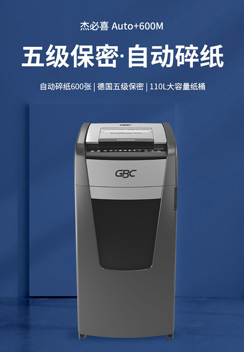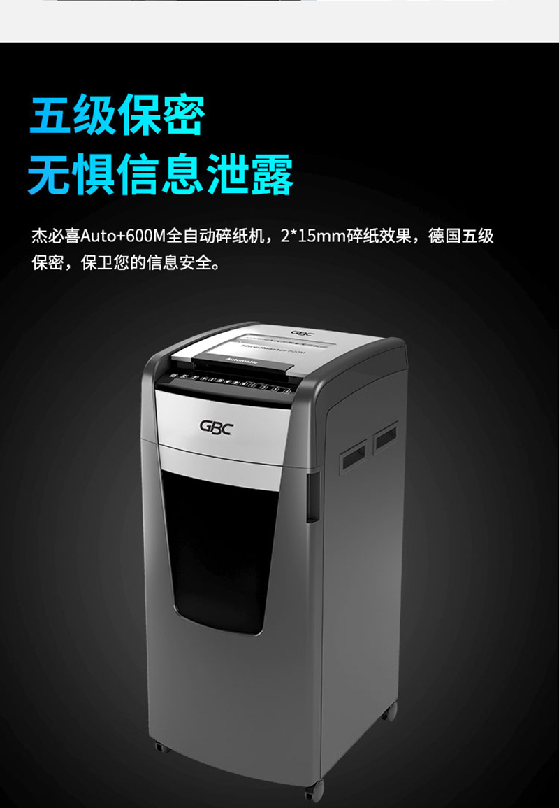 杰必喜(GBC)Auto+600M长时间办公全自动碎纸机 5级高保密110升600张全自动文件粉碎机
