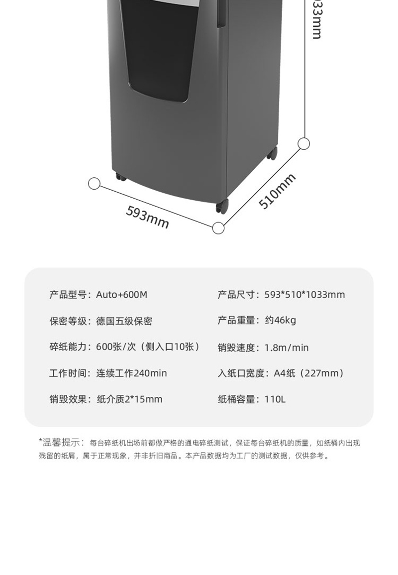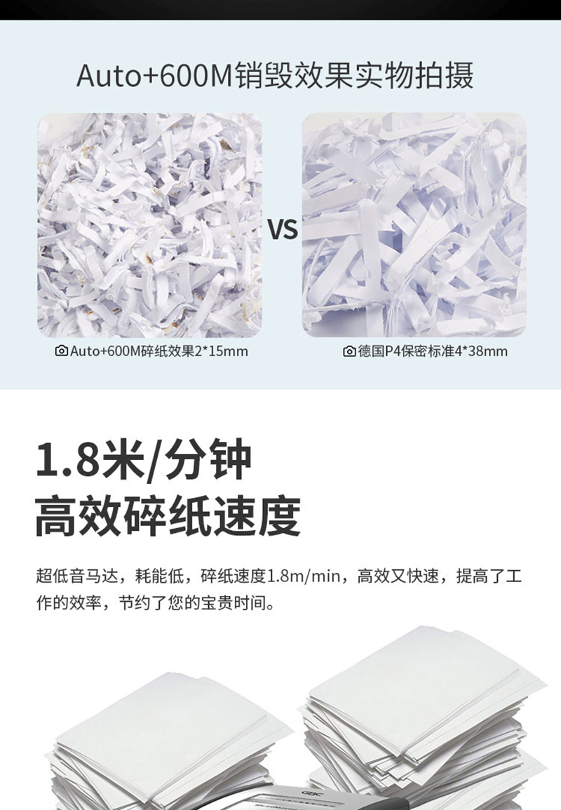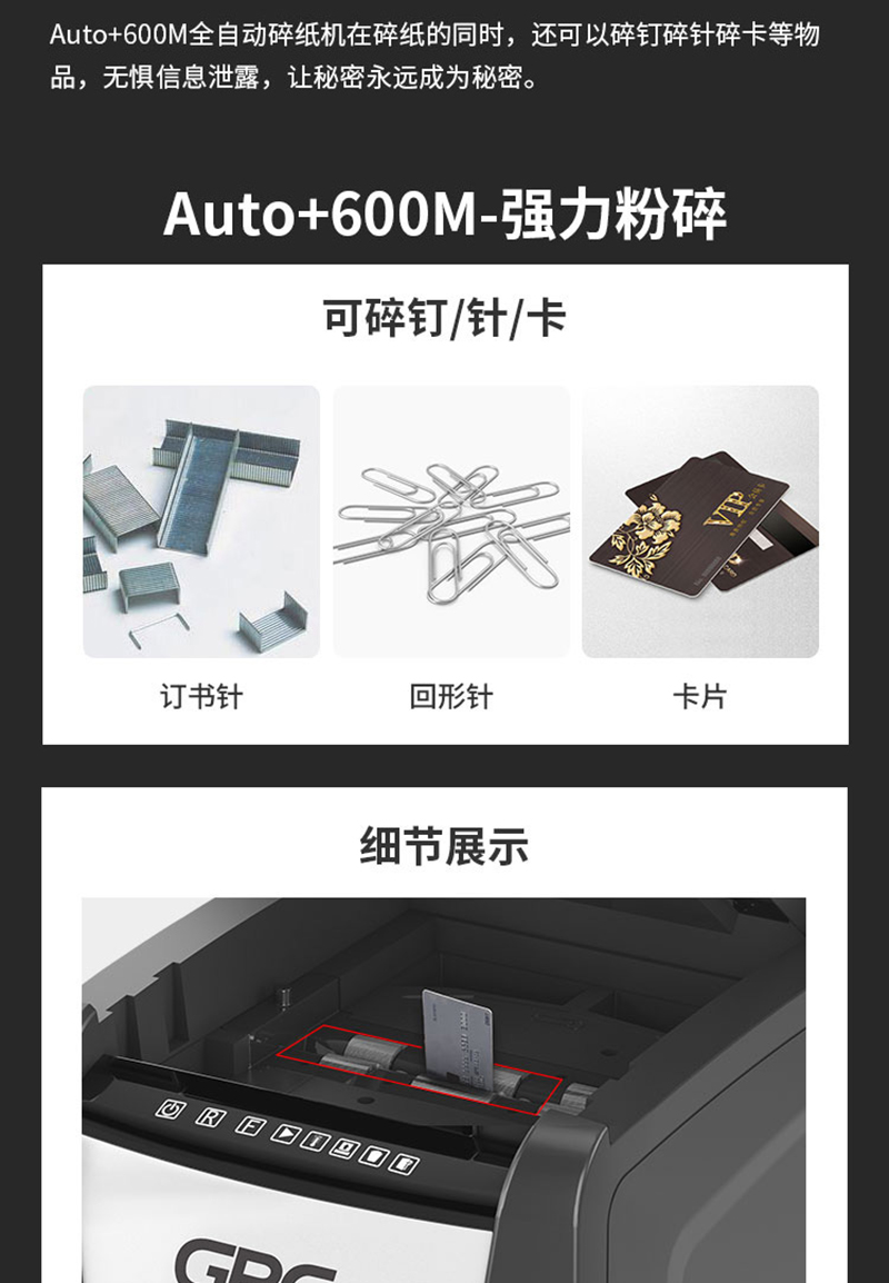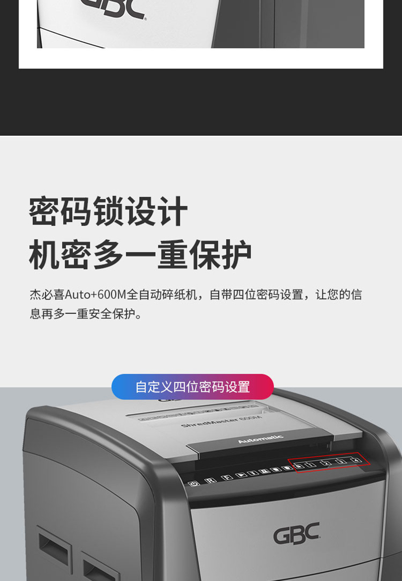 杰必喜(GBC)Auto+600M长时间办公全自动碎纸机 5级高保密110升600张全自动文件粉碎机