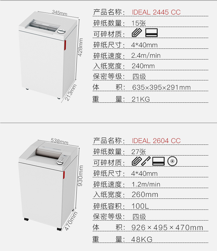 IDEAL 德国理想 办公碎纸机 大型商用自动长时间连续碎纸 4级高保密 8283CC自动300张/长时间连续碎纸