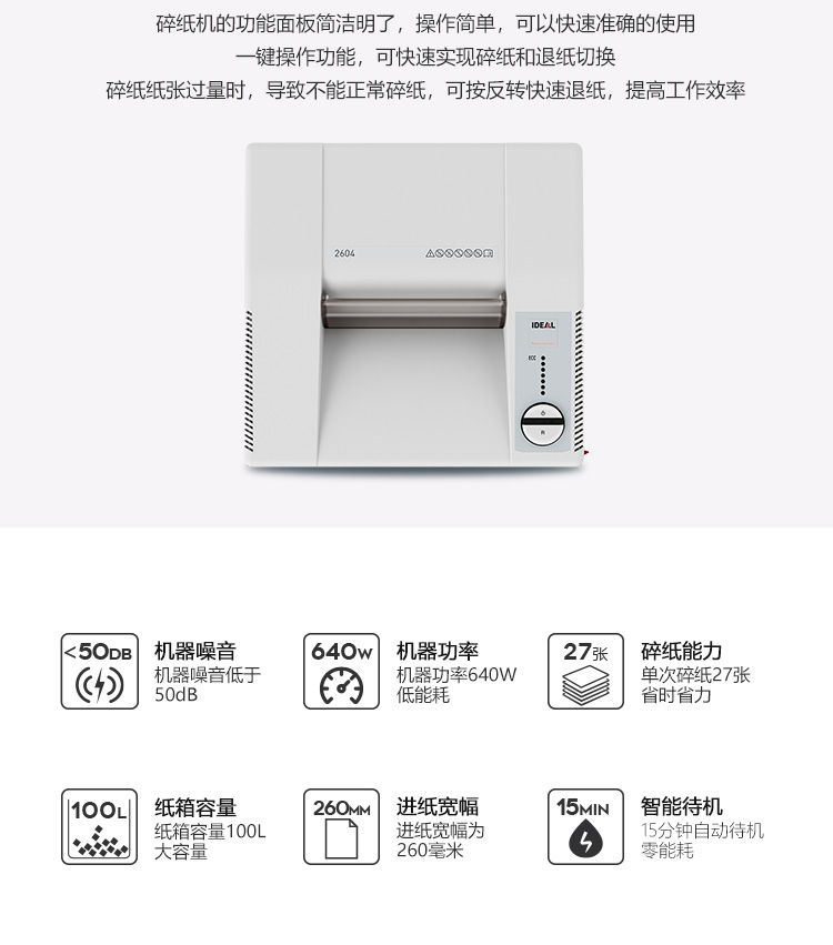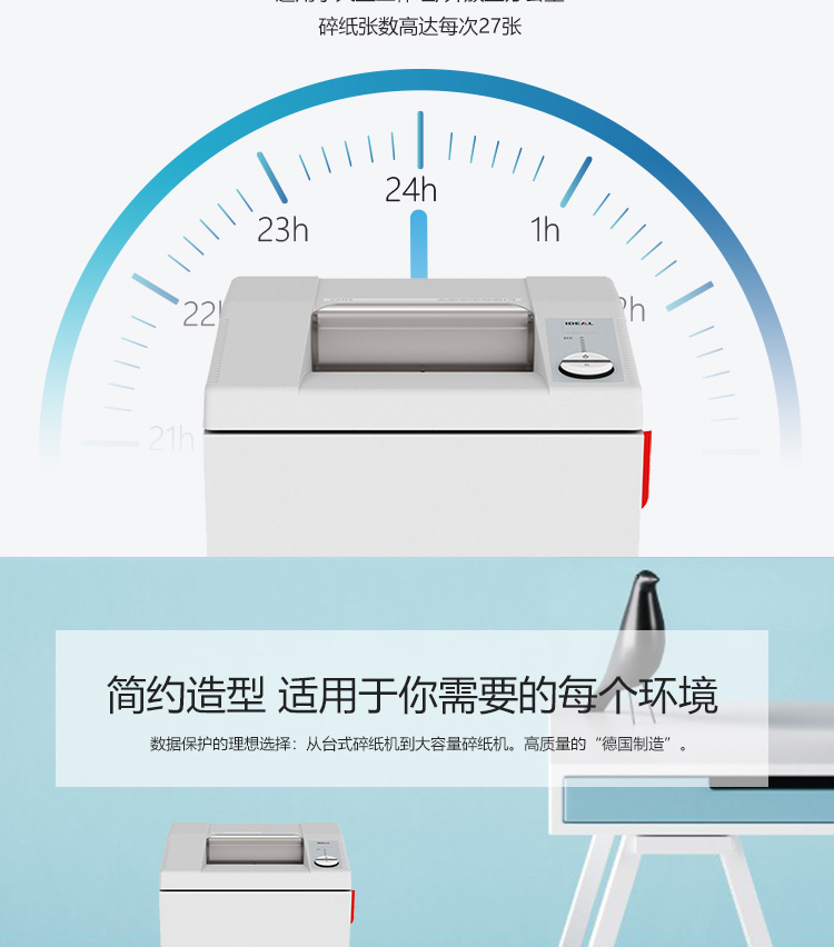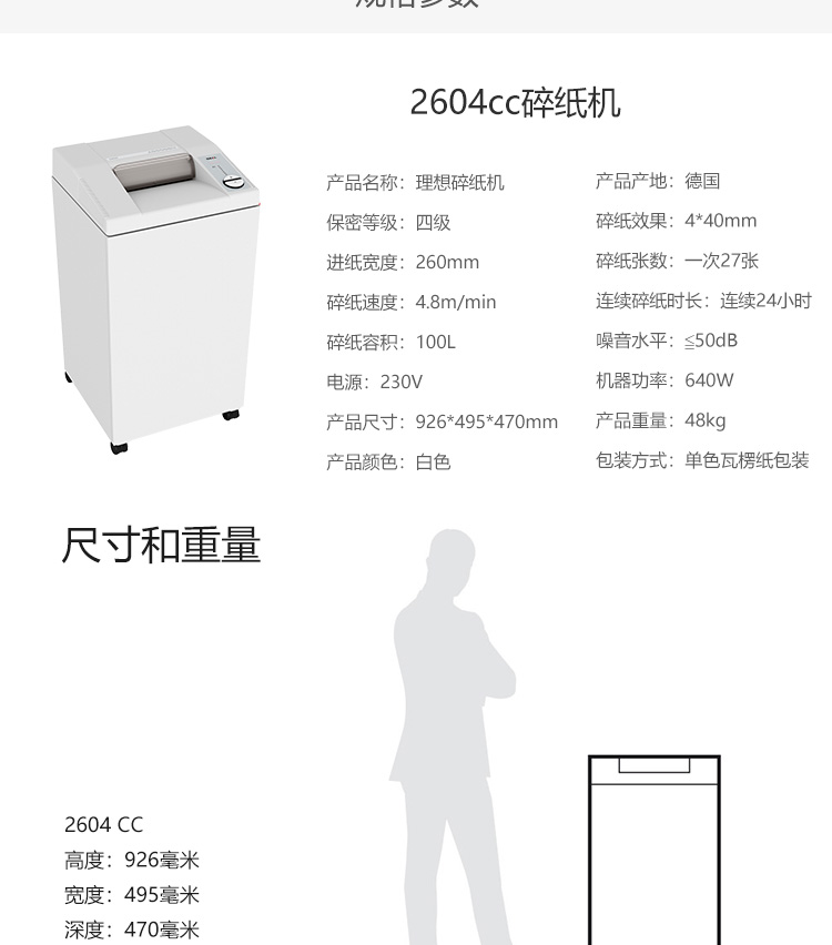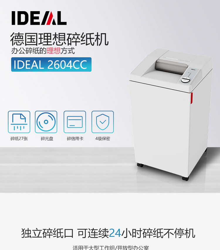 IDEAL 德国理想 大型碎纸机 24小时碎纸 一次碎17张 5级保密 2604CC(2*15mm)