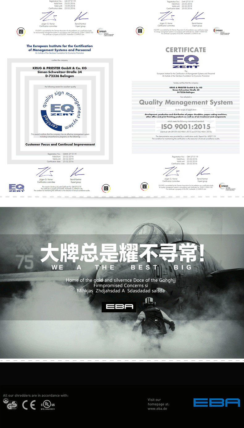 EBA1624S德国原装进口办公商用粉碎机5级高保密粒状大容量碎纸机