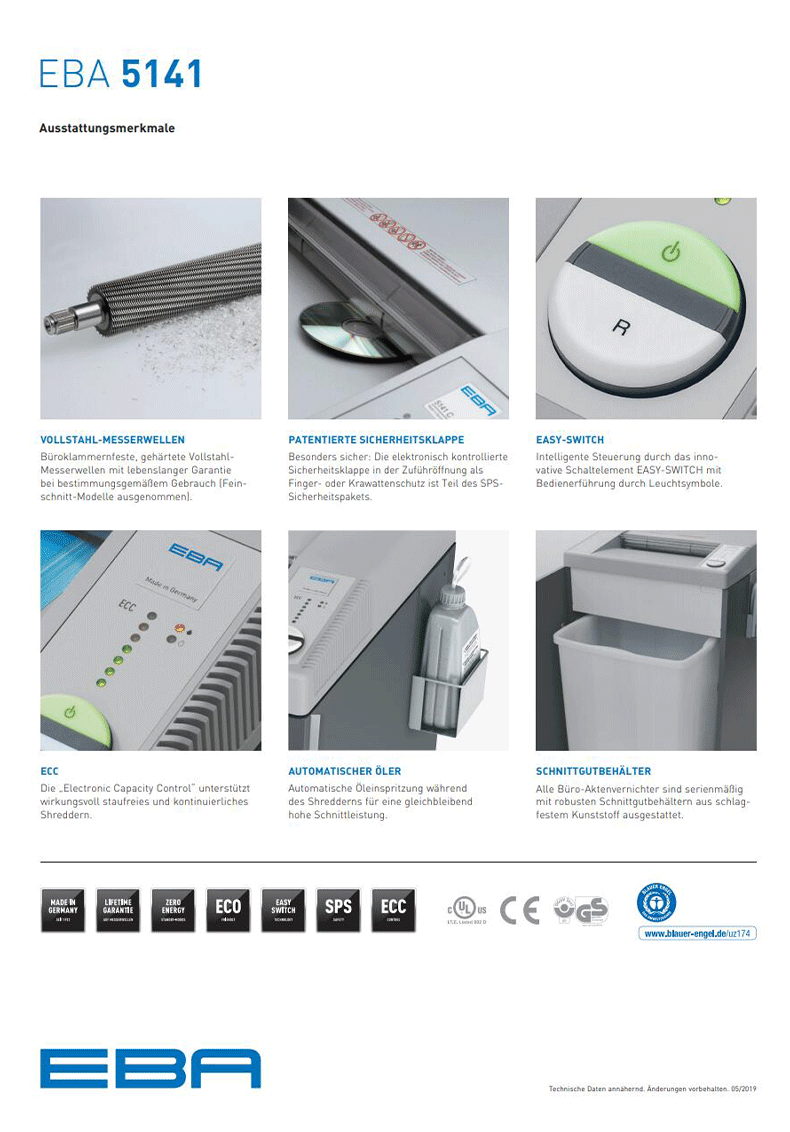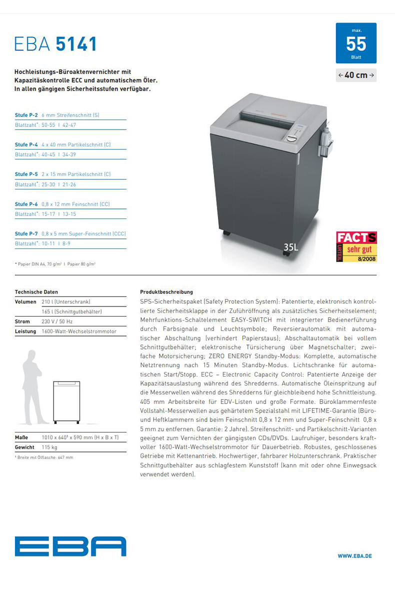 EBA碎纸机5141C大型商用办公碎纸机易保密德国原装进口大功率粉碎 灰色