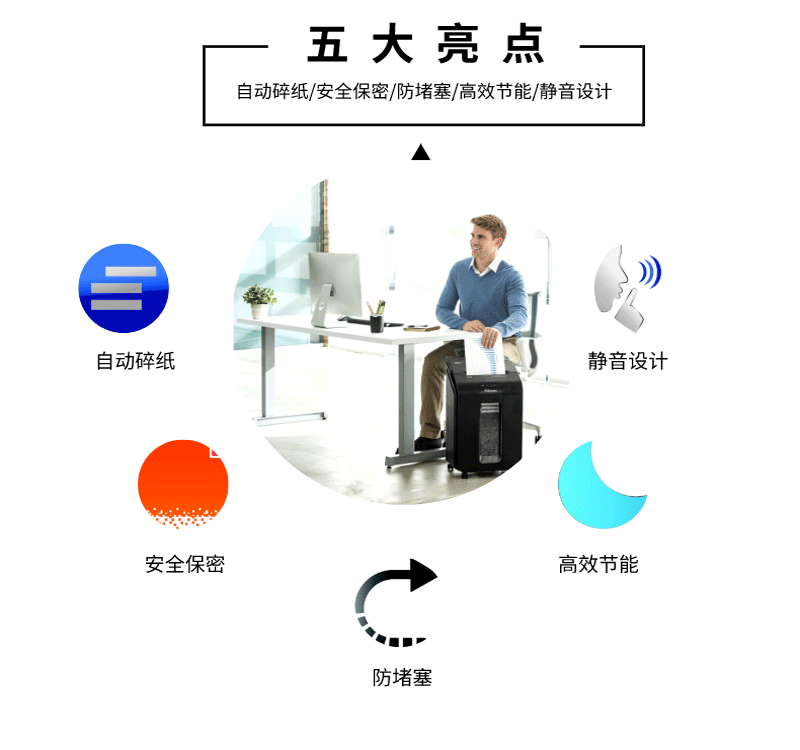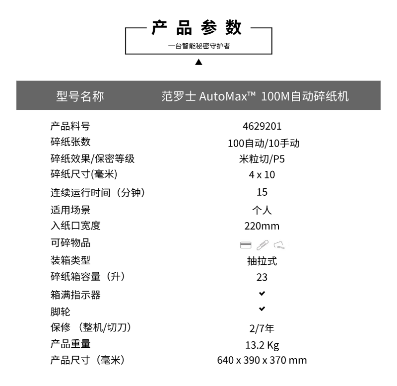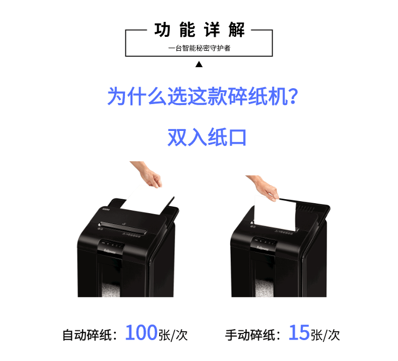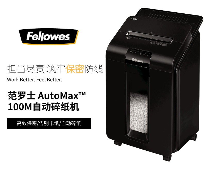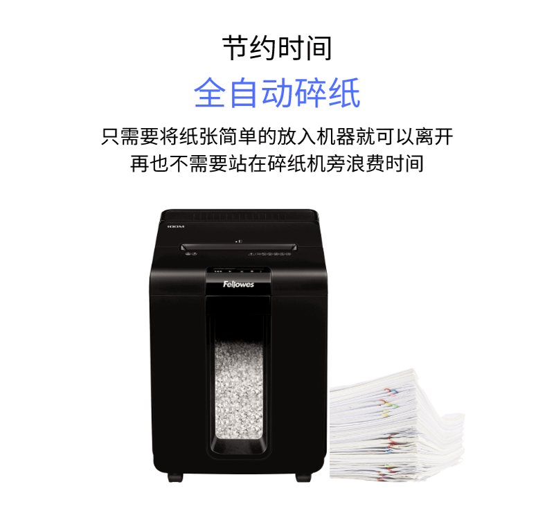 Fellowes范罗士100M全自动5级高保密家用办公防卡纸碎纸机双入口