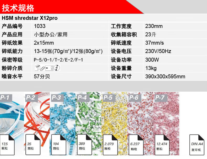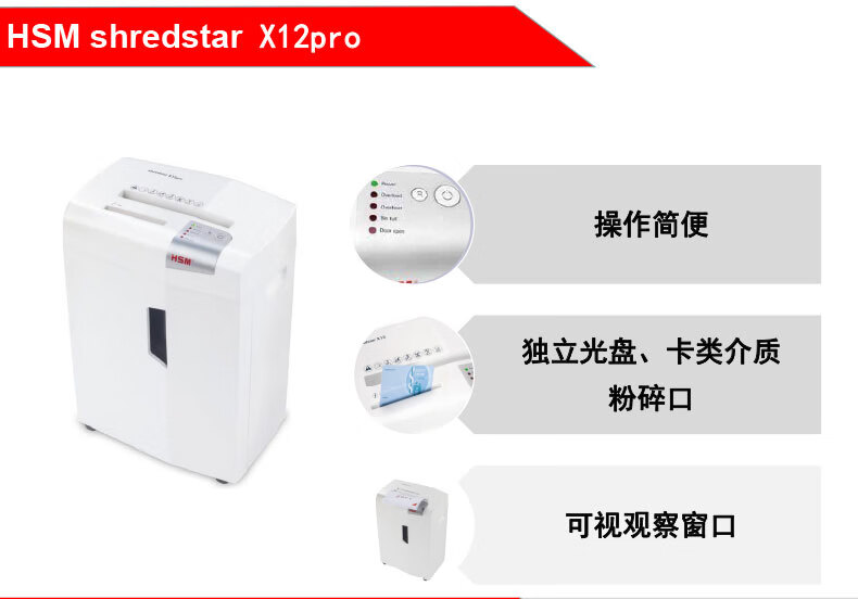 赫斯密(HSM)shredstar X12Pro小型家用和办公碎纸机德国5级保密 可碎光盘