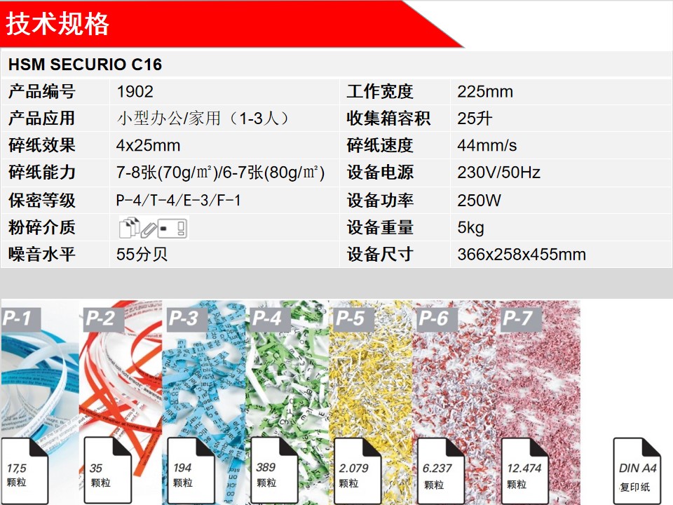 赫斯密(HSM) SECURIO C16 小型办公碎纸机 自动启动/停止 德国4级保密
