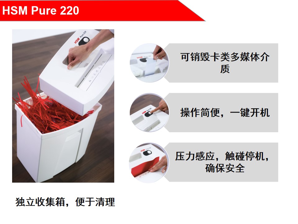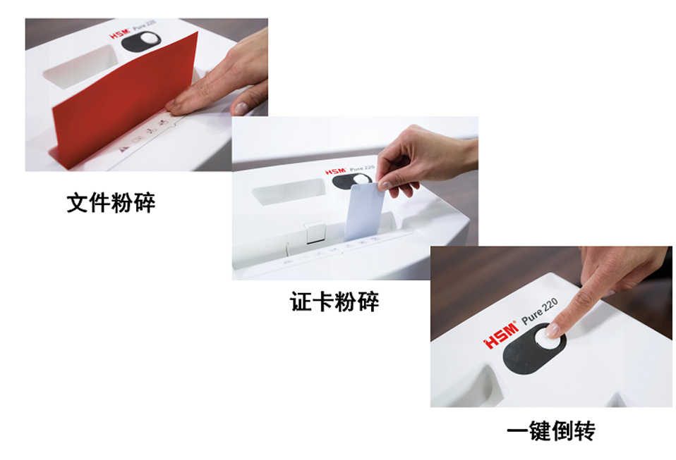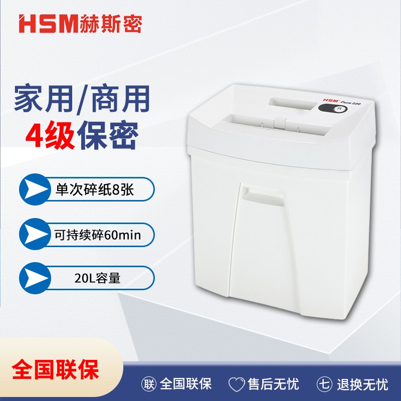 赫斯密(HSM)Pure220小型家用/商用办公碎纸机德国4级保密智能节能管理可销毁光盘低耗