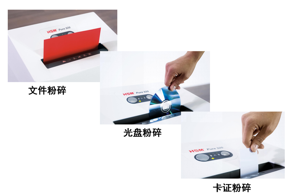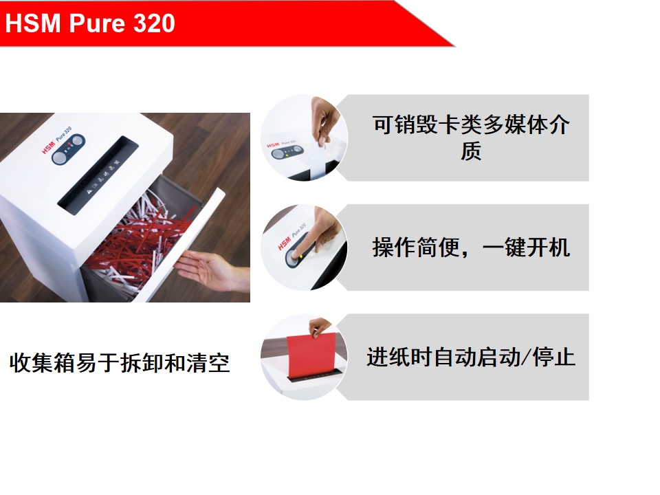 赫斯密(HSM)Pure320小型家用/商用办公碎纸机智能节能管理4级保密单次9张25L可碎光盘