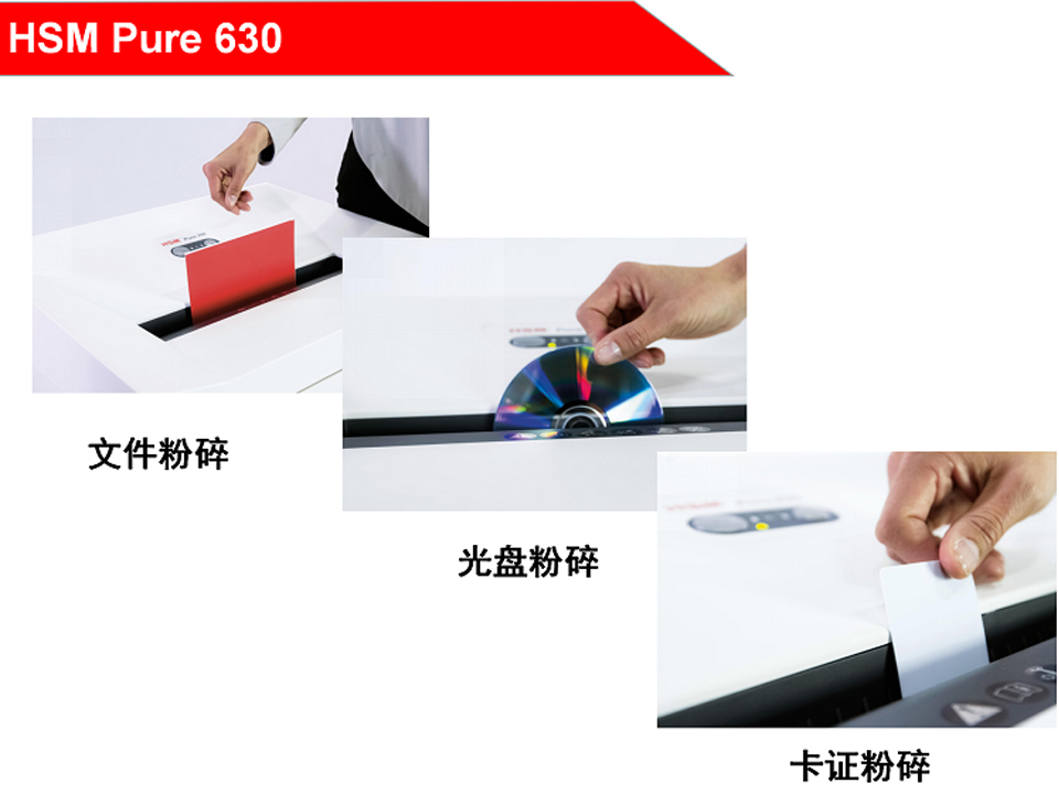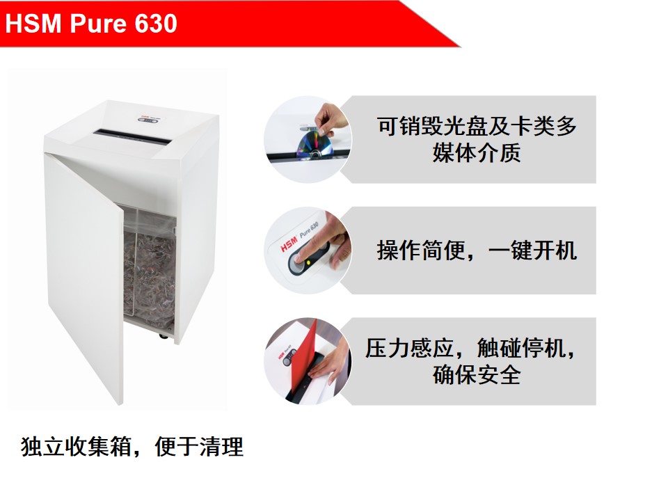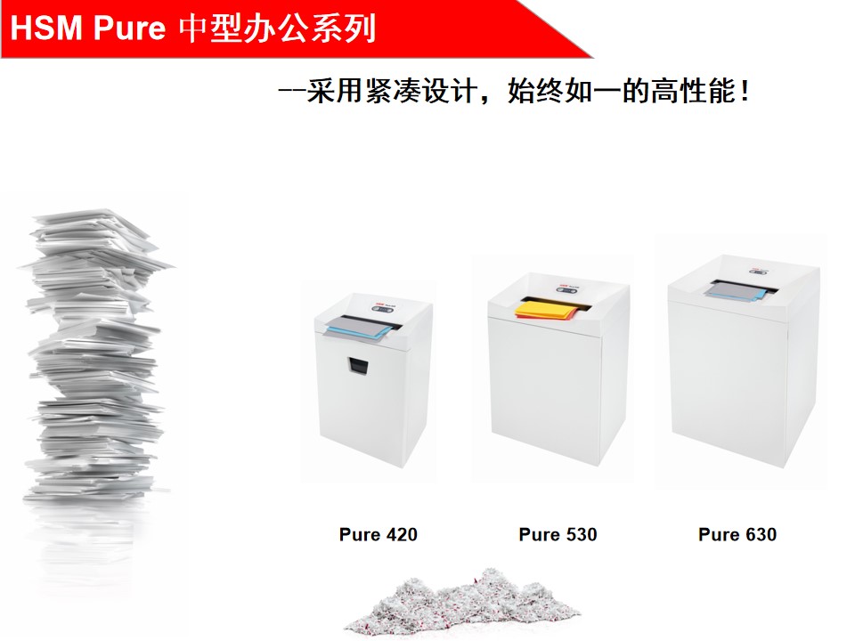 赫斯密(HSM) Pure630 4级高保密中型多功能办公A3幅面大容量粉碎机商用碎纸机(130L) Pure530