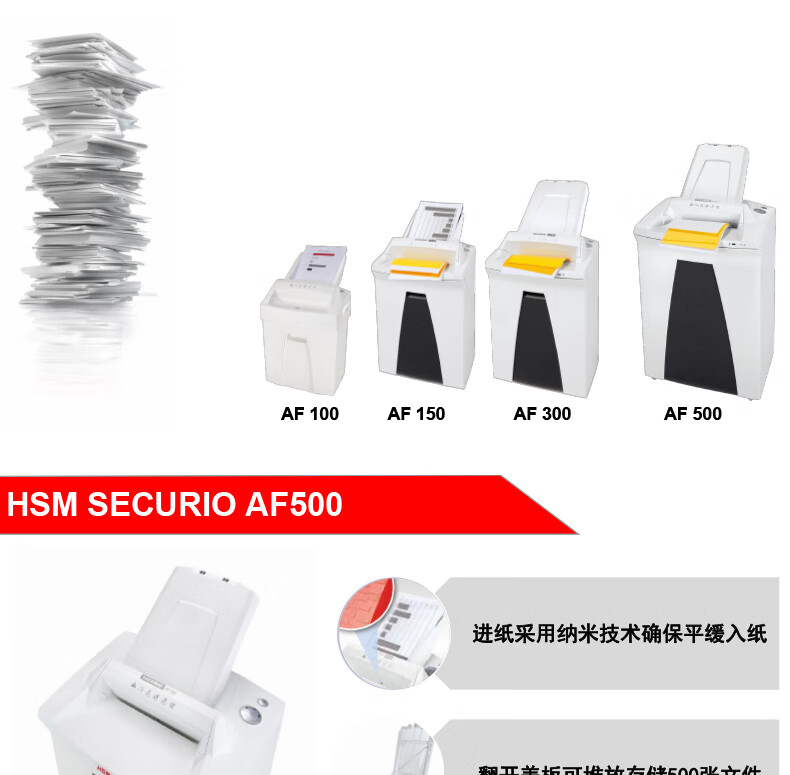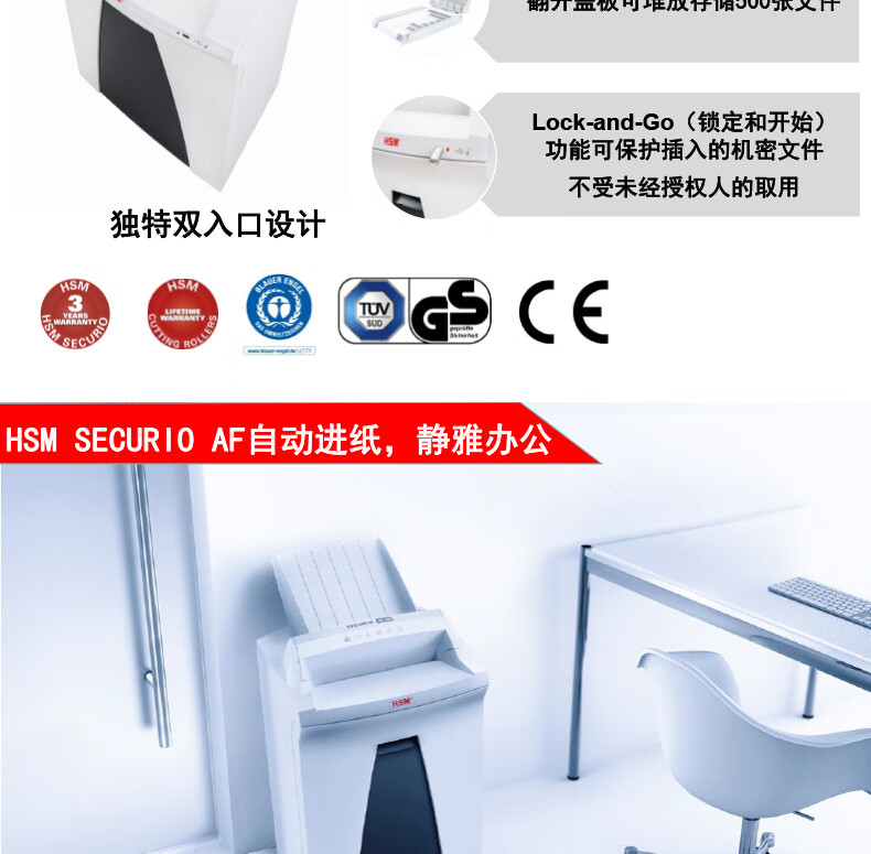 赫斯密(HSM) SECURIO AF300大型办公商用自动进纸碎纸机6级保密双入口设计USB锁定
