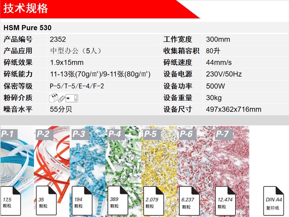 赫斯密(HSM) Pure 530 中型办公商用碎纸机5级保密可粉碎A3幅面大容量碎纸机可销毁光盘
