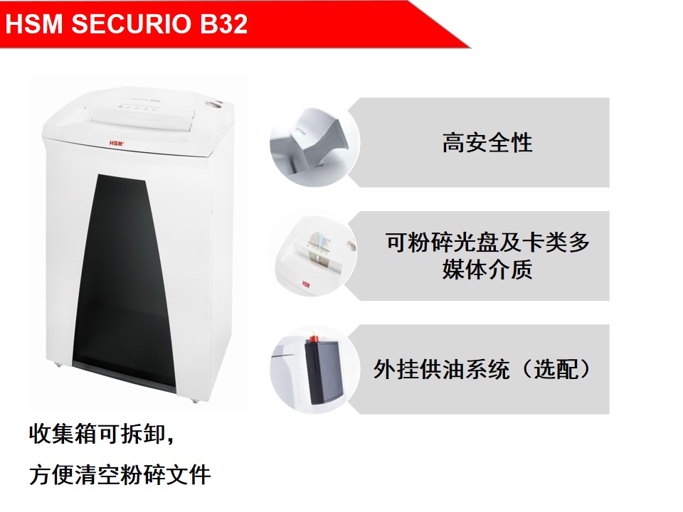 赫斯密(HSM) SECURIO B32大型商用办公碎纸机 5级保密颗粒专用文件销毁大容量碎纸机