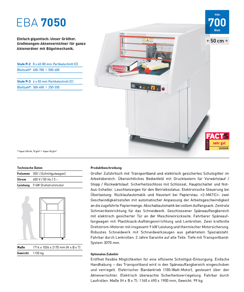 德国EBA 7050-3C碎纸机(100%德国制造)