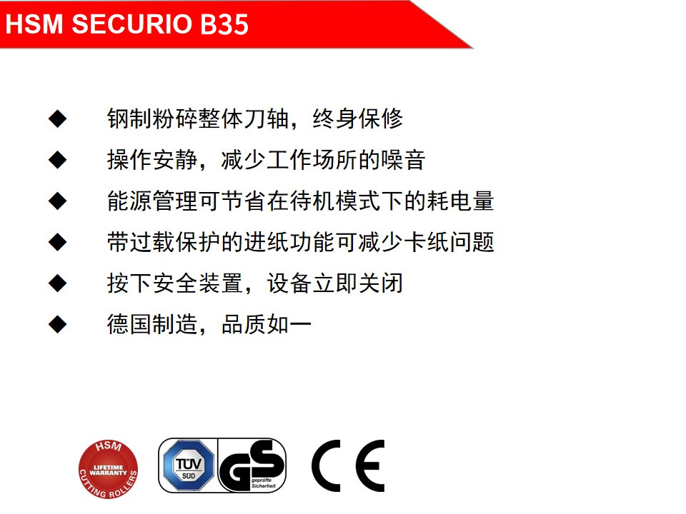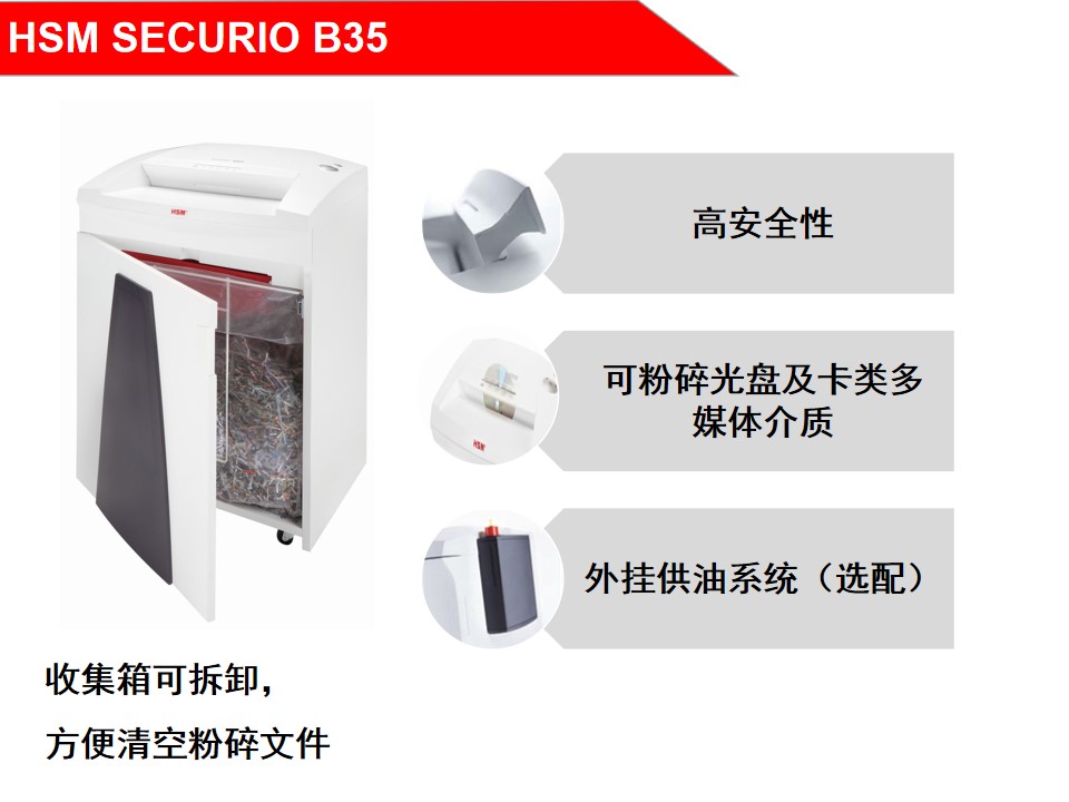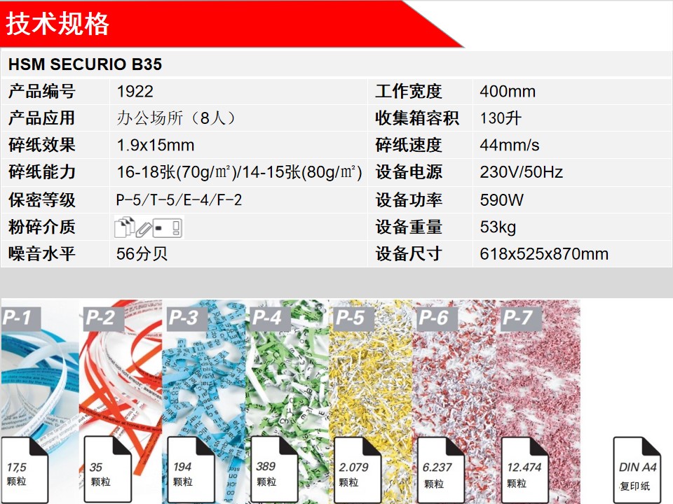 赫斯密(HSM) 5级高保密碎纸机SECURIO B35大型商用办公碎纸机智能大容量可碎卡 1.9x15 mm